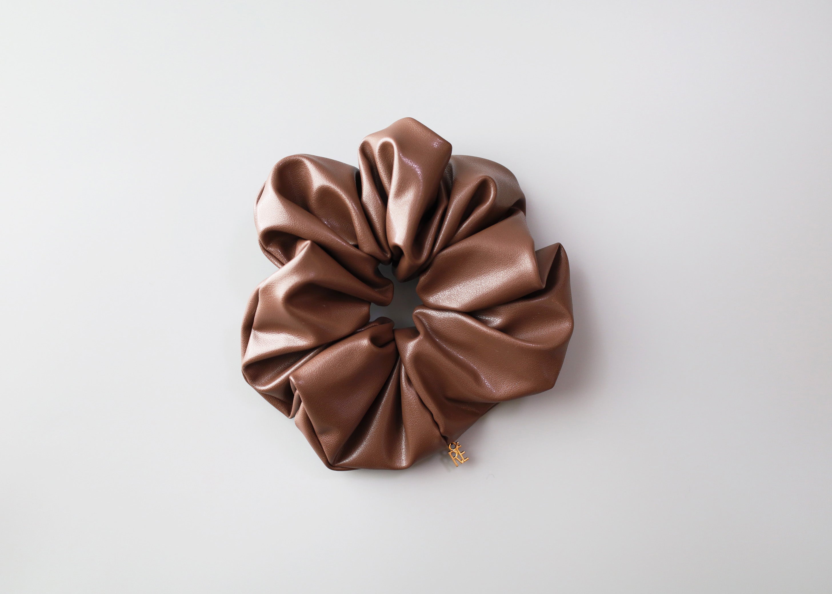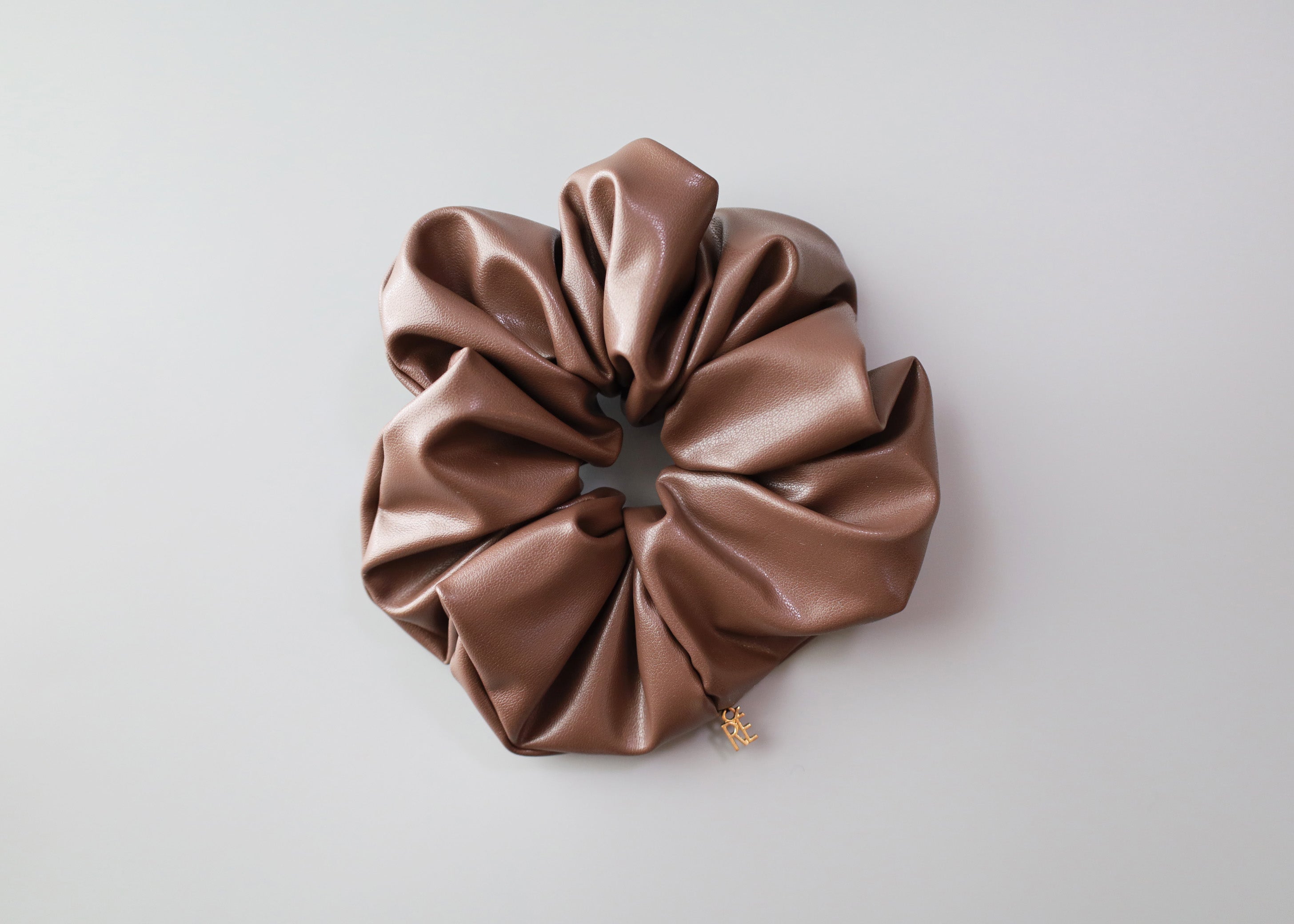 ボリューム感たっぷりなエコレザーのシュシュ。