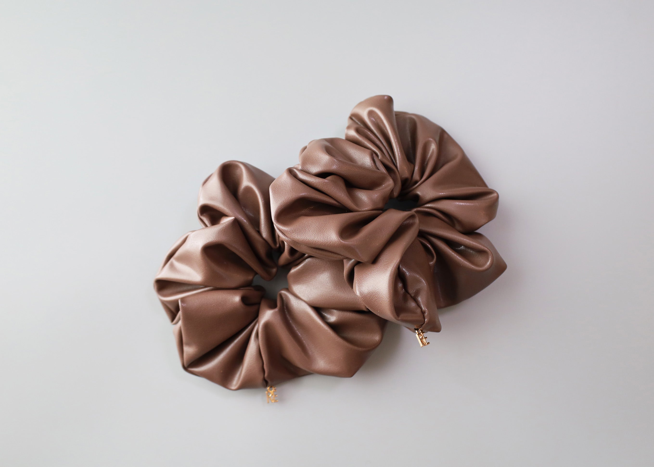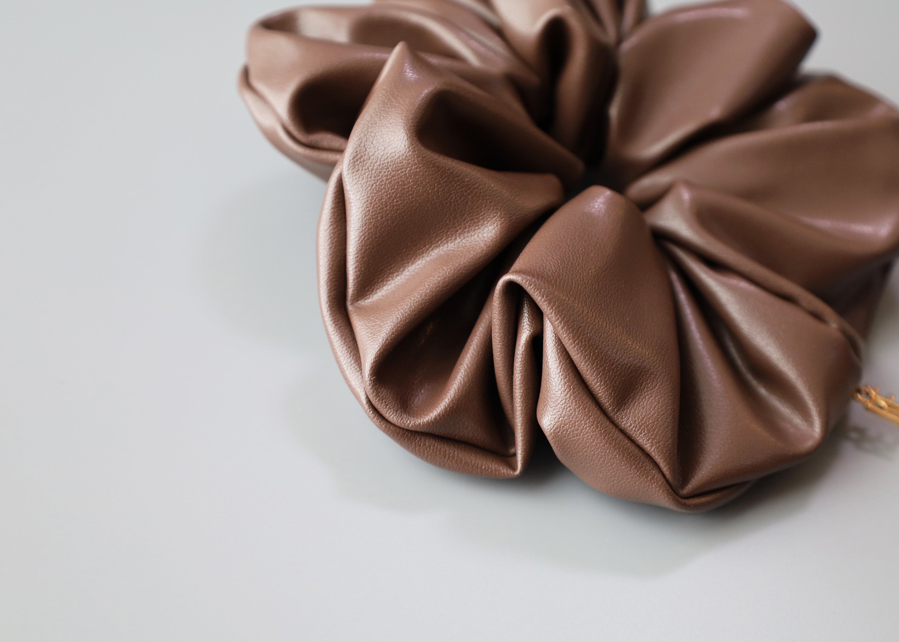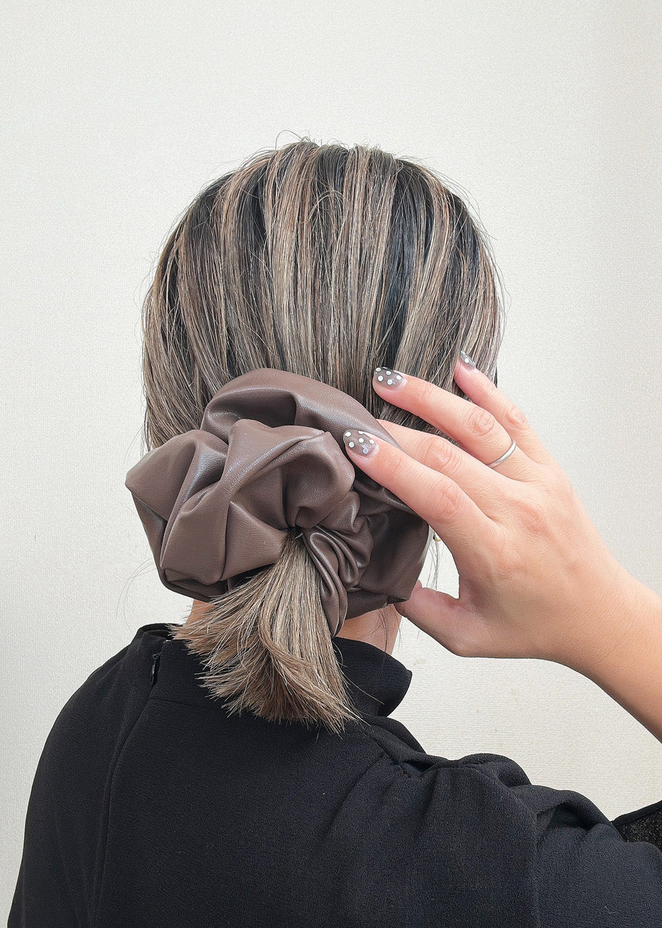 一気にトレンド感たっぷりな表情になるレザーシュシュ。