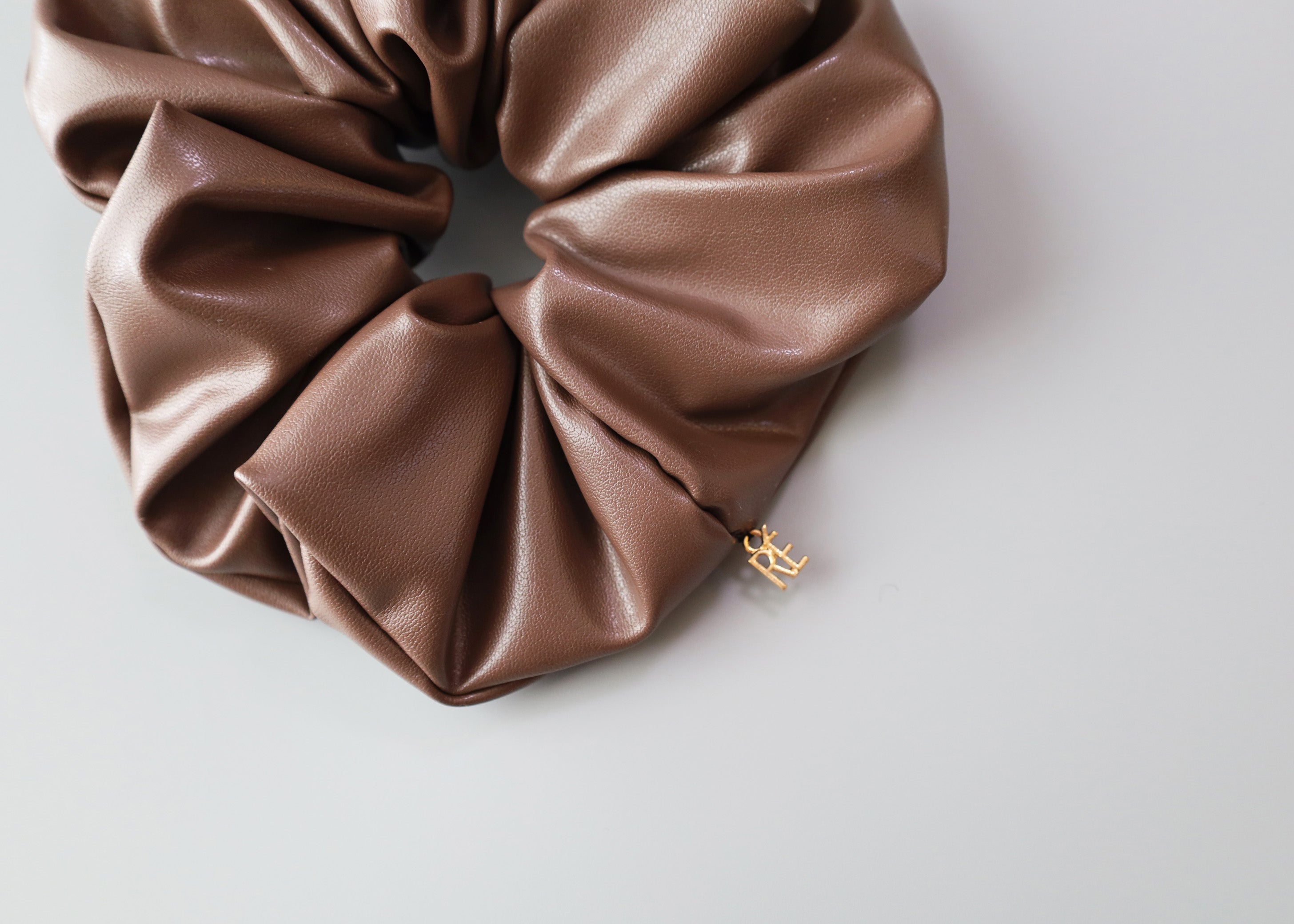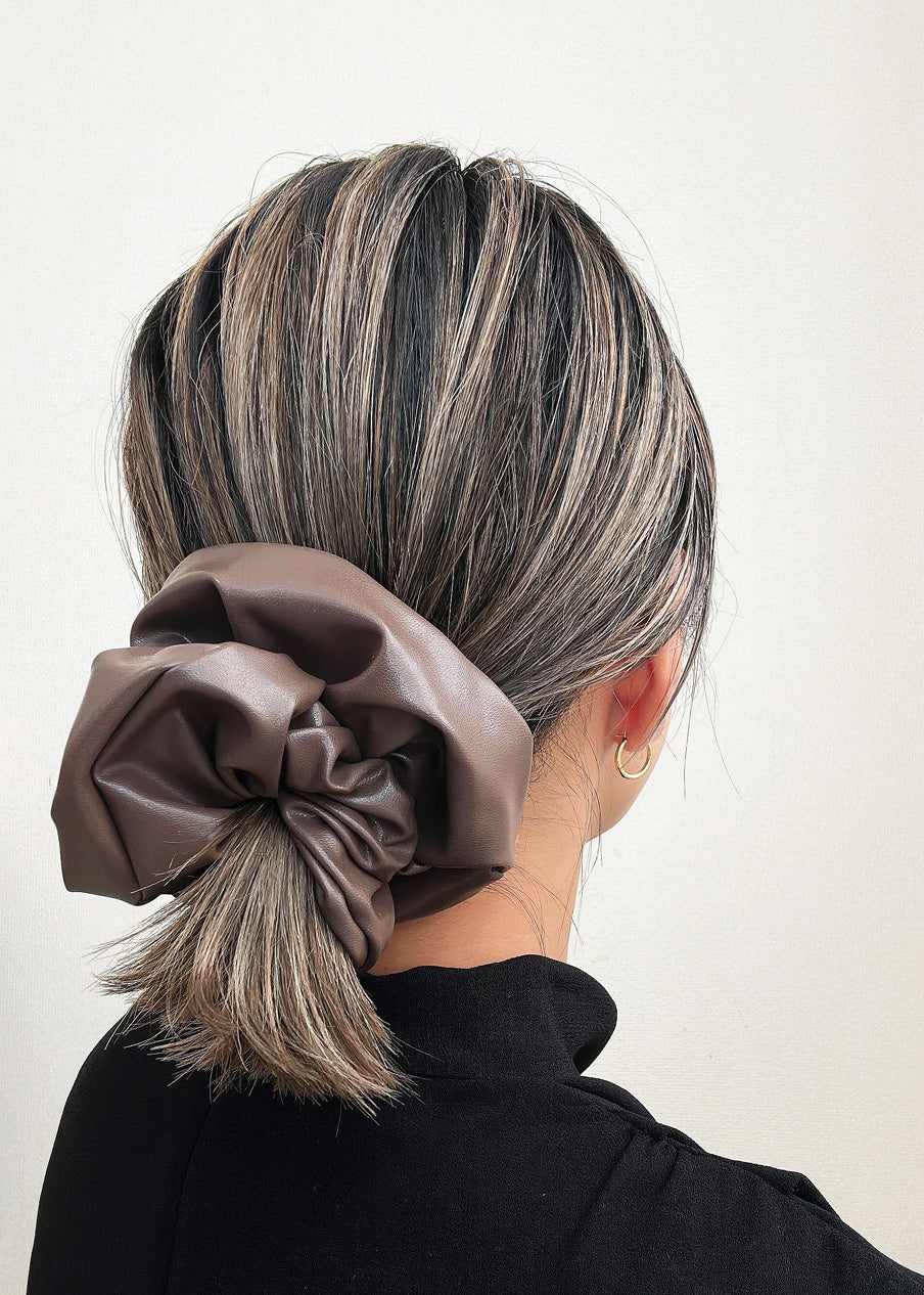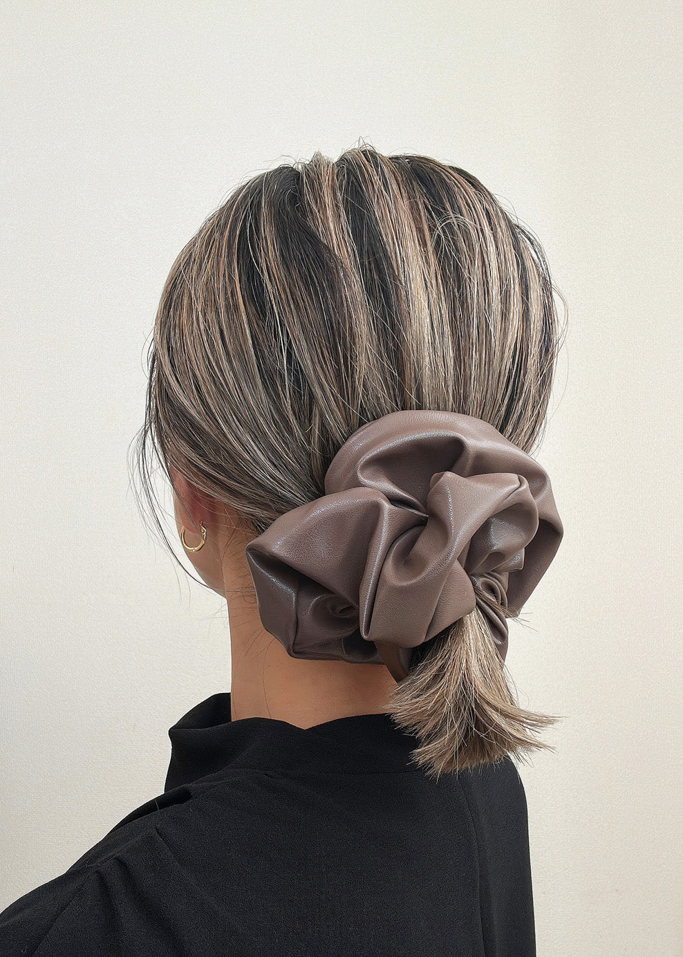 一気にトレンド感たっぷりな表情になるレザーシュシュ。