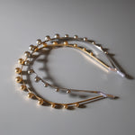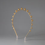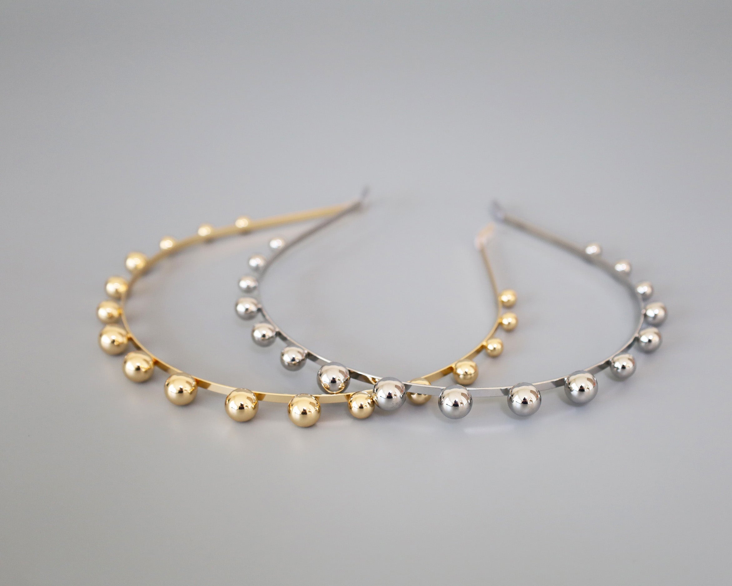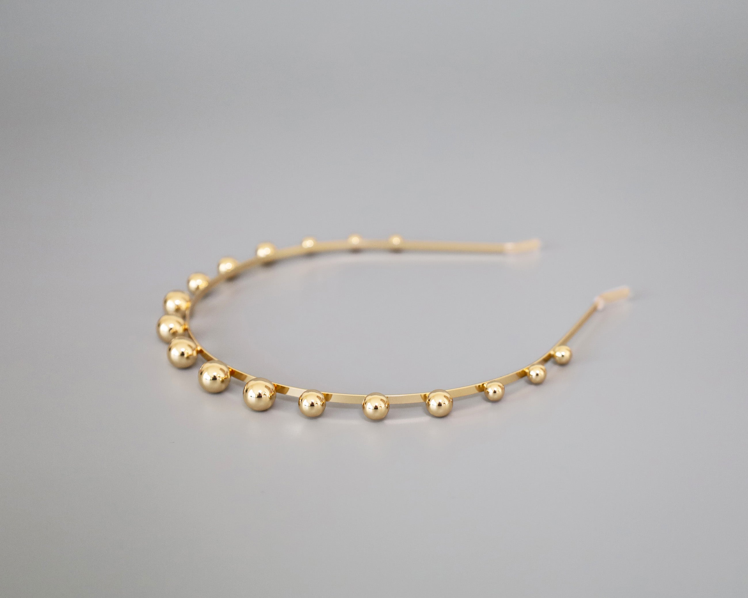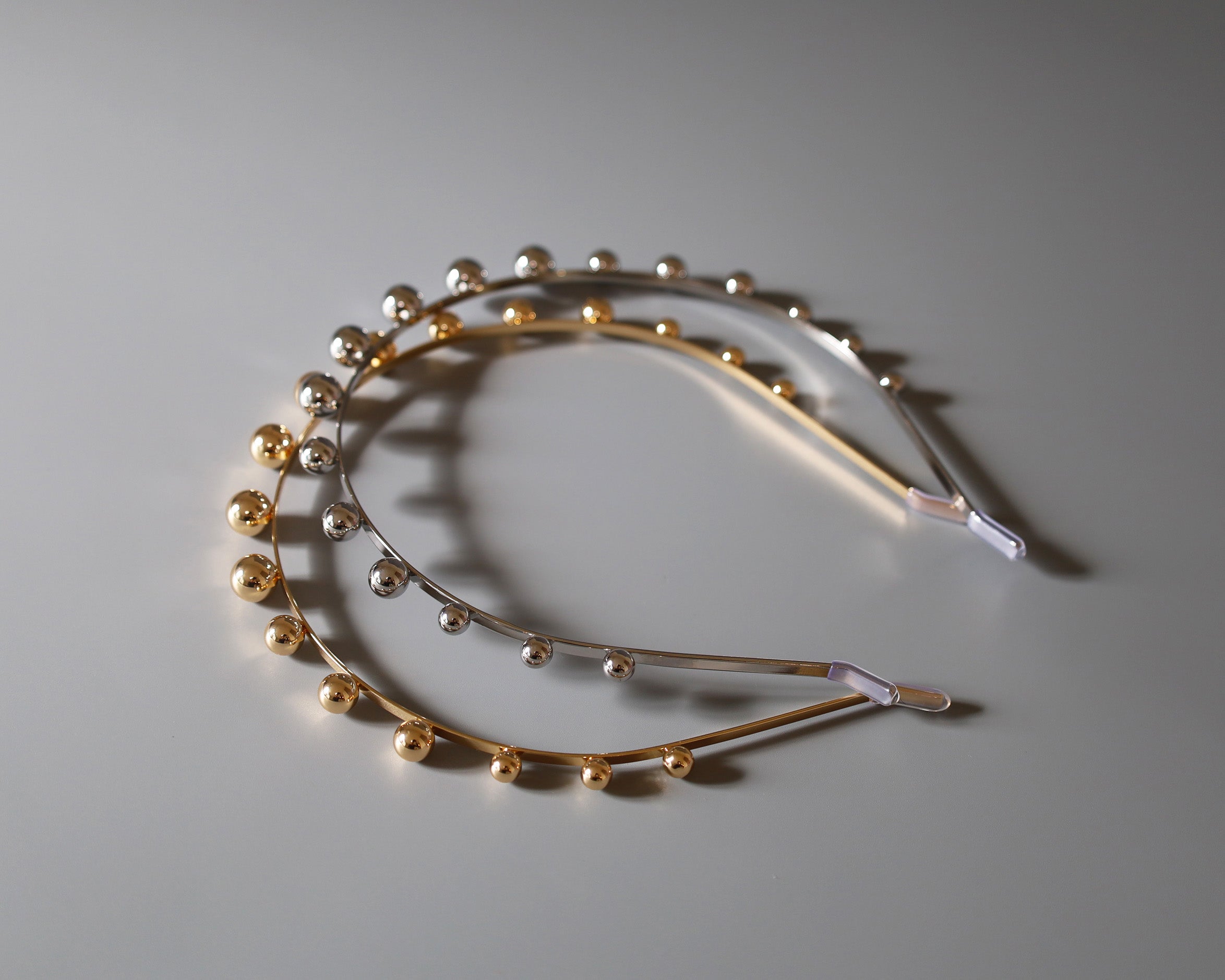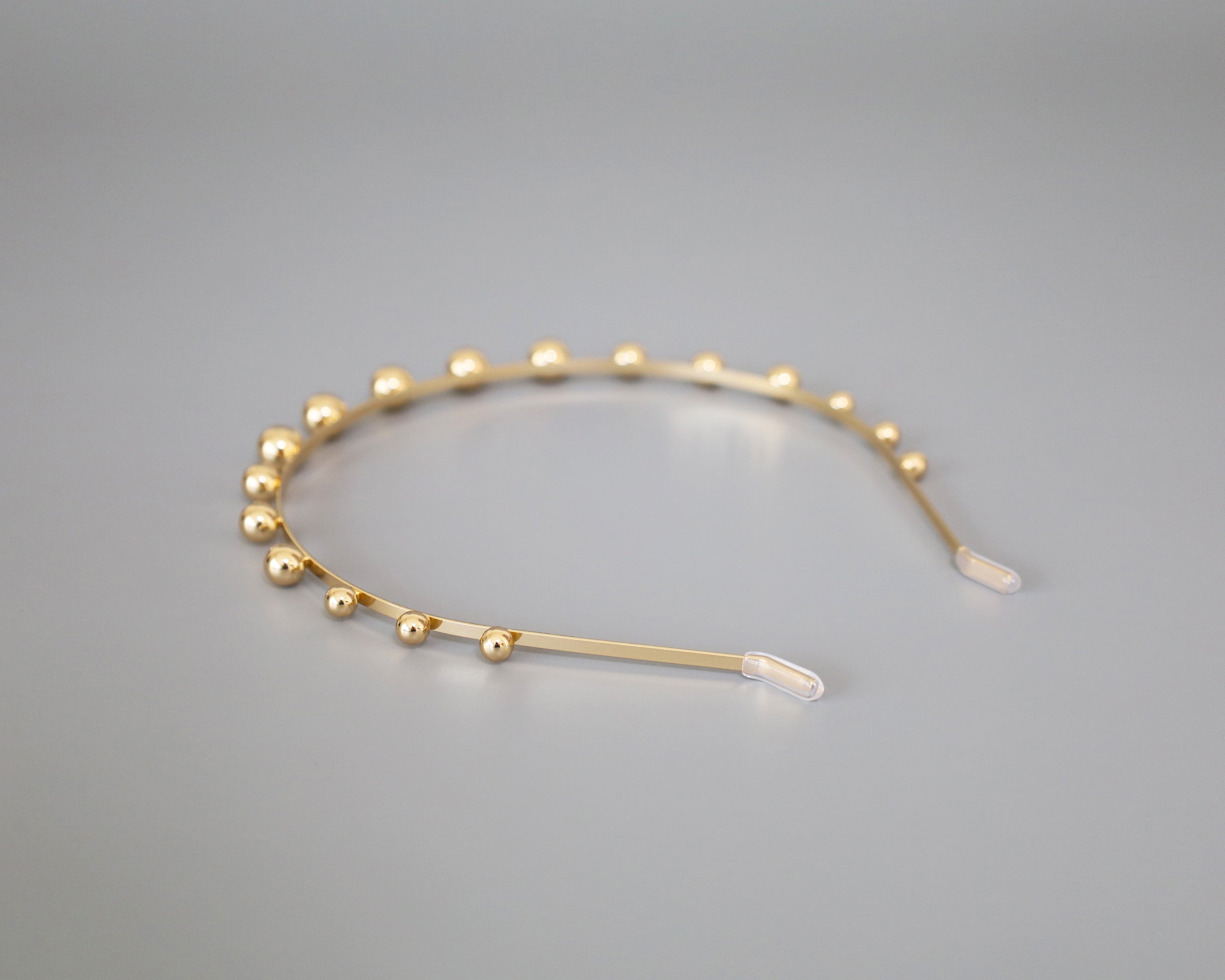 ゴールドのフレームとボールパーツを同素材でまとめた、エレガントさが漂うメタルカチューシャ。