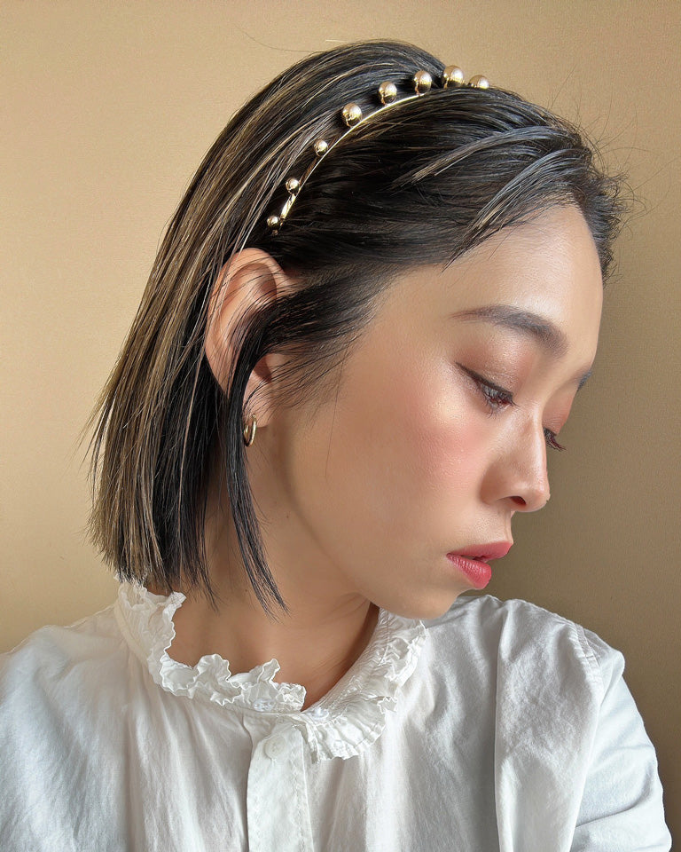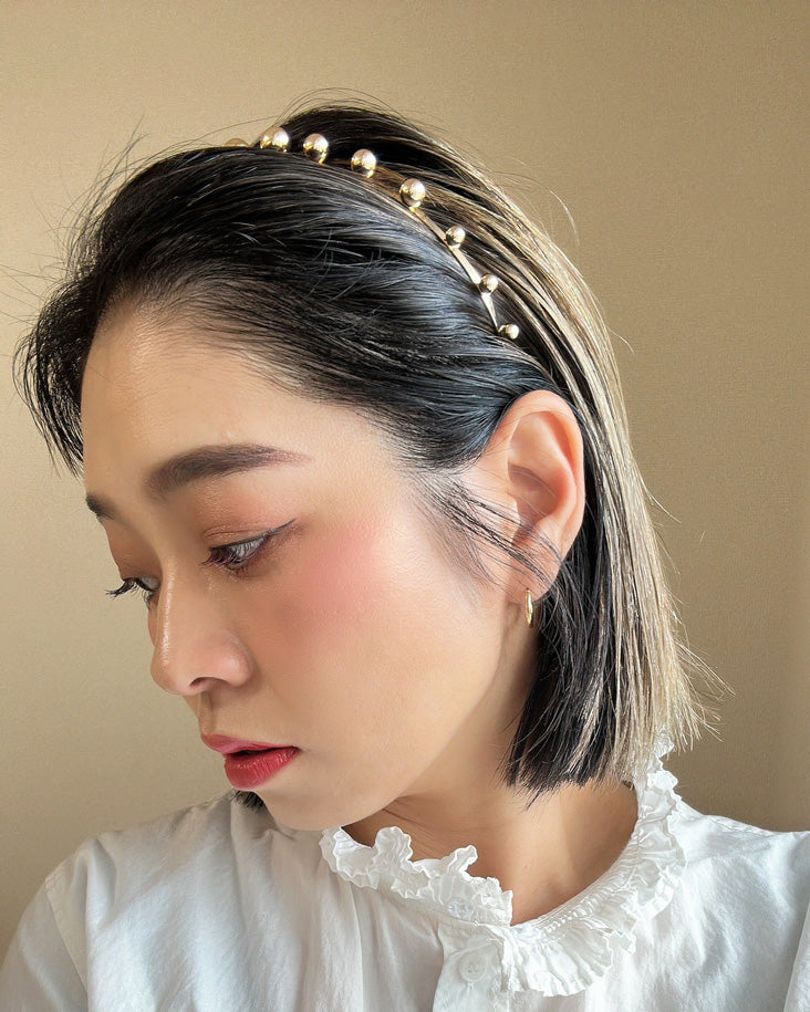 短めヘアの人にもぜひ取り入れてほしいカチューシャです。