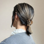 ゆるっと仕上げたローポニーのゴム隠しに使えばこなれた雰囲気に。