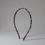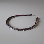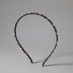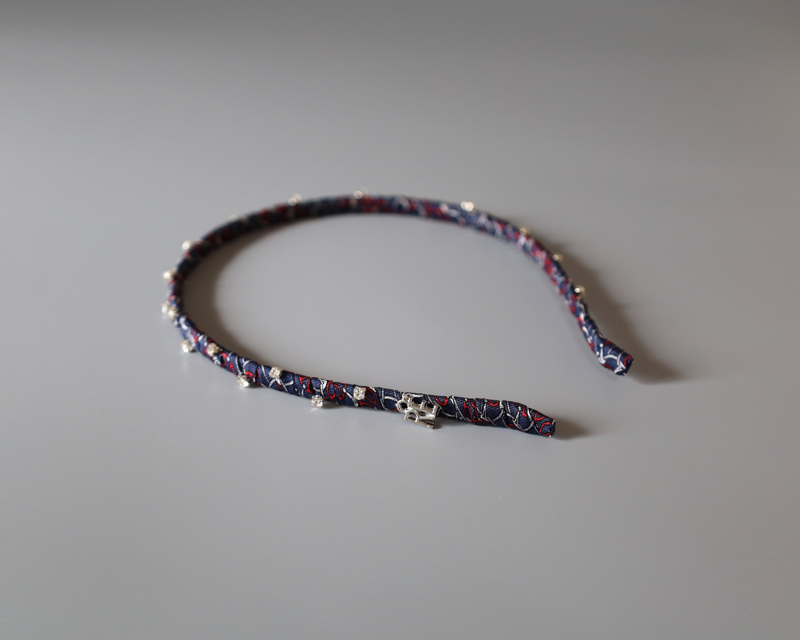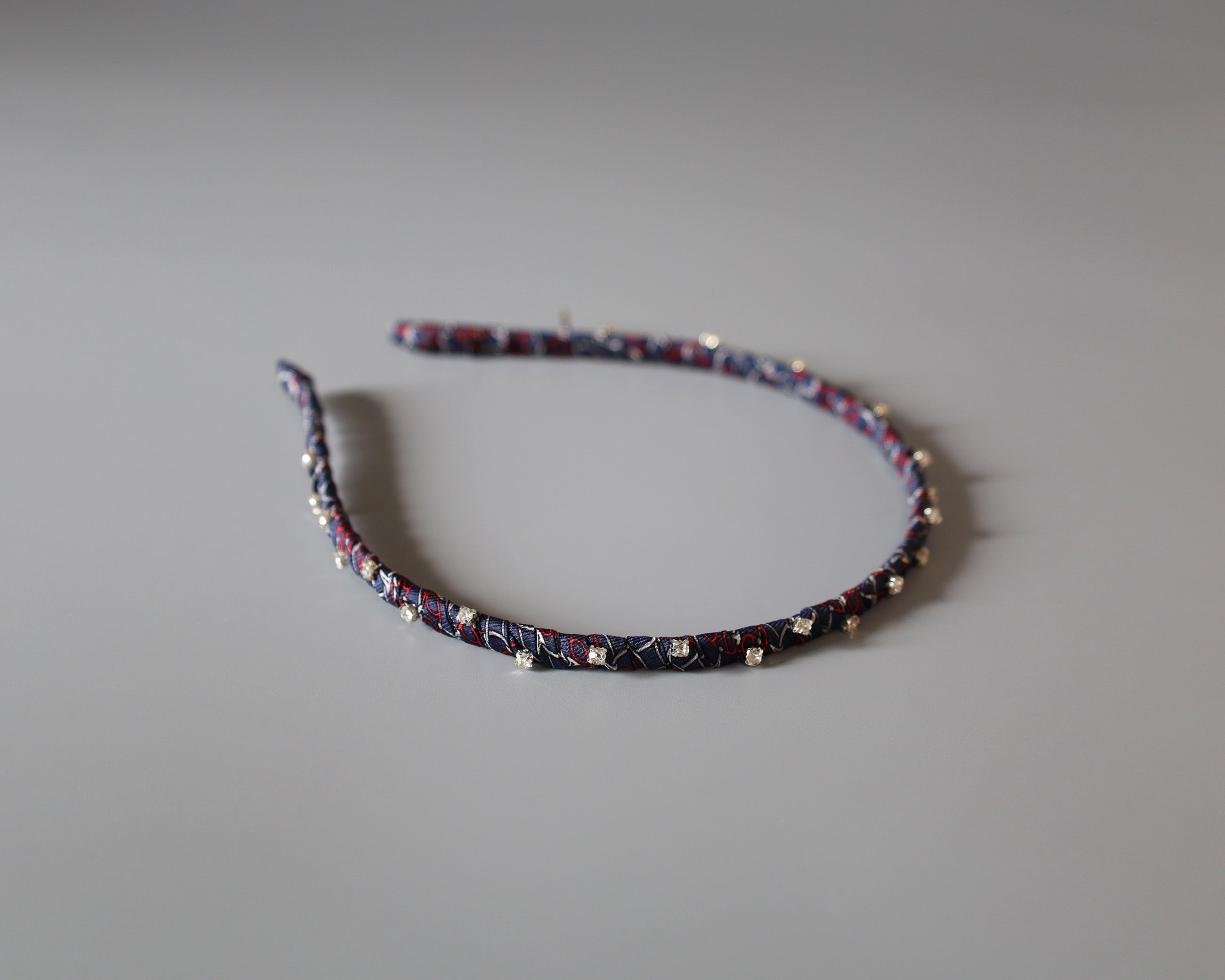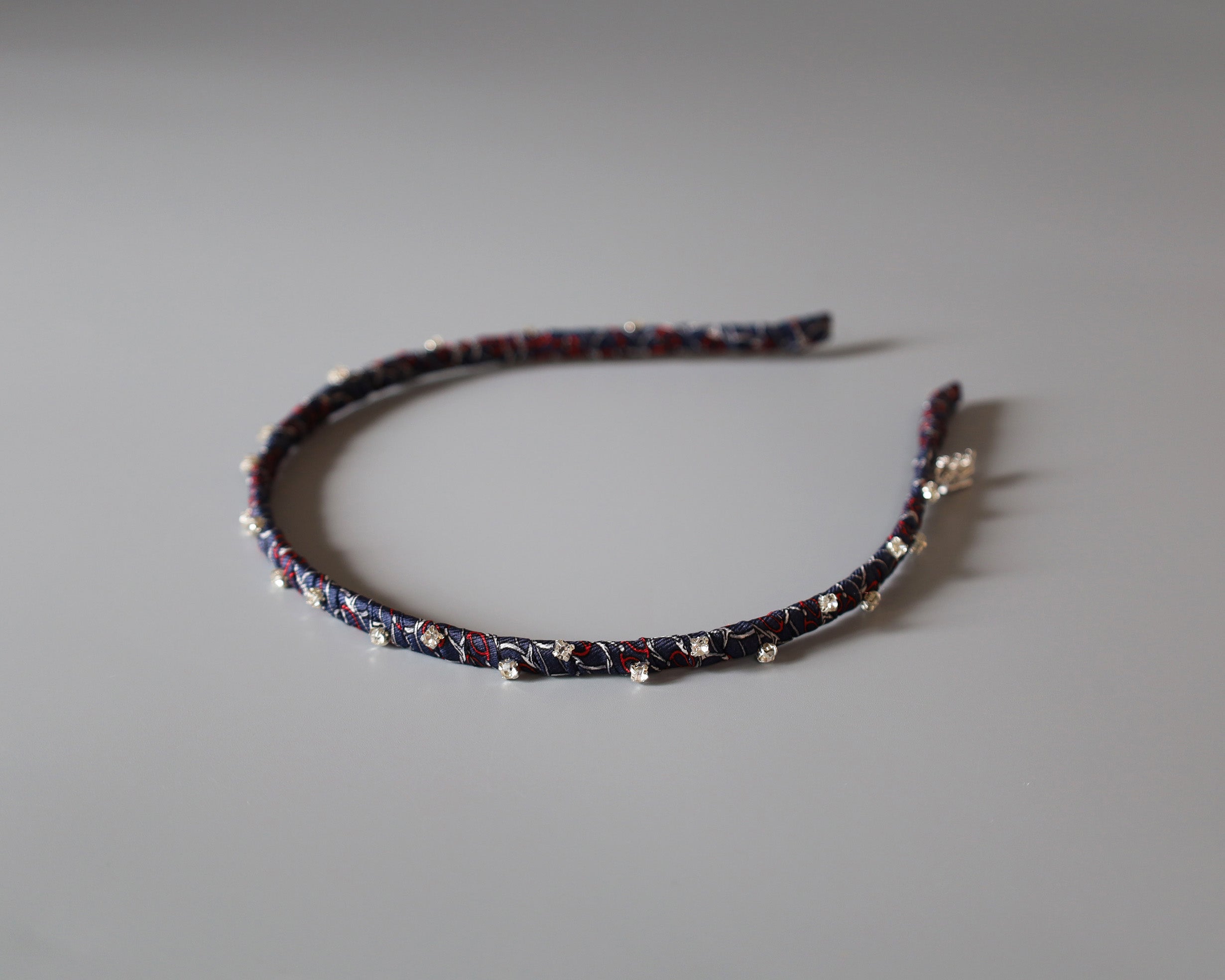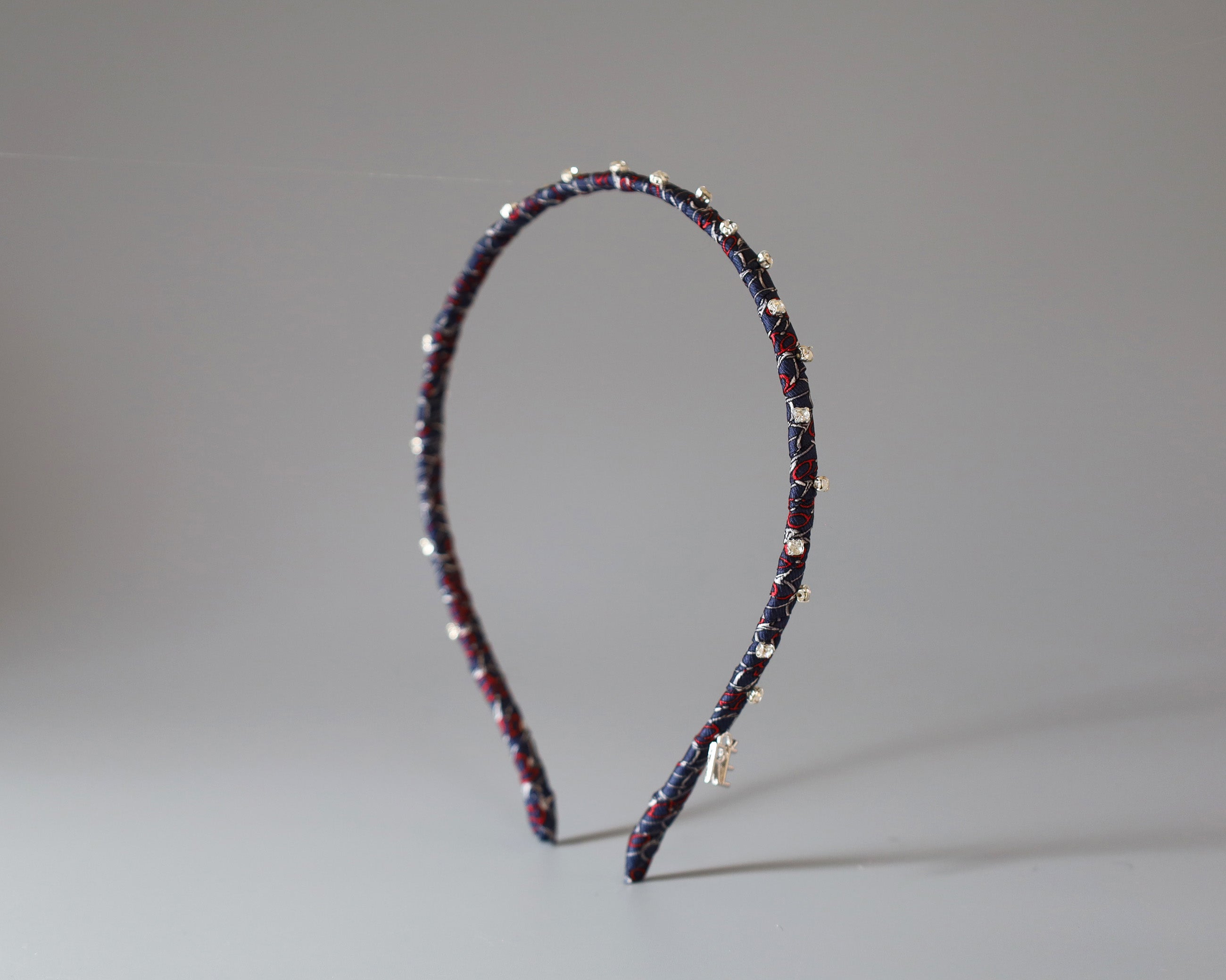 ネイビーをベースにしたシルクを纏った極細カチューシャ。