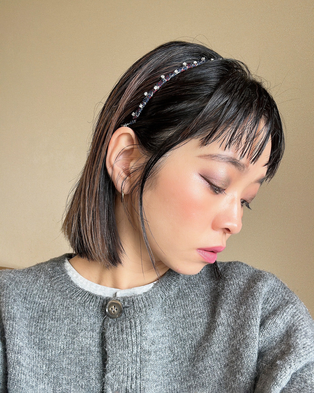 上質なきらめきに合うように、オイルやバームでツヤ感を出したヘアに合わせるのがおすすめです。