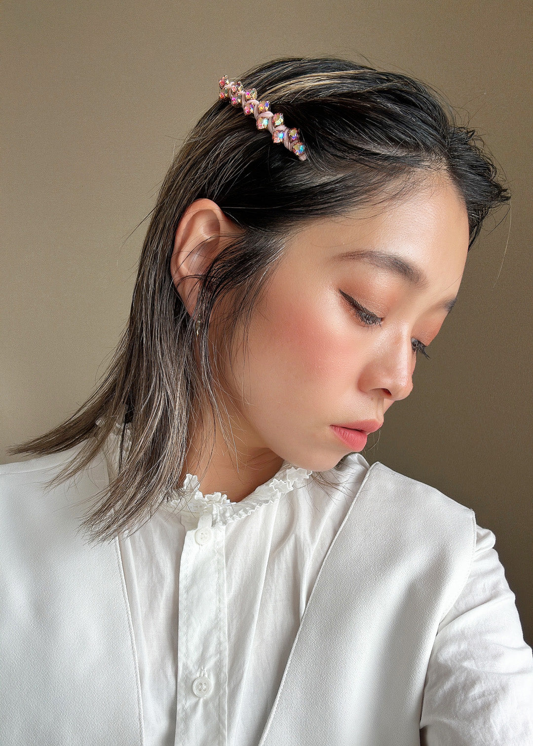 キラキラ感がキュートなバレッタは、ローポニーのゴム隠しやハーフアップスタイルと相性抜群。