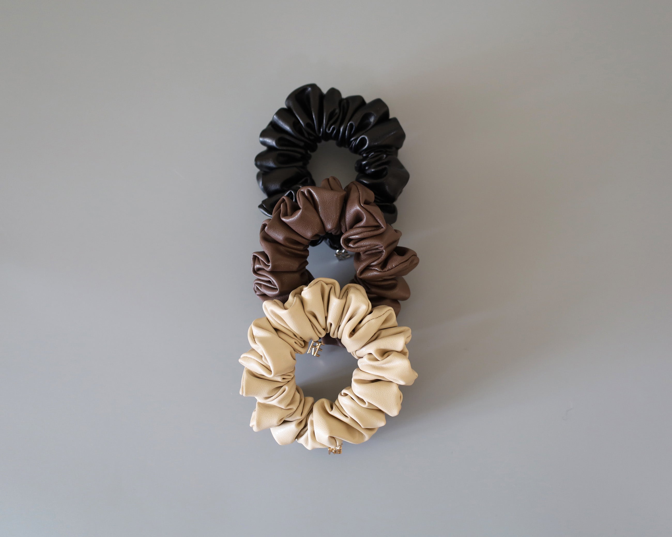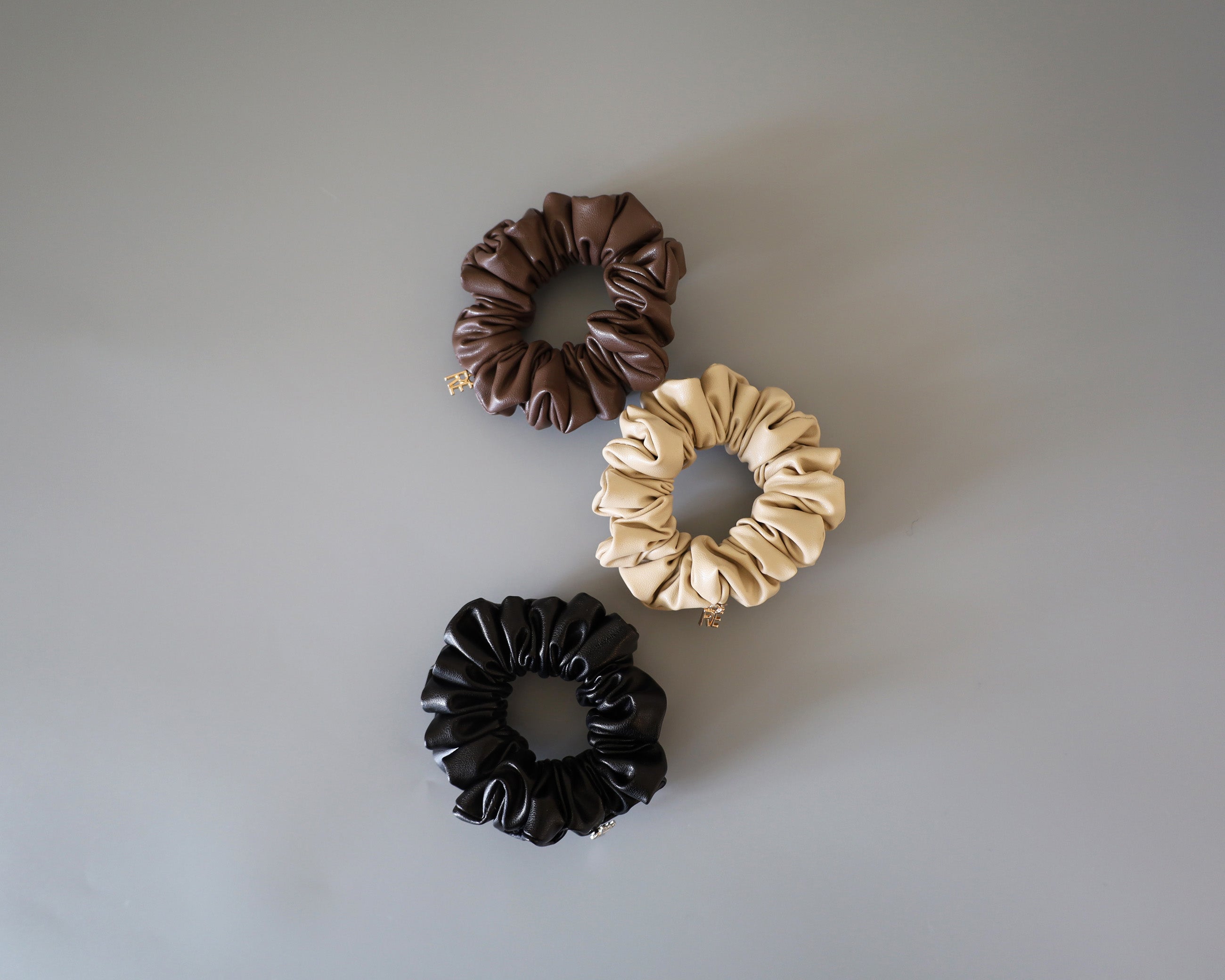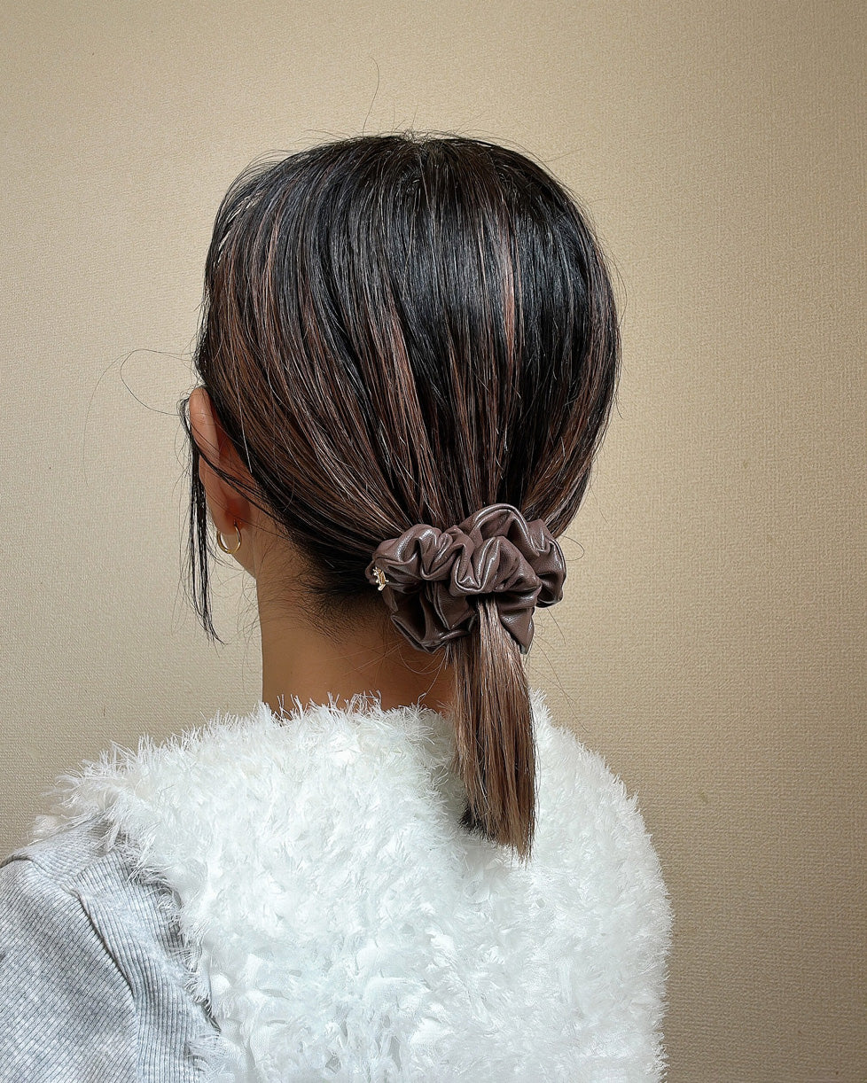 チョコレートドーナツみたいなブラウンカラーのレザー風シュシュ。
