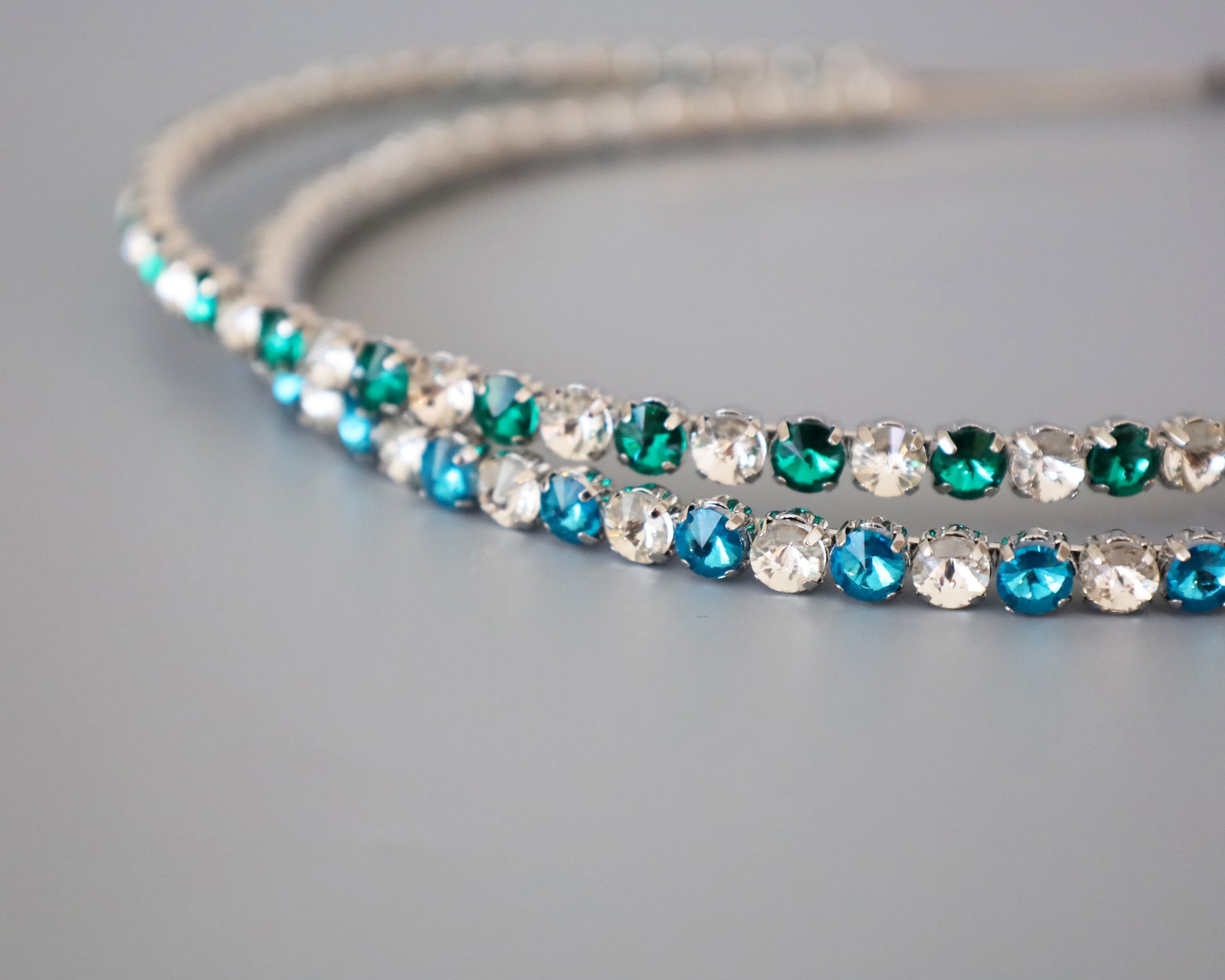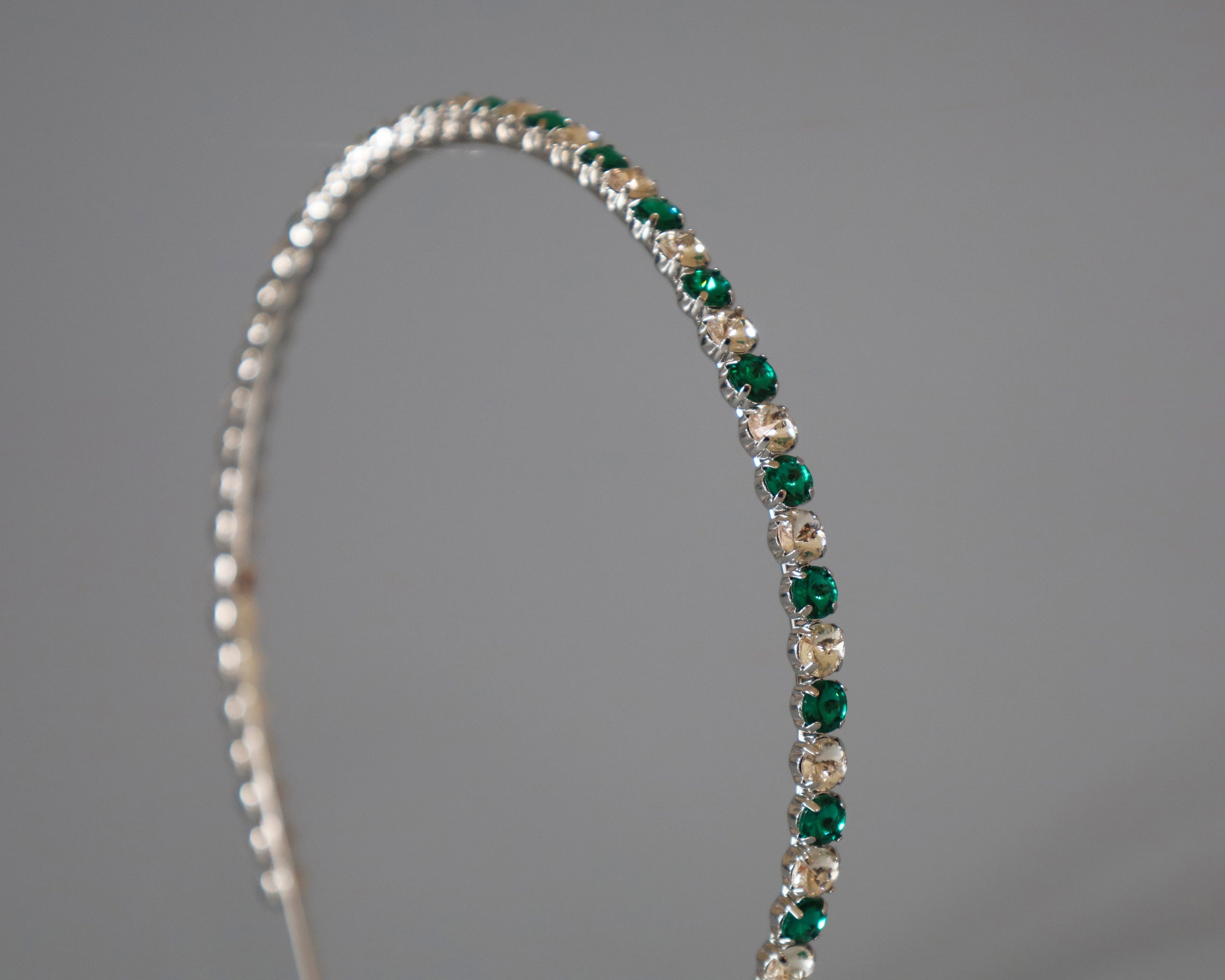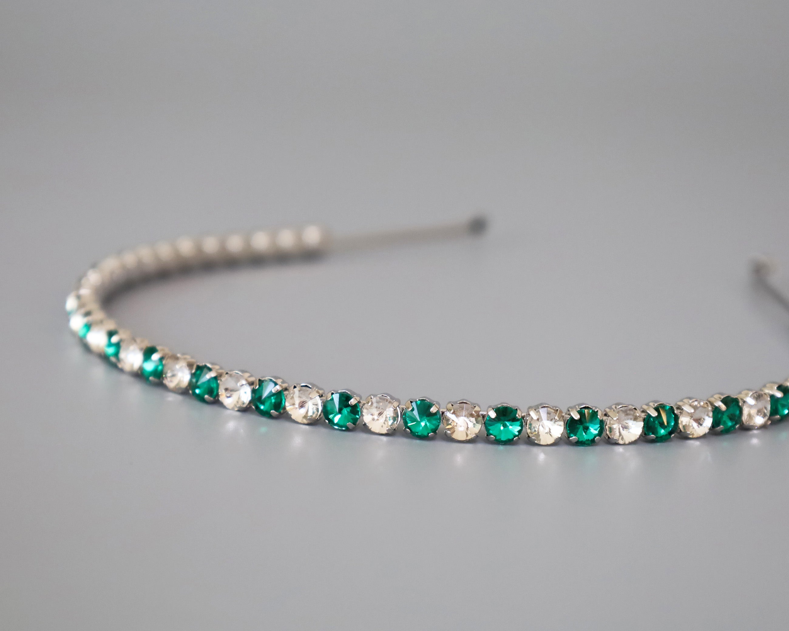 クリアとグリーンのビジューを交互に配置することで、ノーブルな美しさを叶えます。