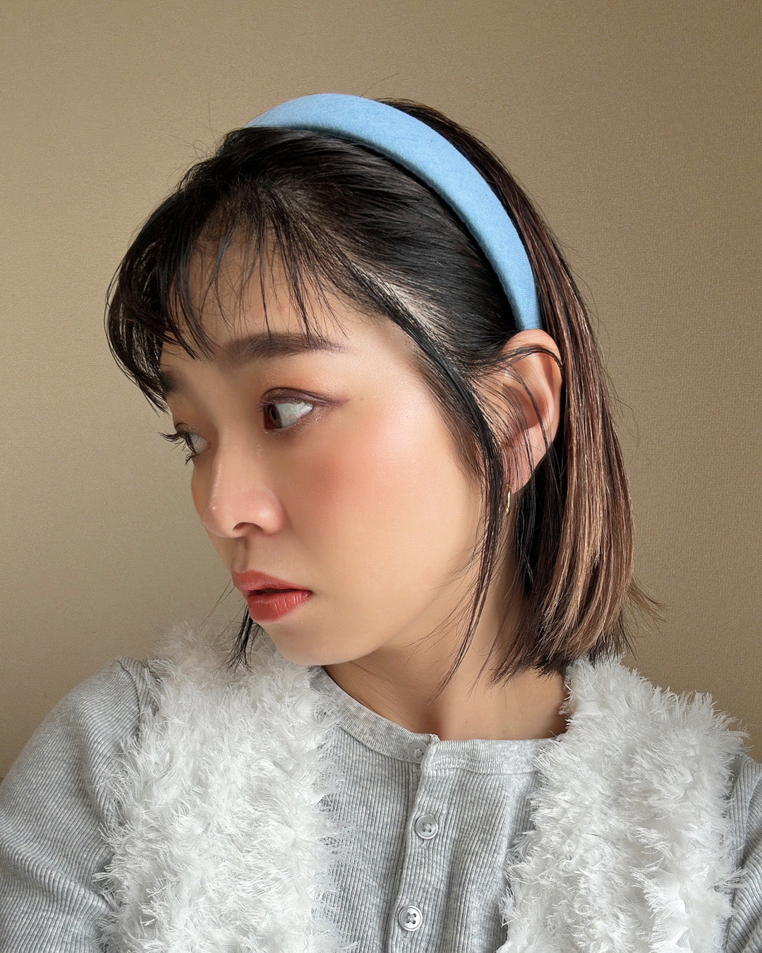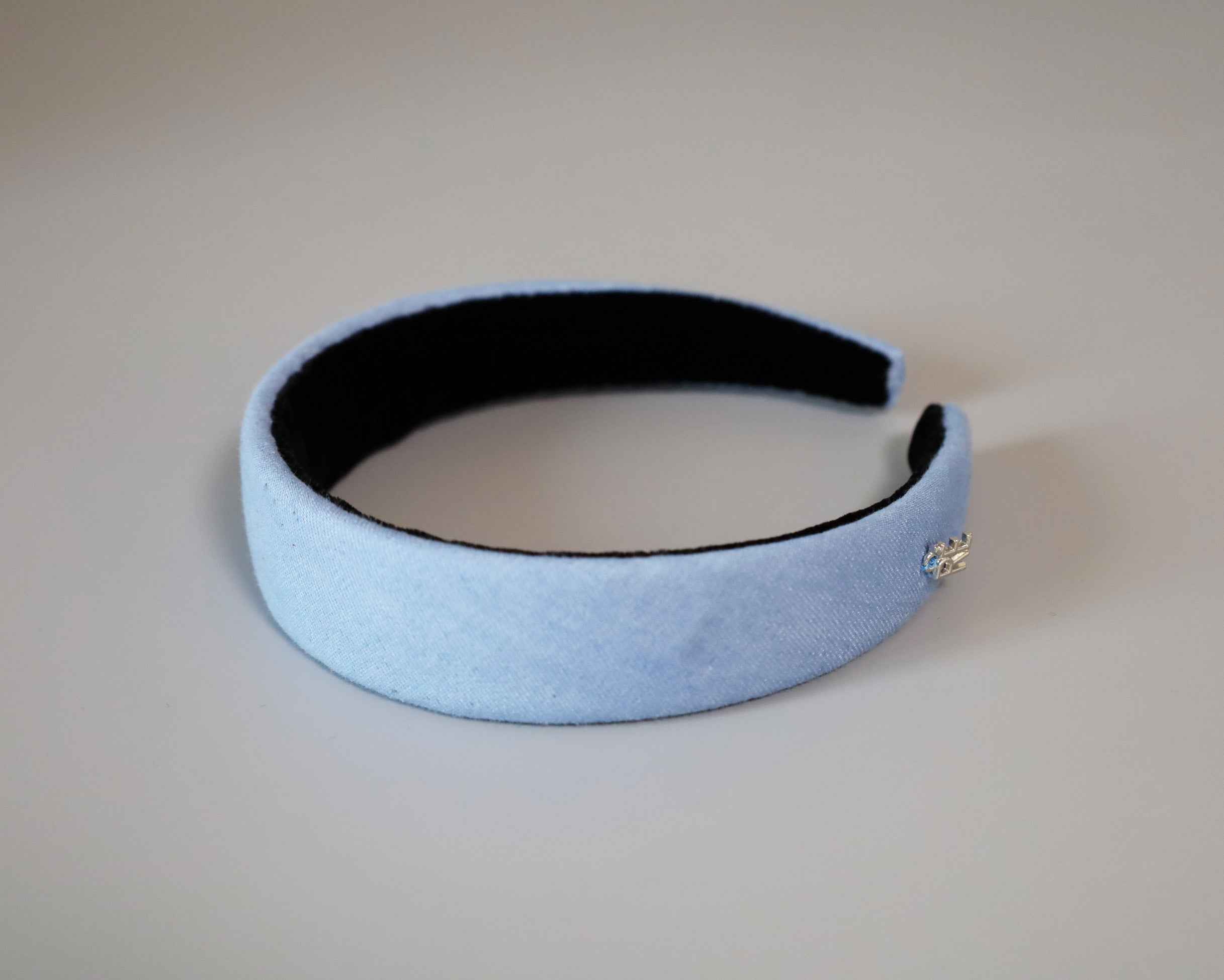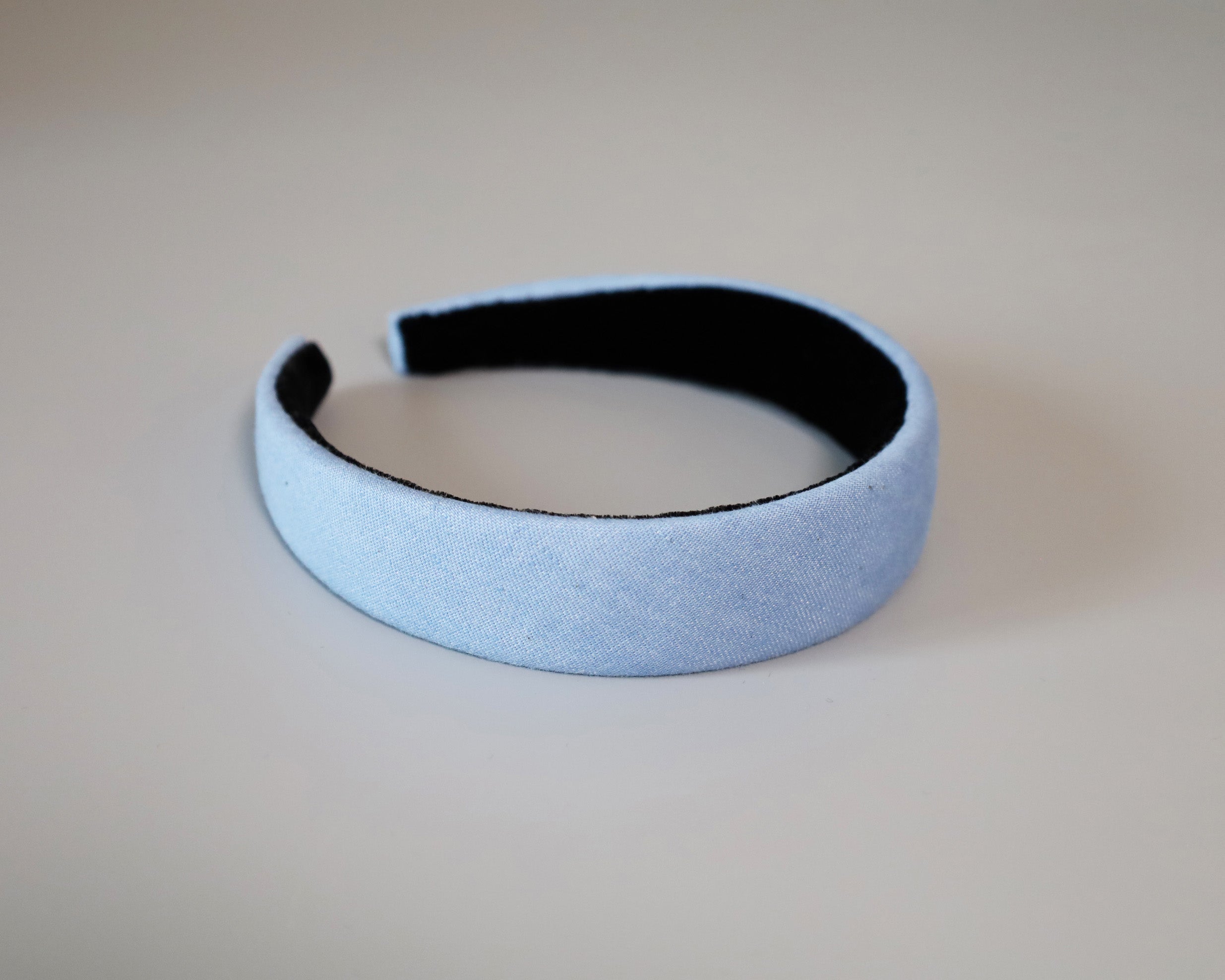 淡いライトブルーが軽やかなデニムカチューシャ。
