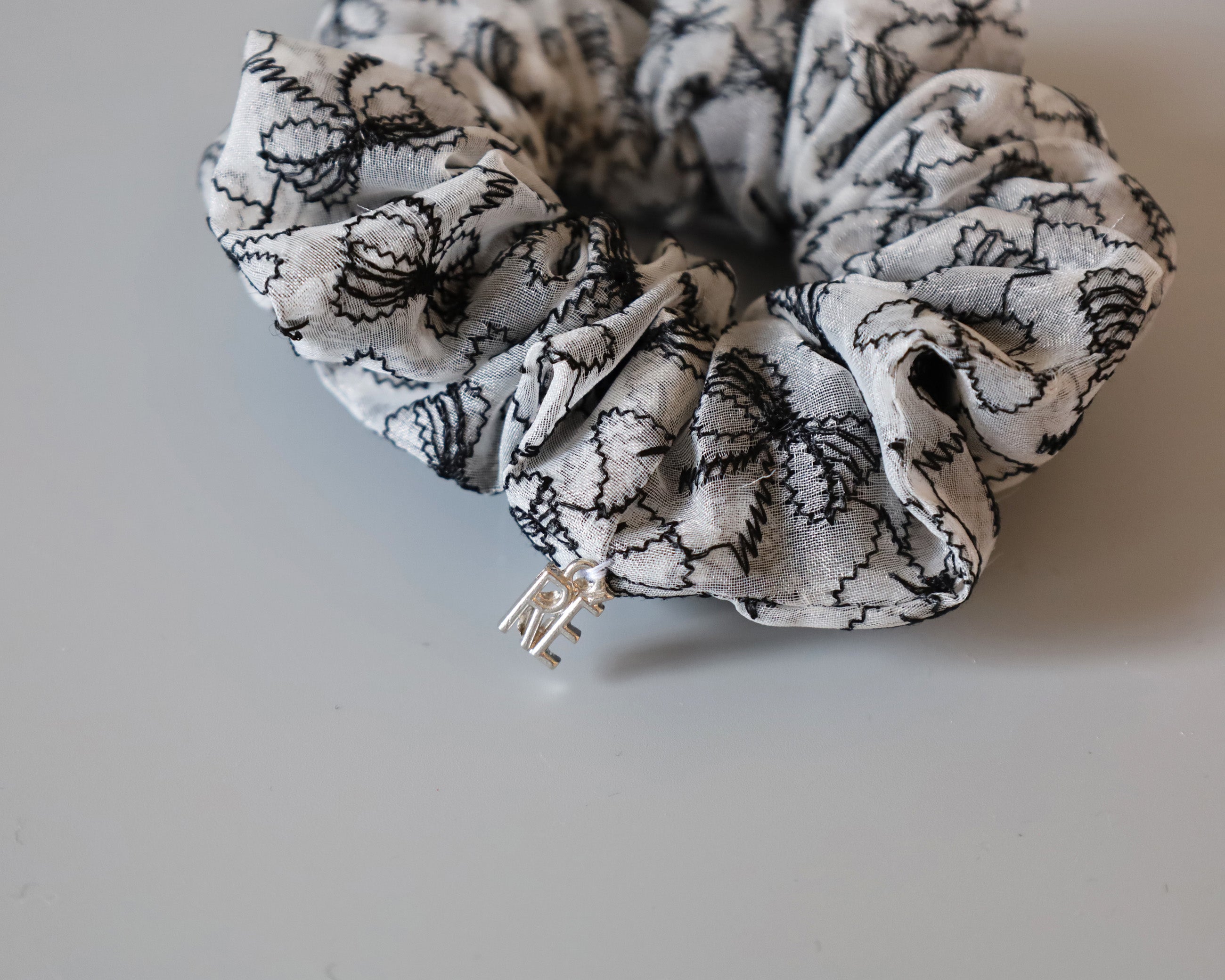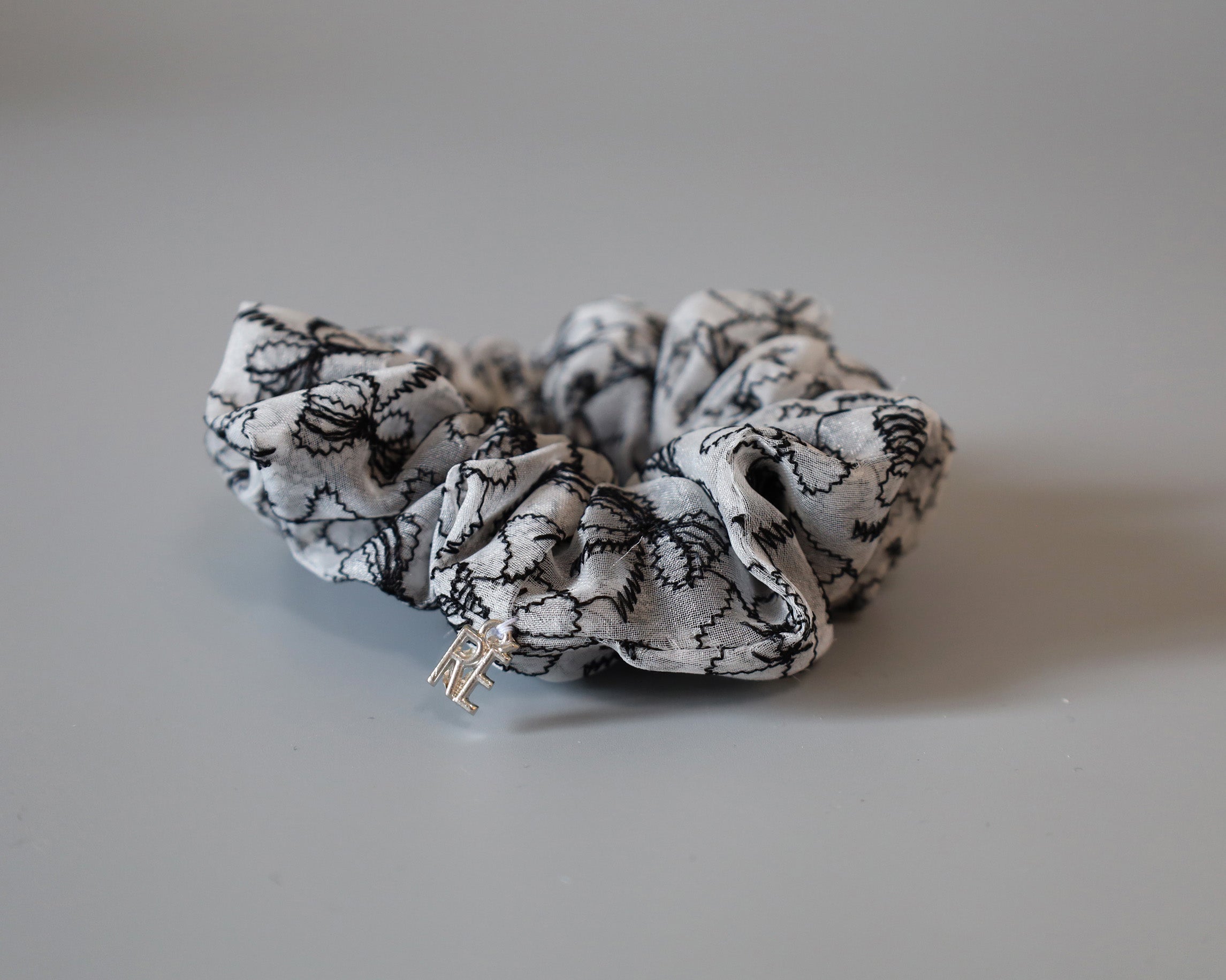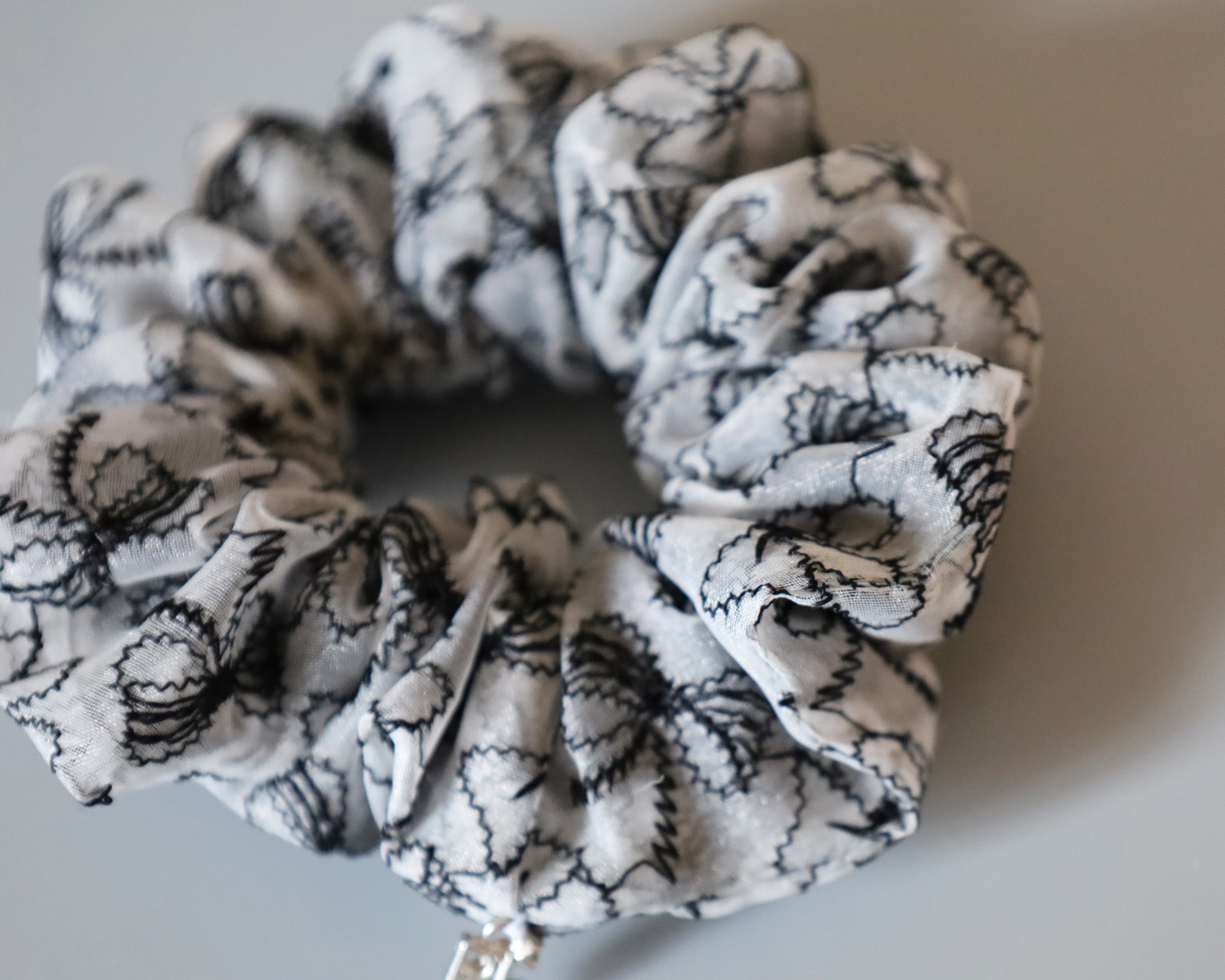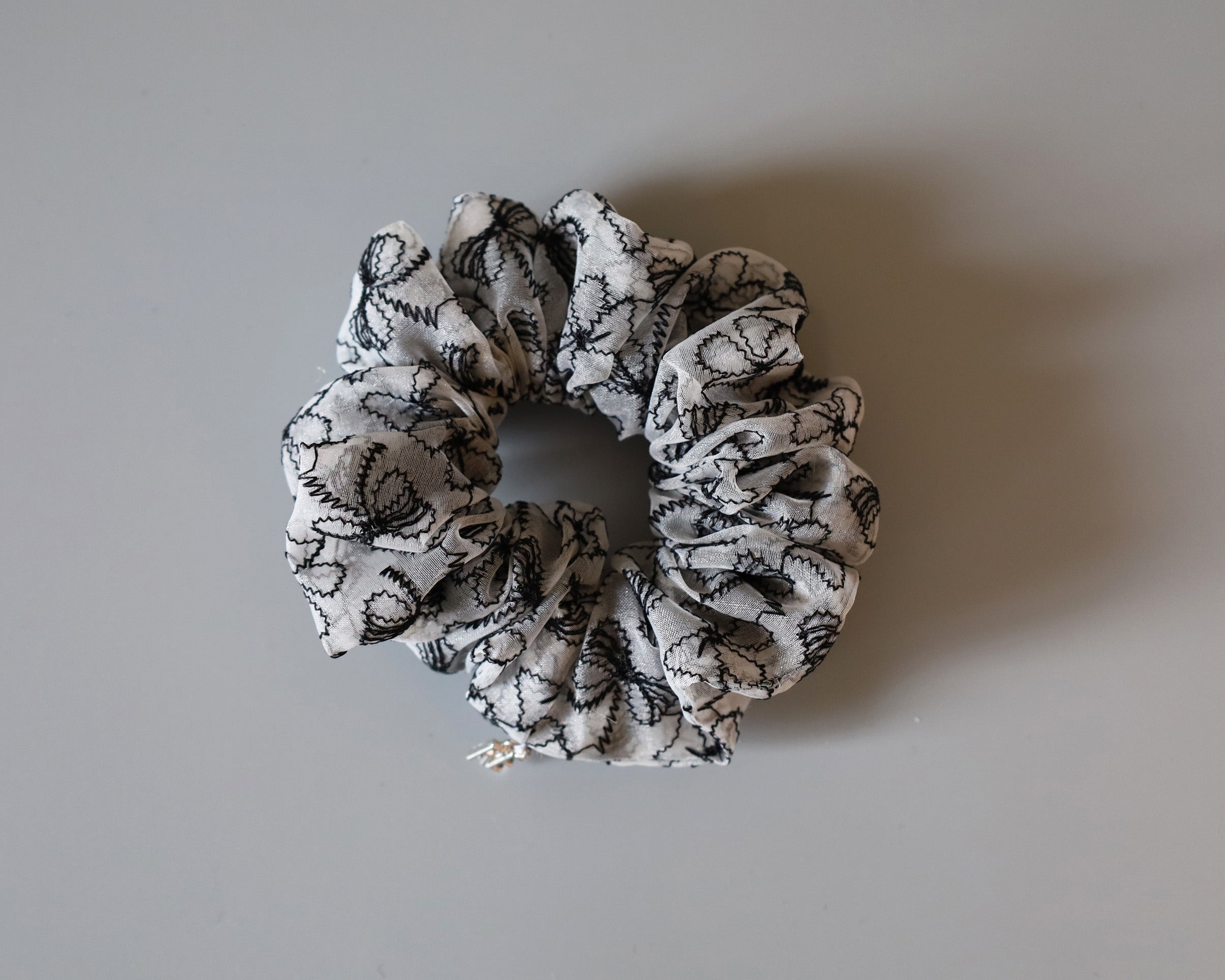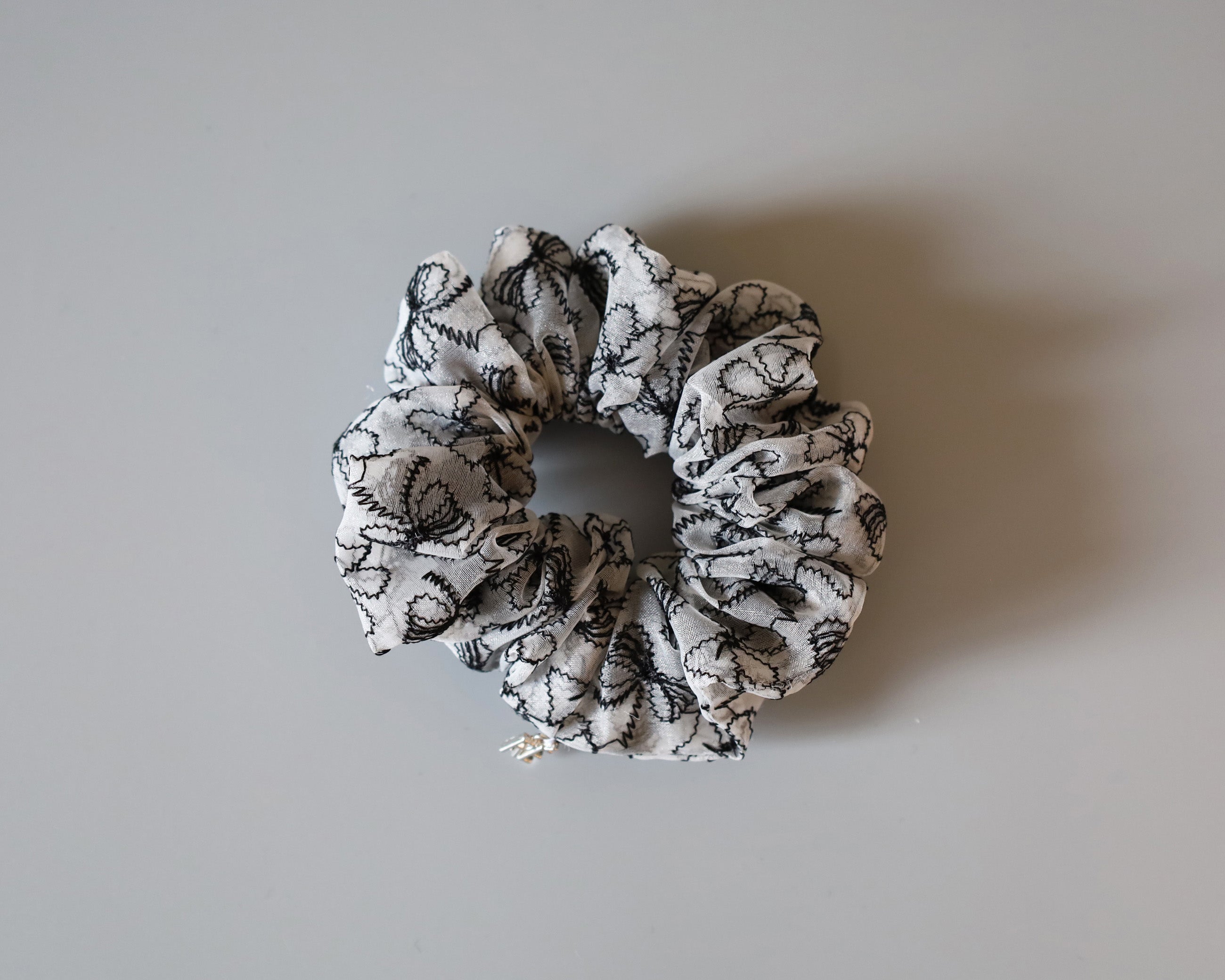 モノトーンカラーのリボン柄シュシュのミニサイズ。