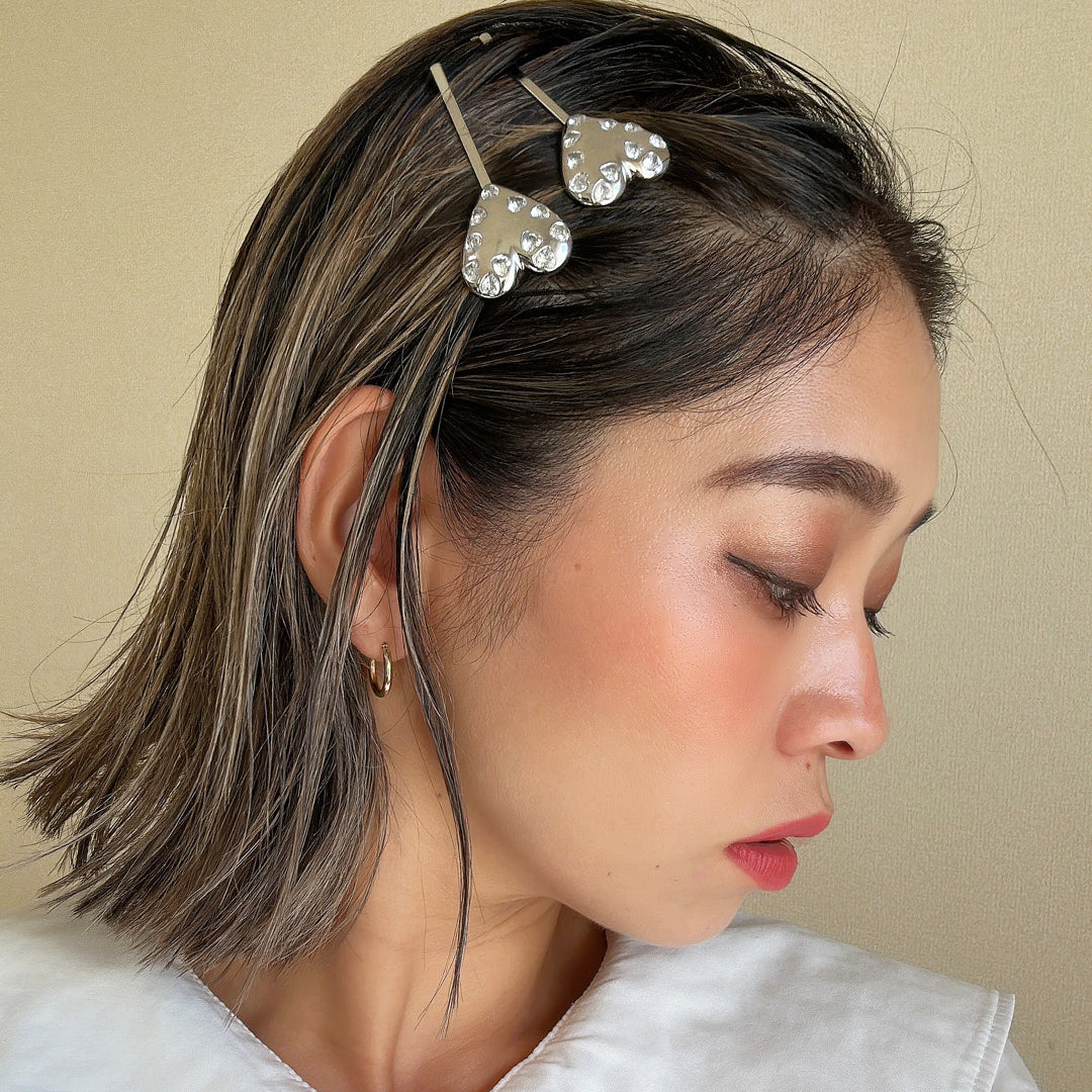 シンプルなローポニーも、あらかじめ全体を巻いてから結ぶとこなれた雰囲気に。