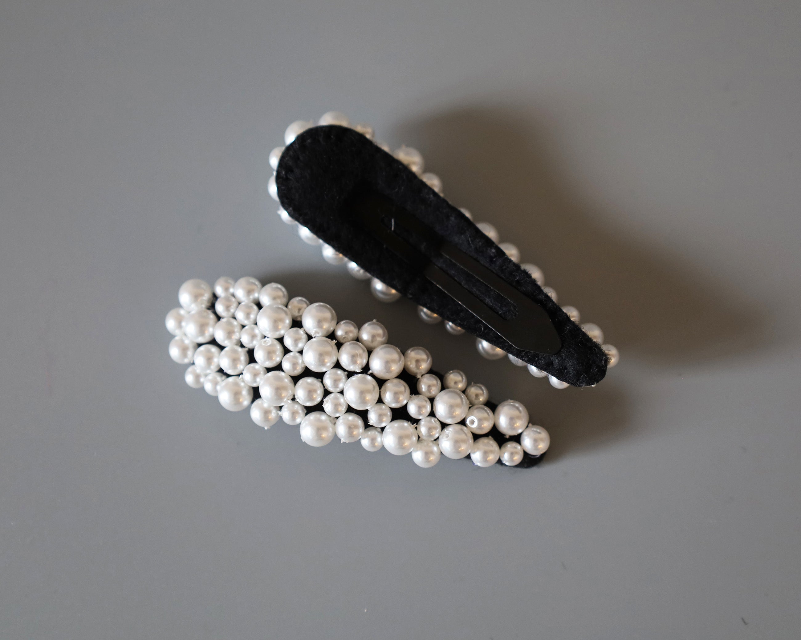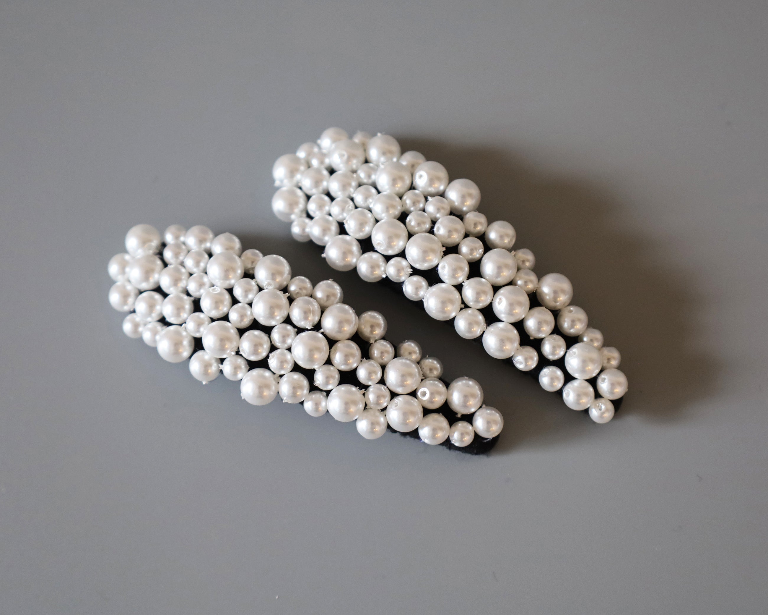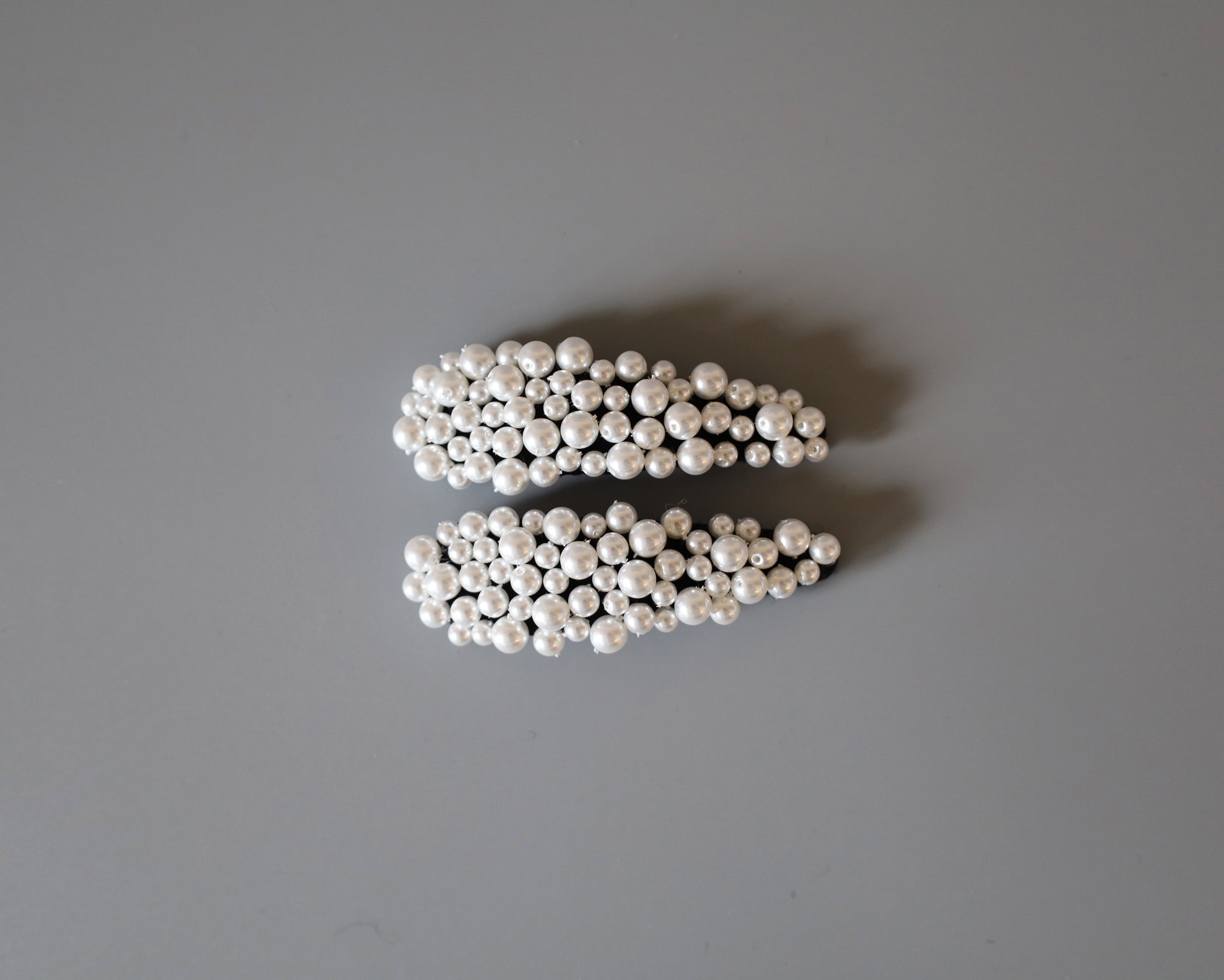 デイリーにも華やいだシーンにもマッチするパールヘアピン。