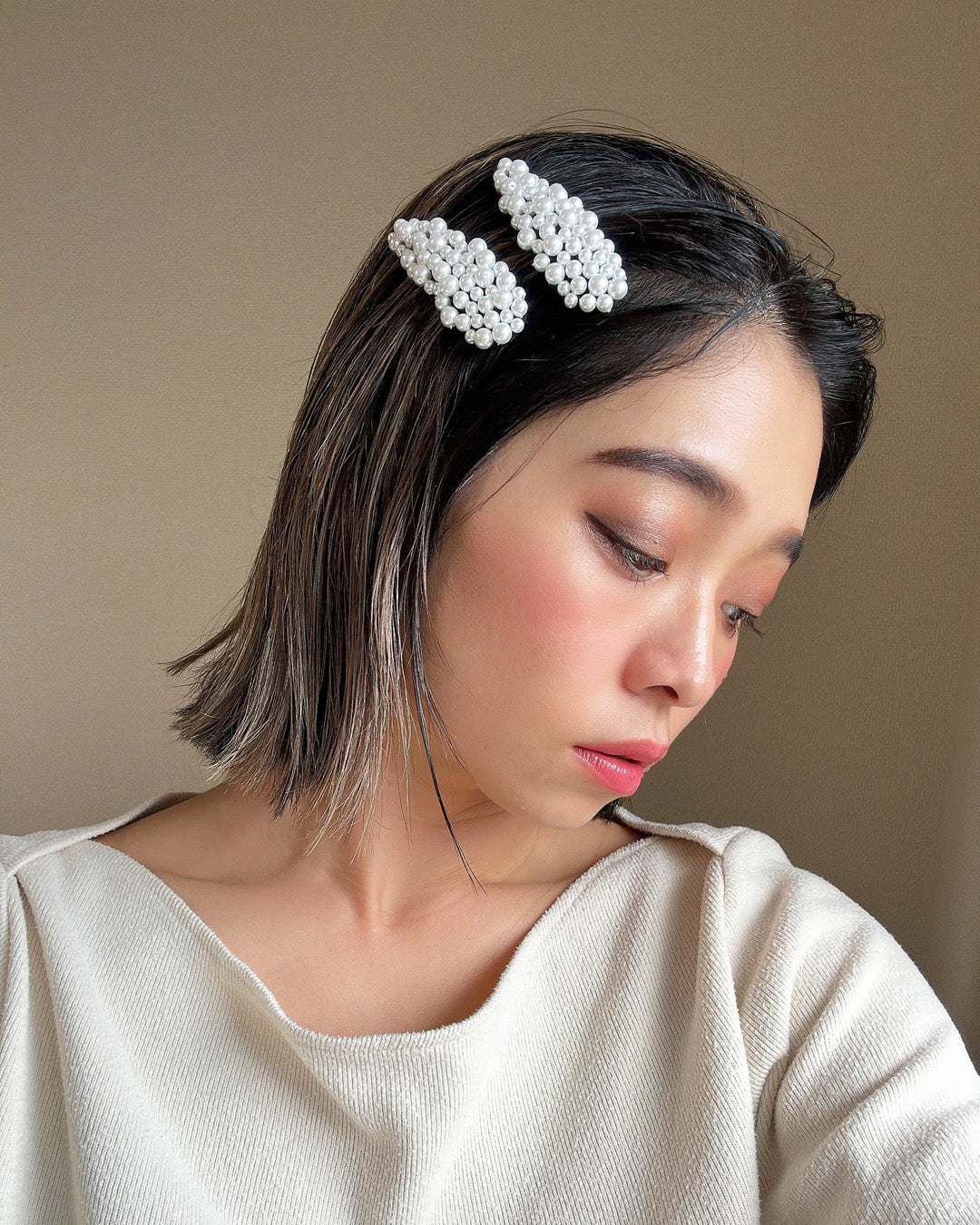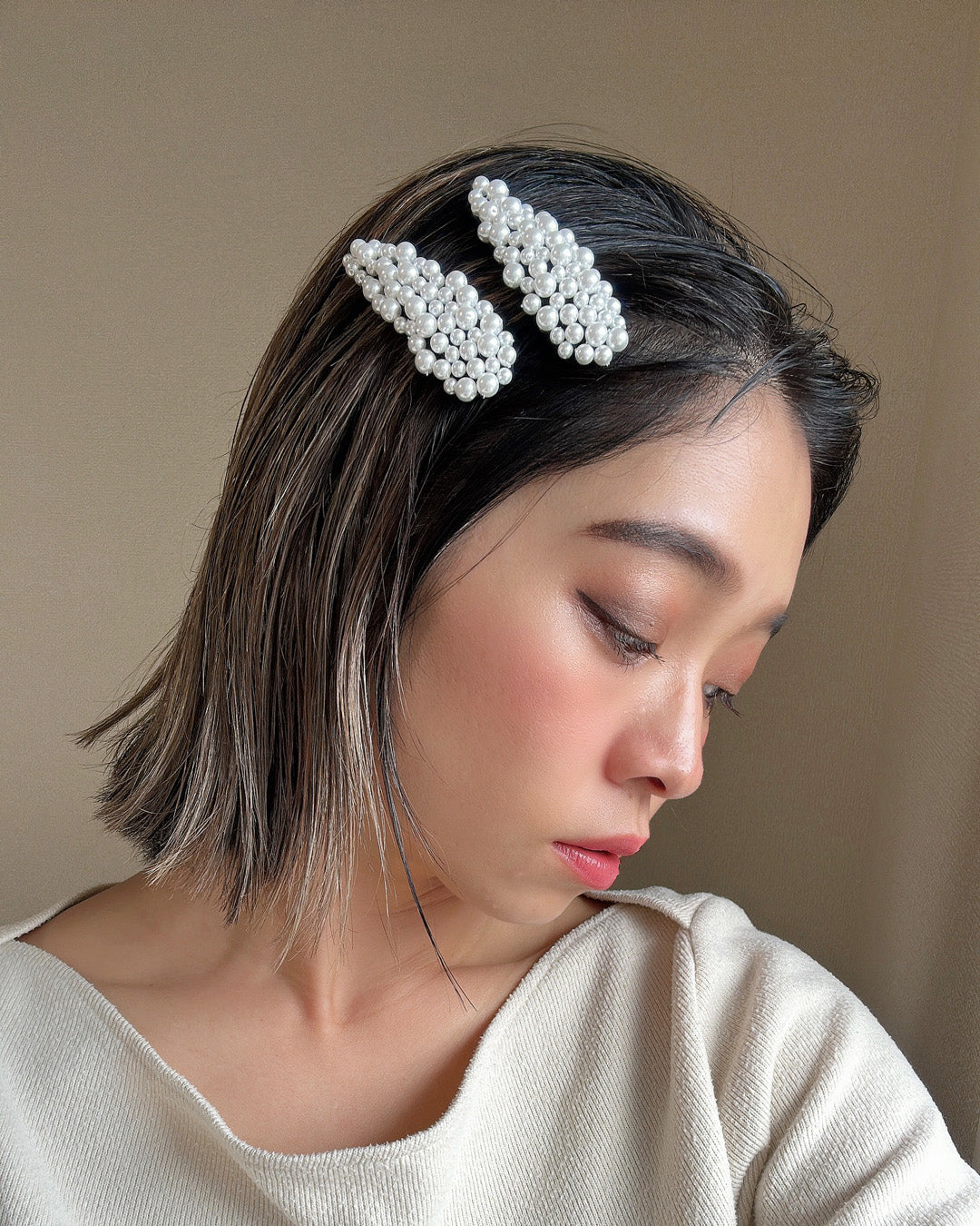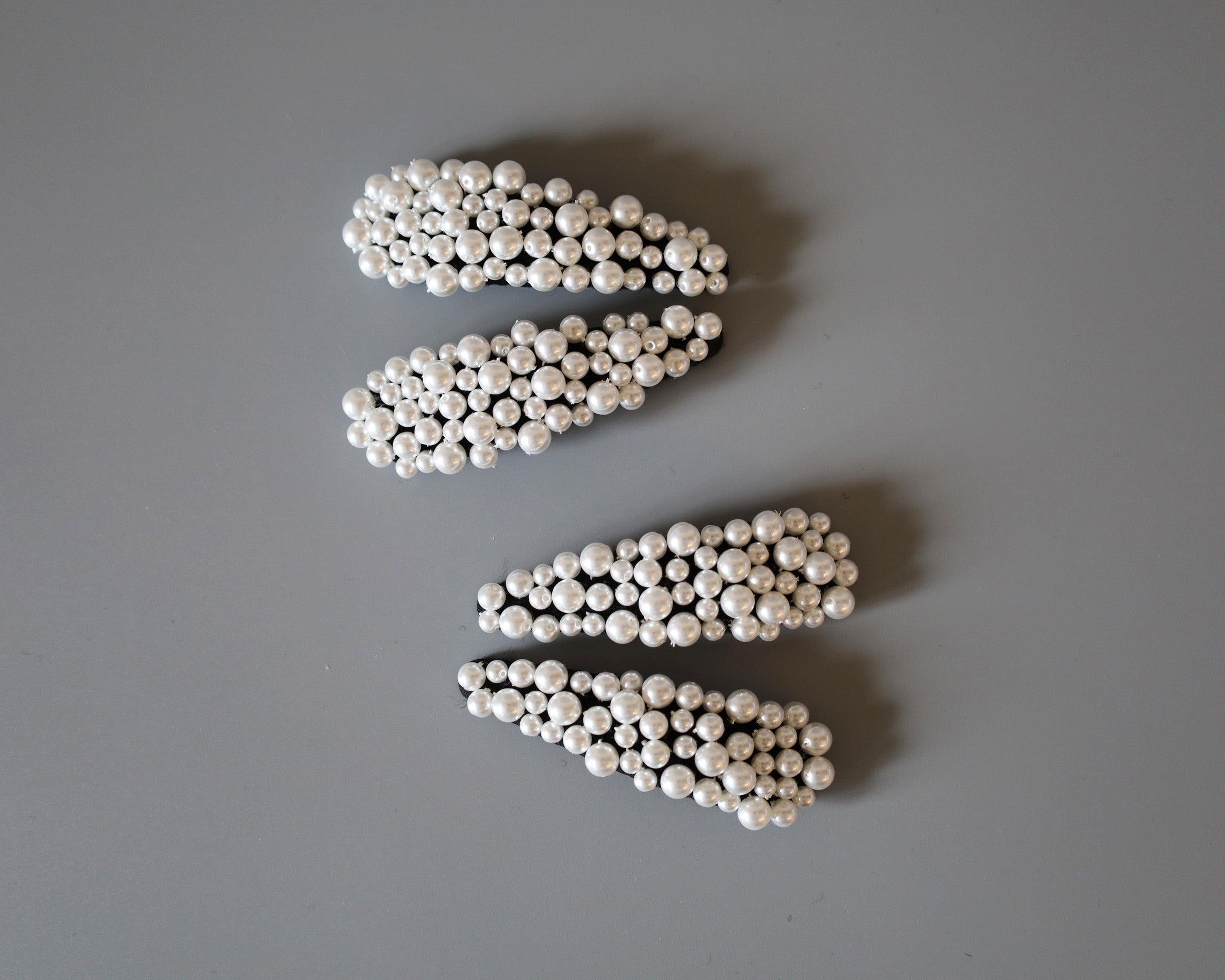 デイリーにも華やいだシーンにもマッチするパールヘアピン。