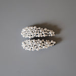シルクのヘアピンを隙間なくパールビーズで埋め尽くしたゴージャスなヘアピン。
