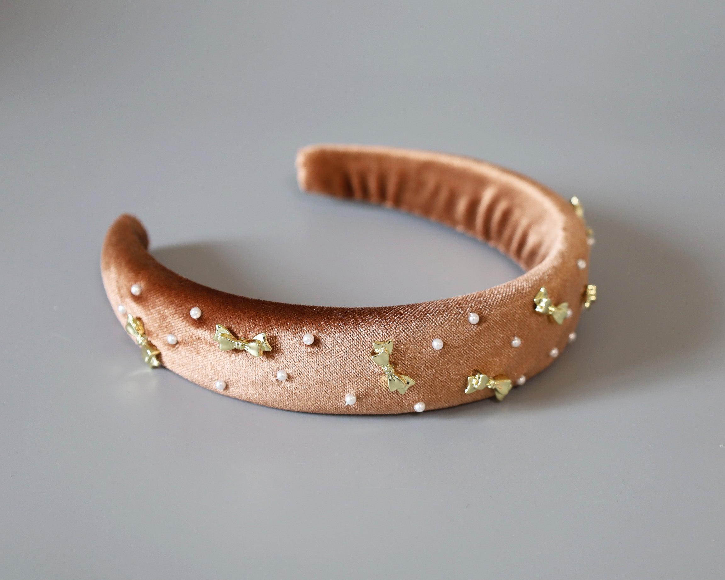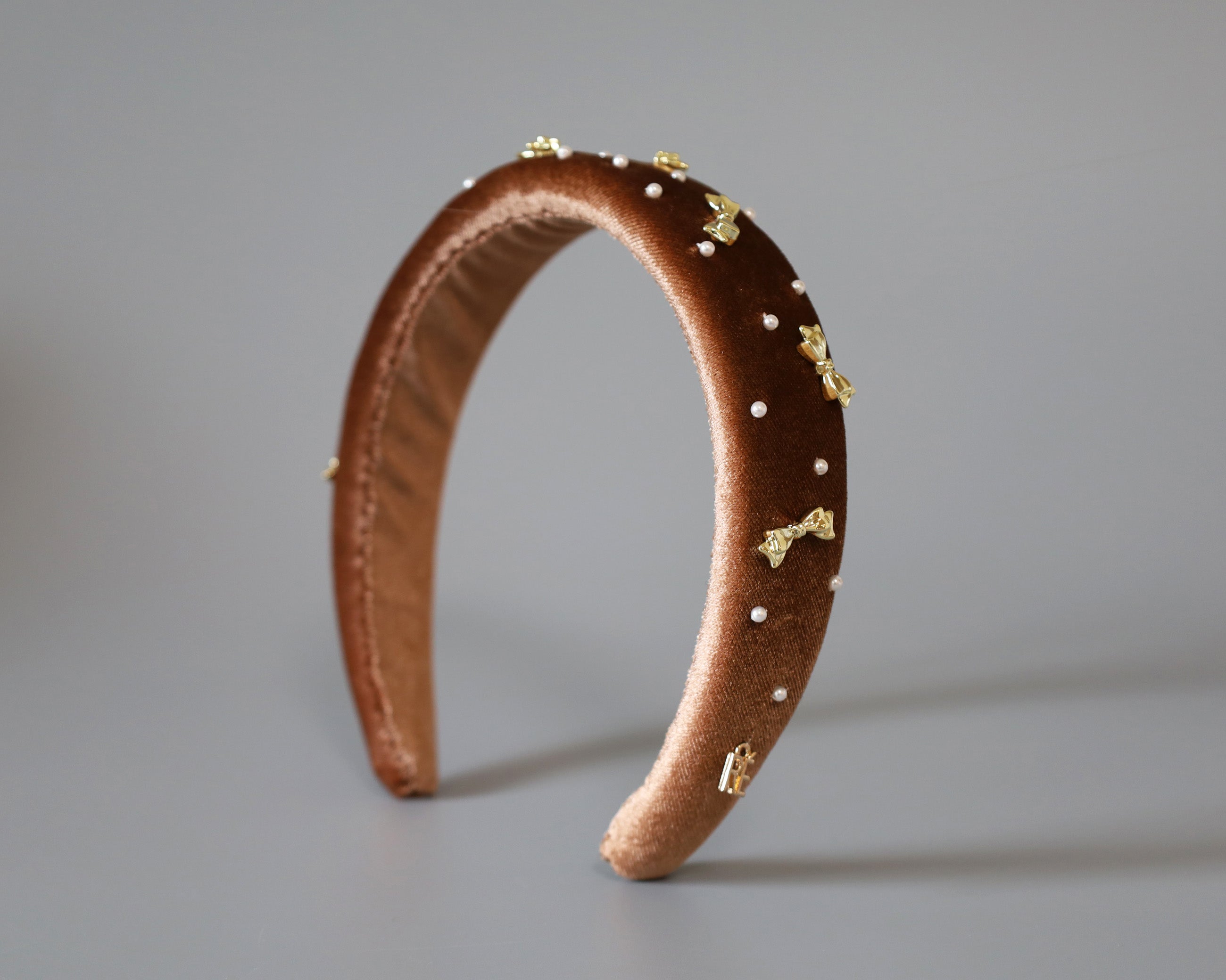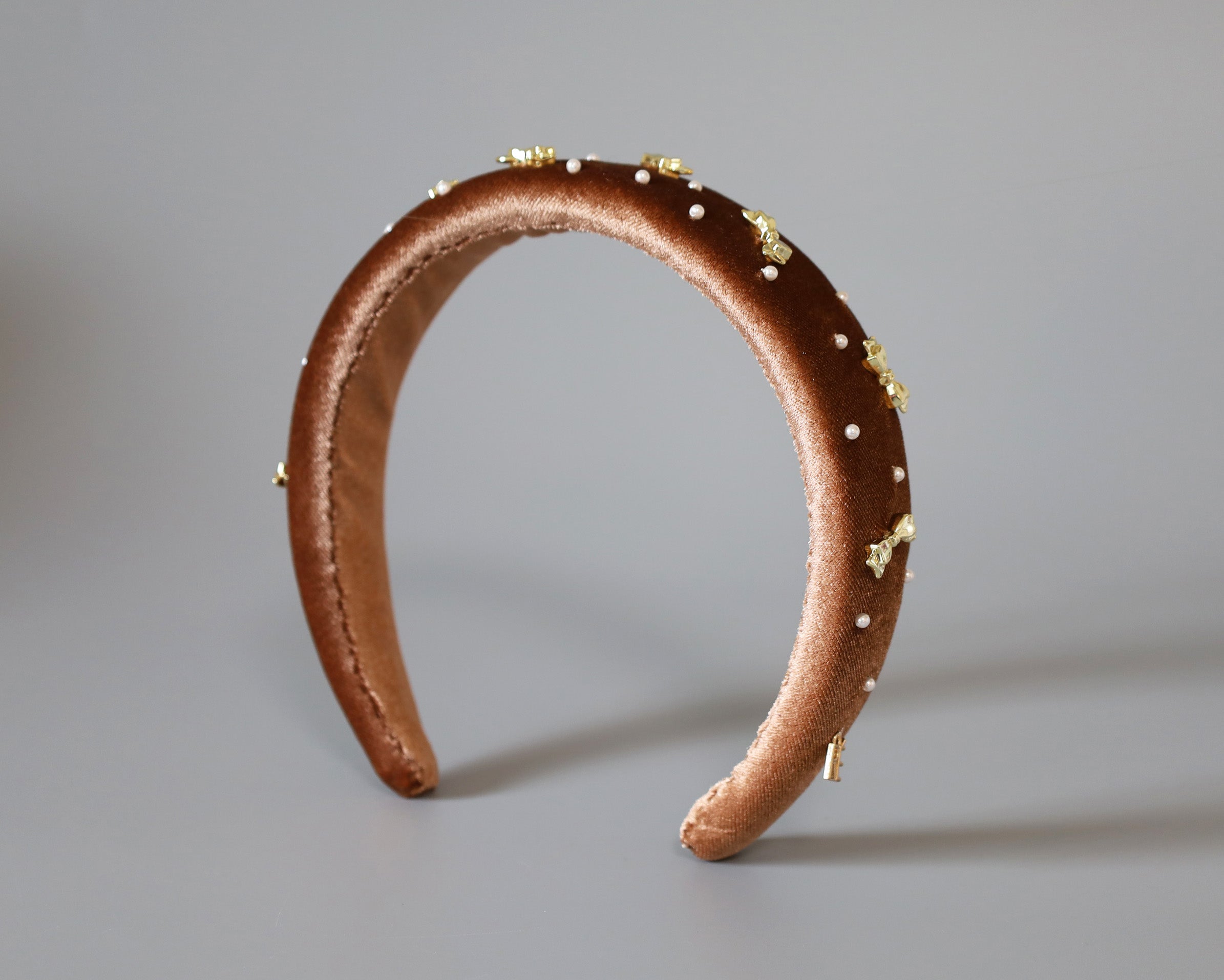 キャラメルやクリームブリュレのようなスイートなブラウンのベロアカチューシャ。