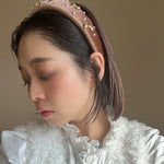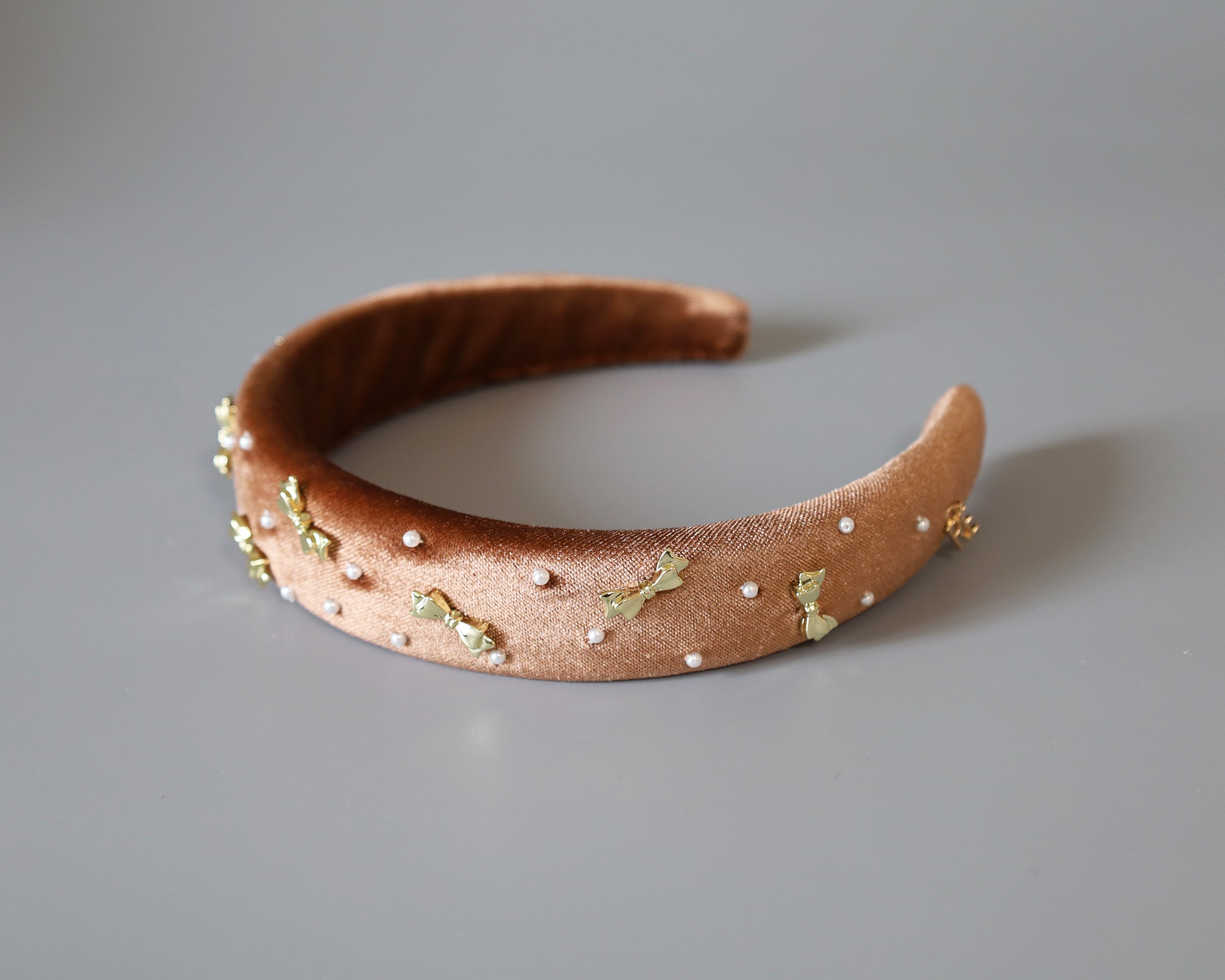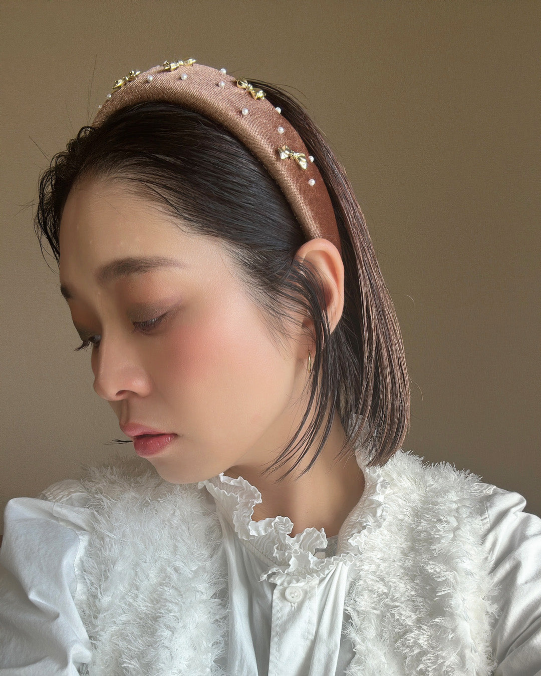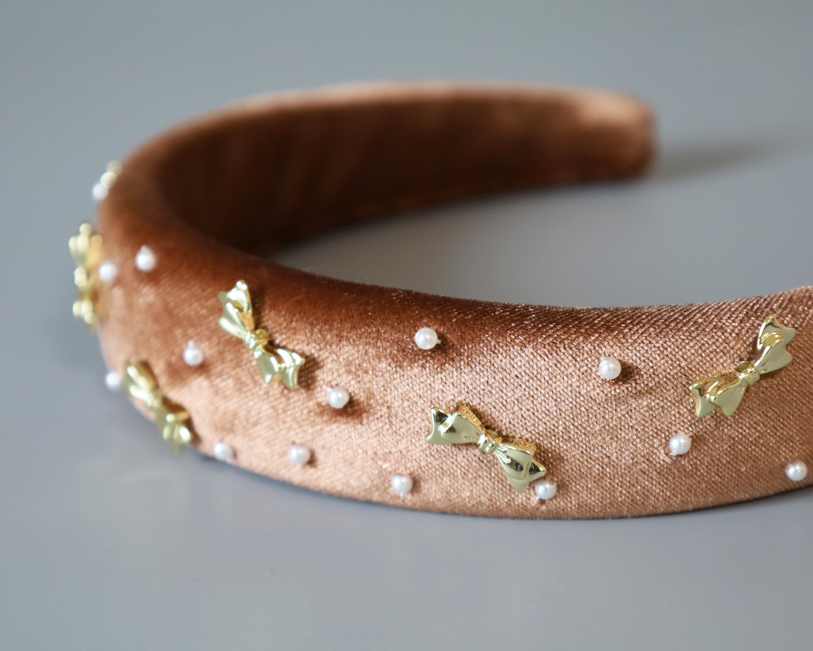 キャラメルやクリームブリュレのようなスイートなブラウンのベロアカチューシャ。