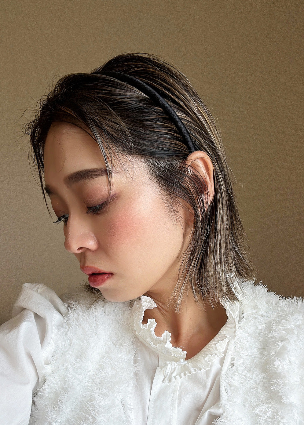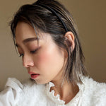 スキニーなボディでヘアスタイリングにアクセントを加える極細カチューシャ。