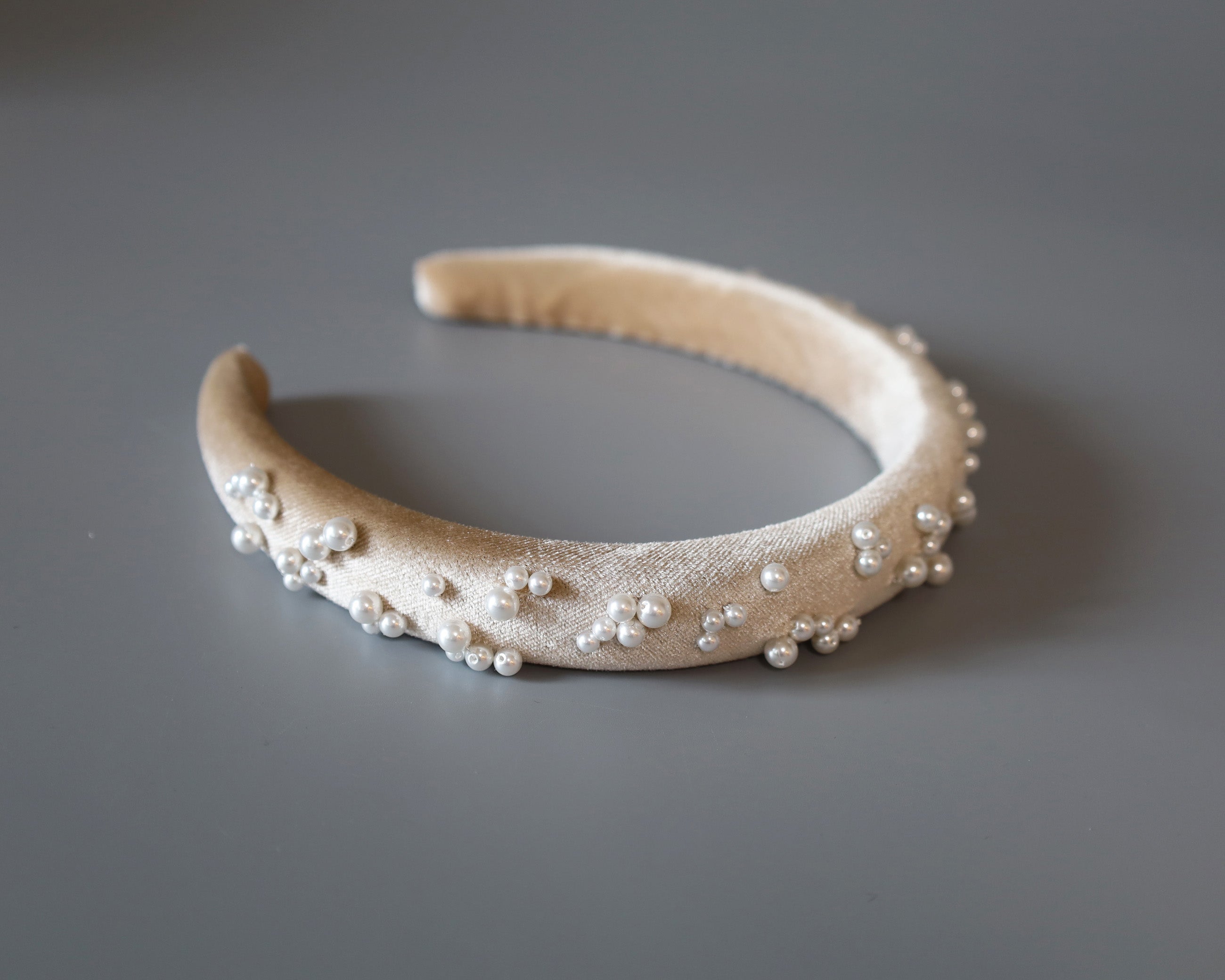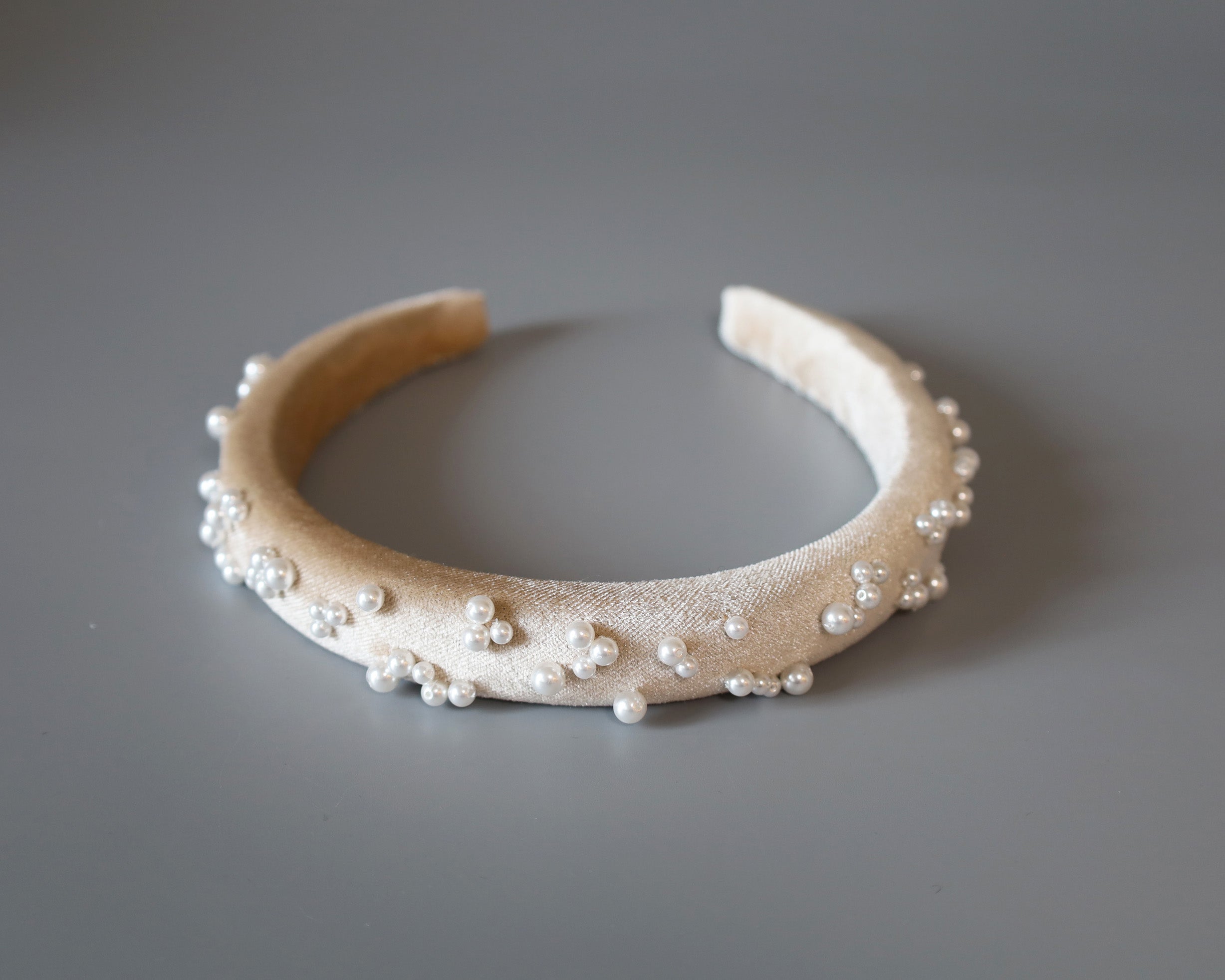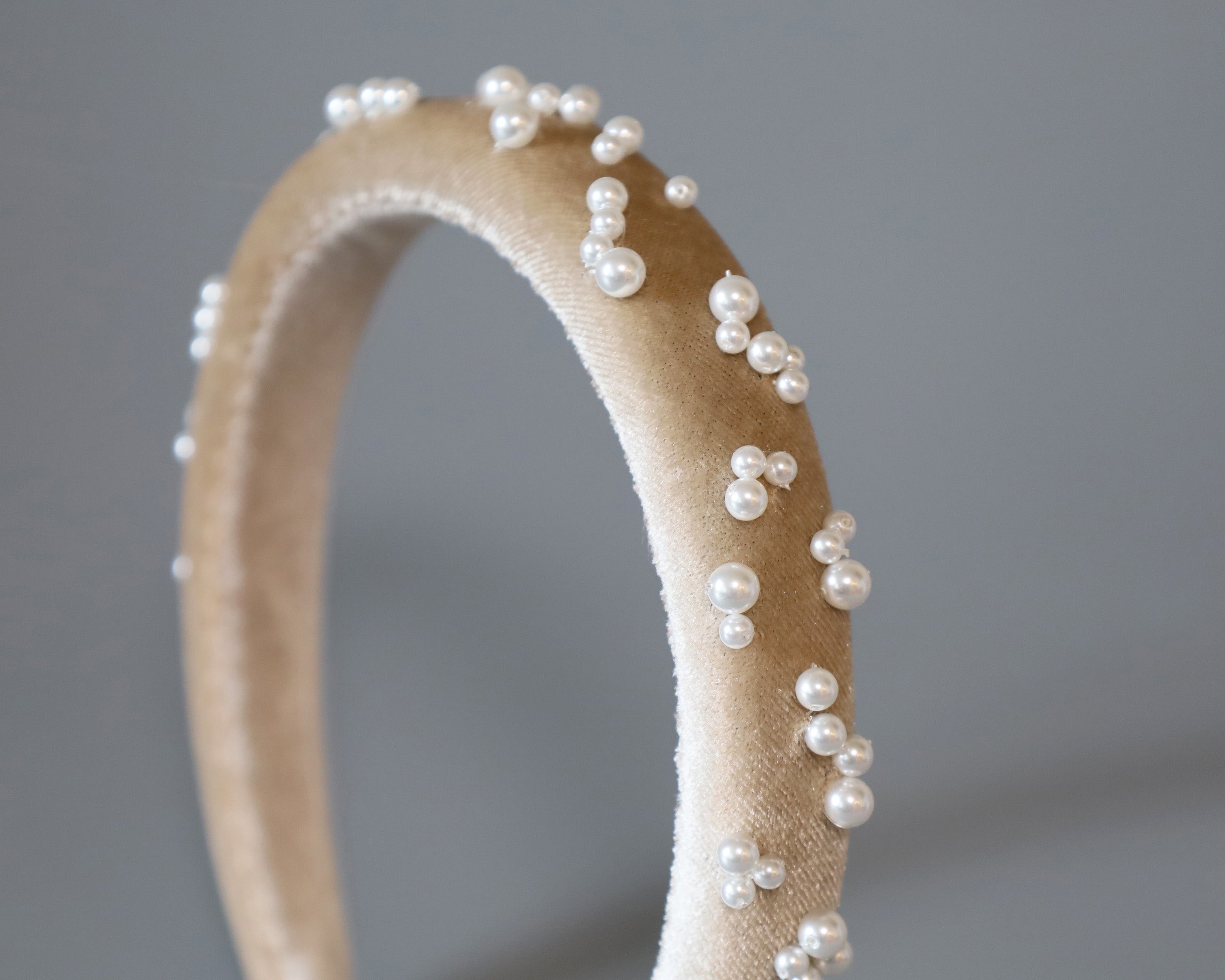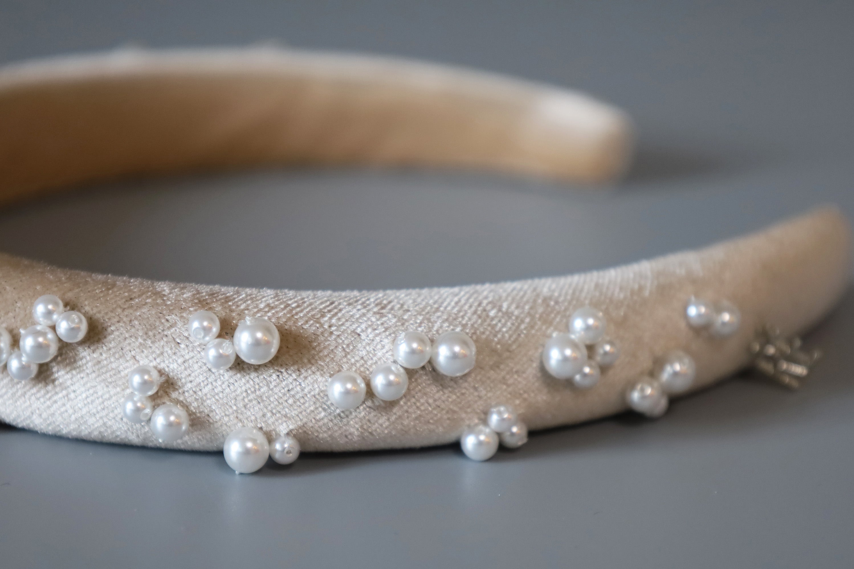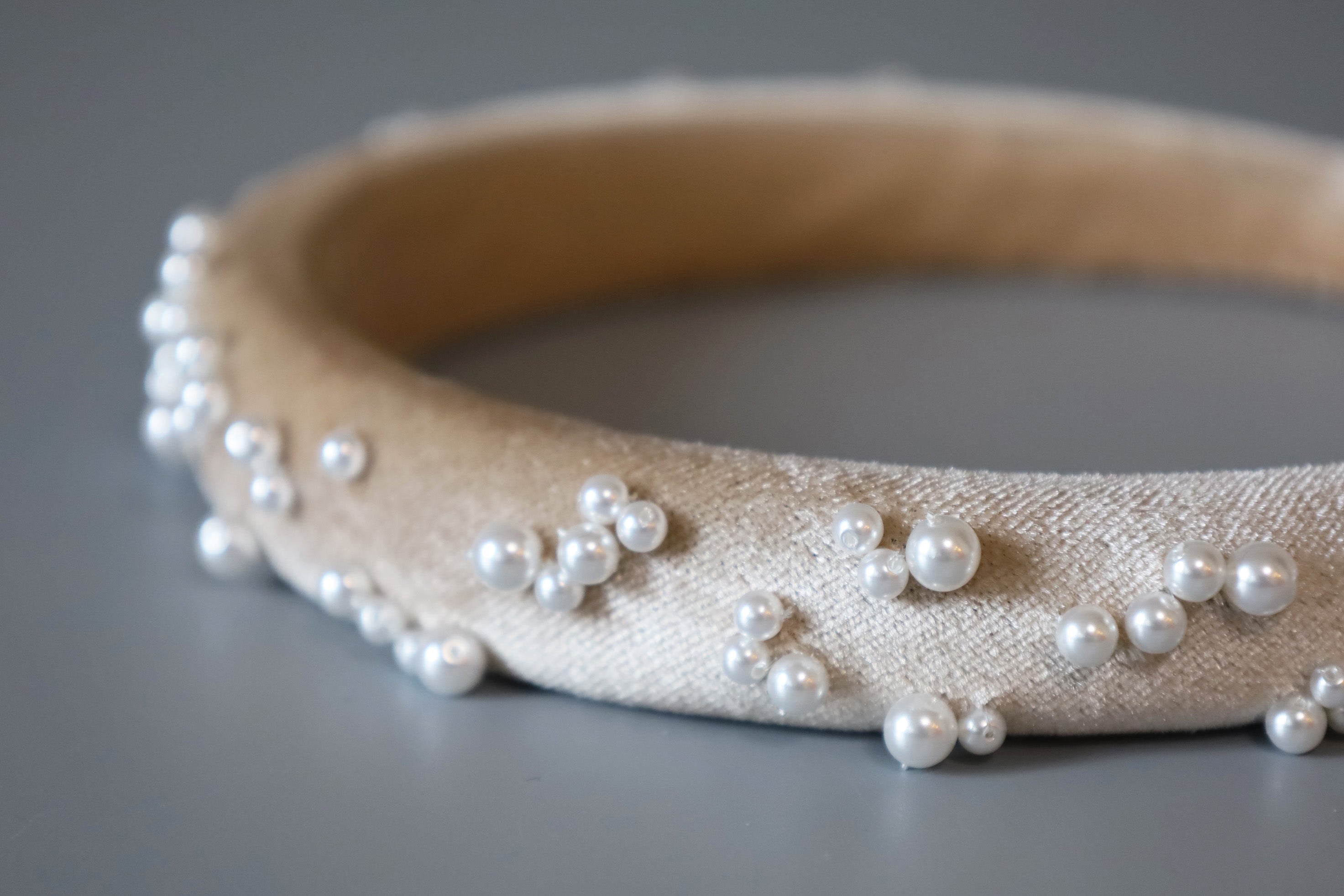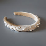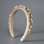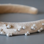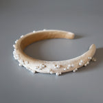 Slender Headband Velour Beige Pearl