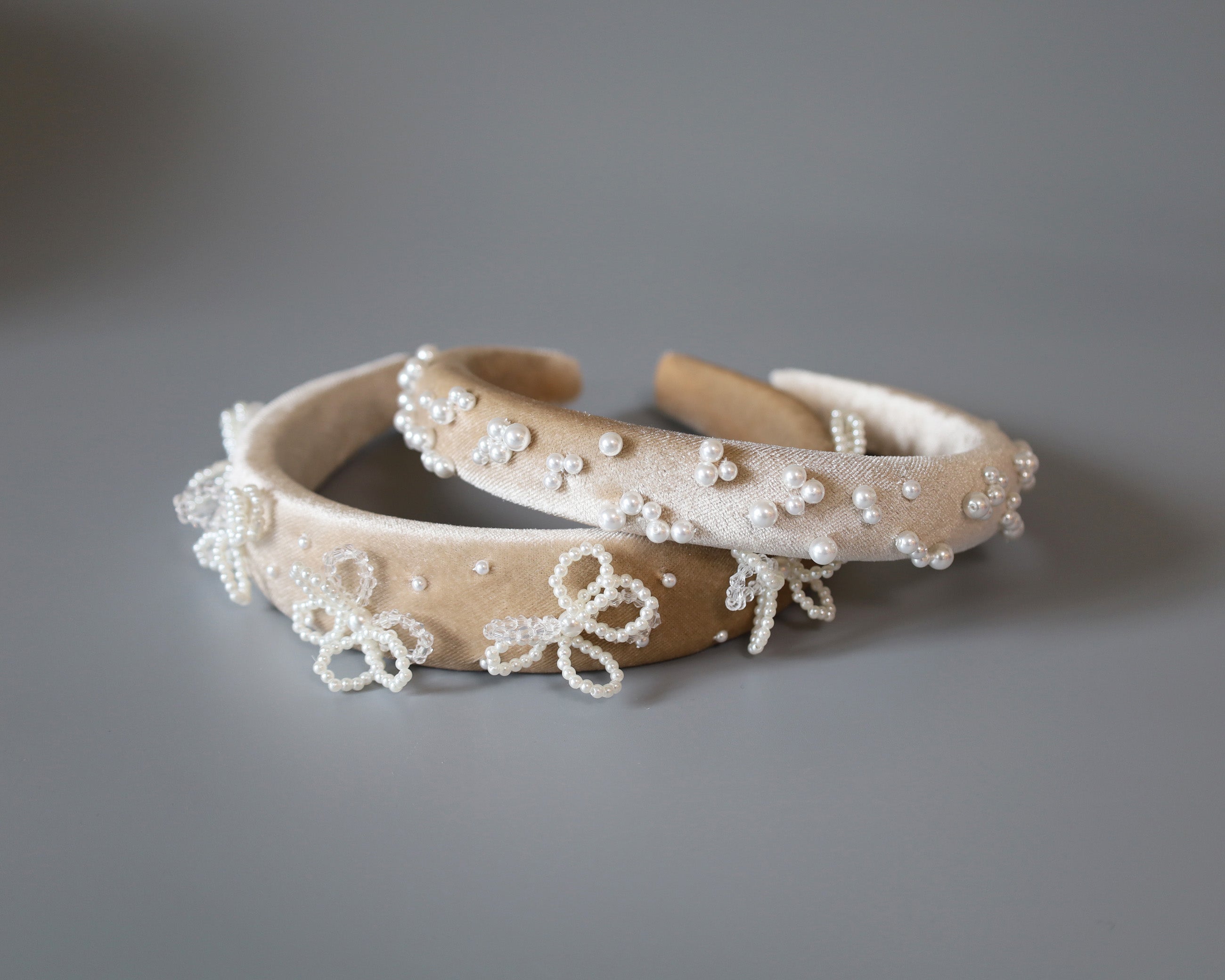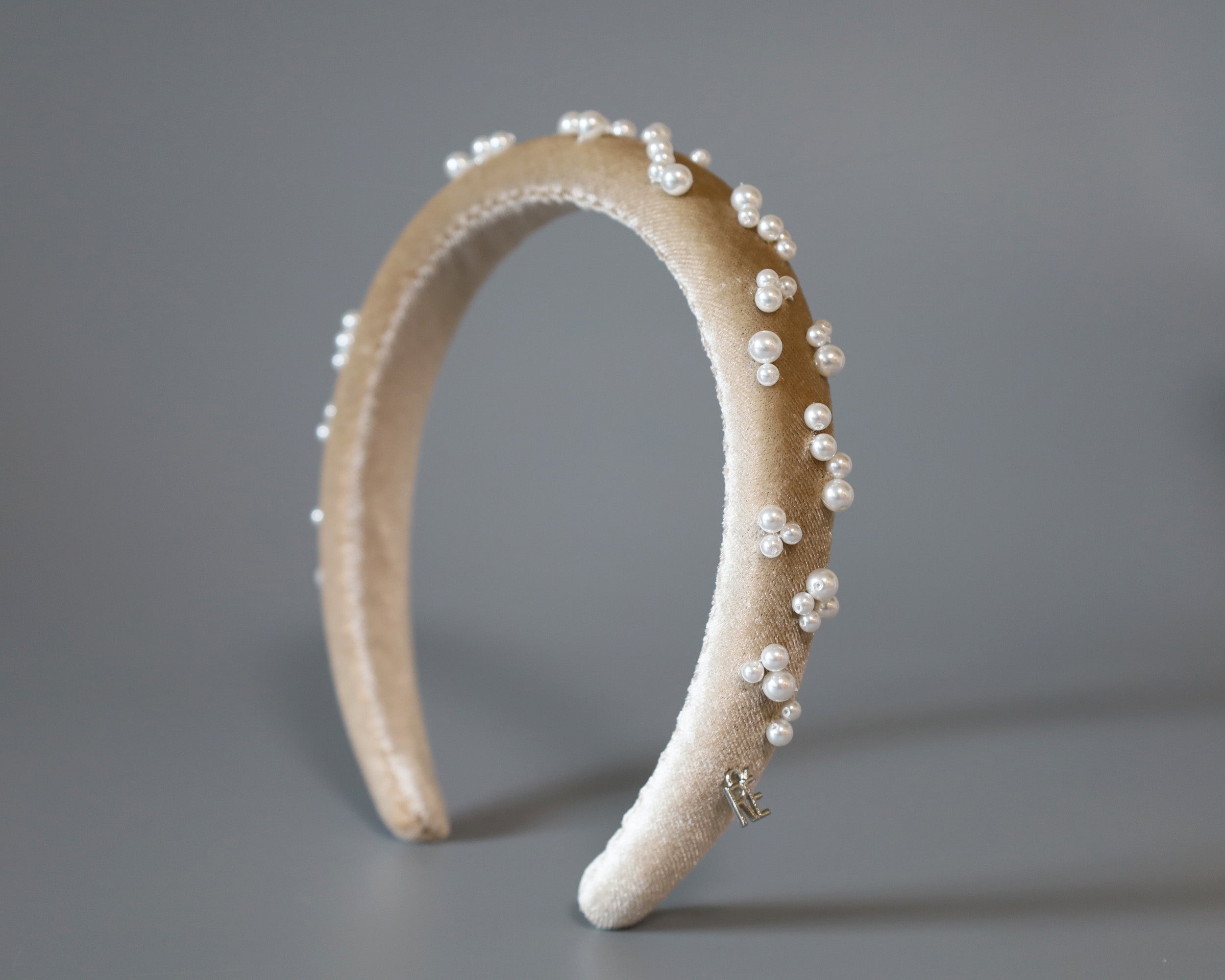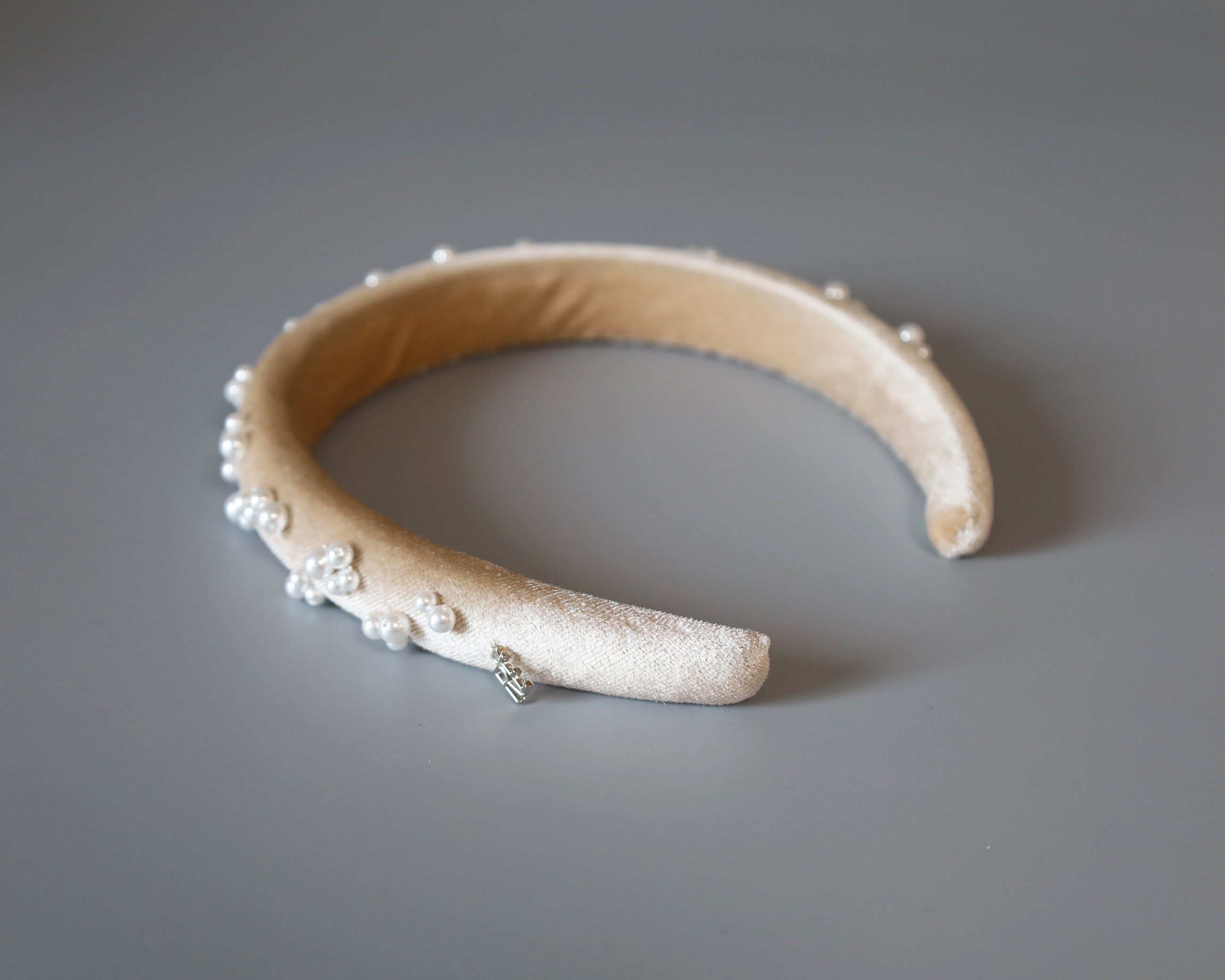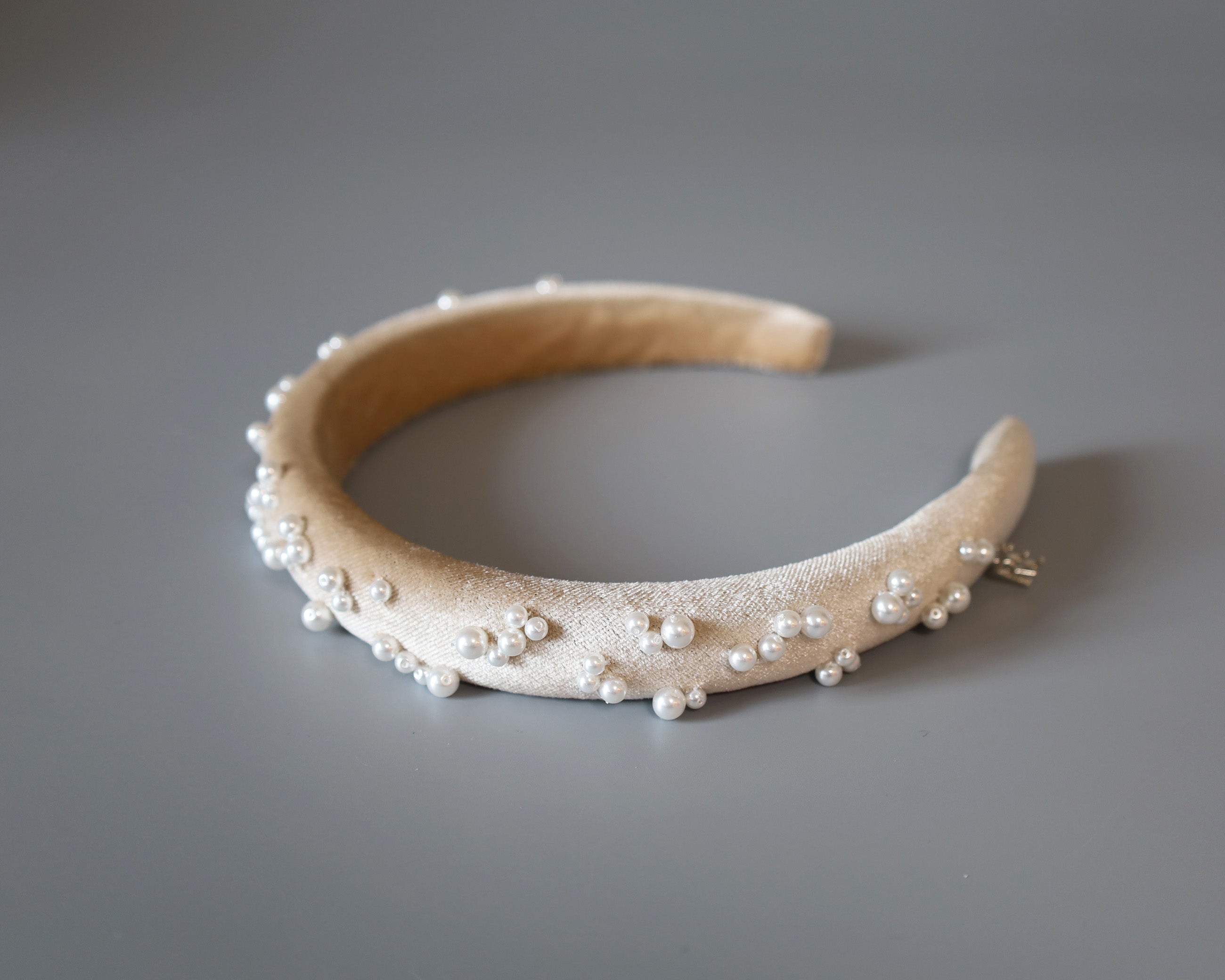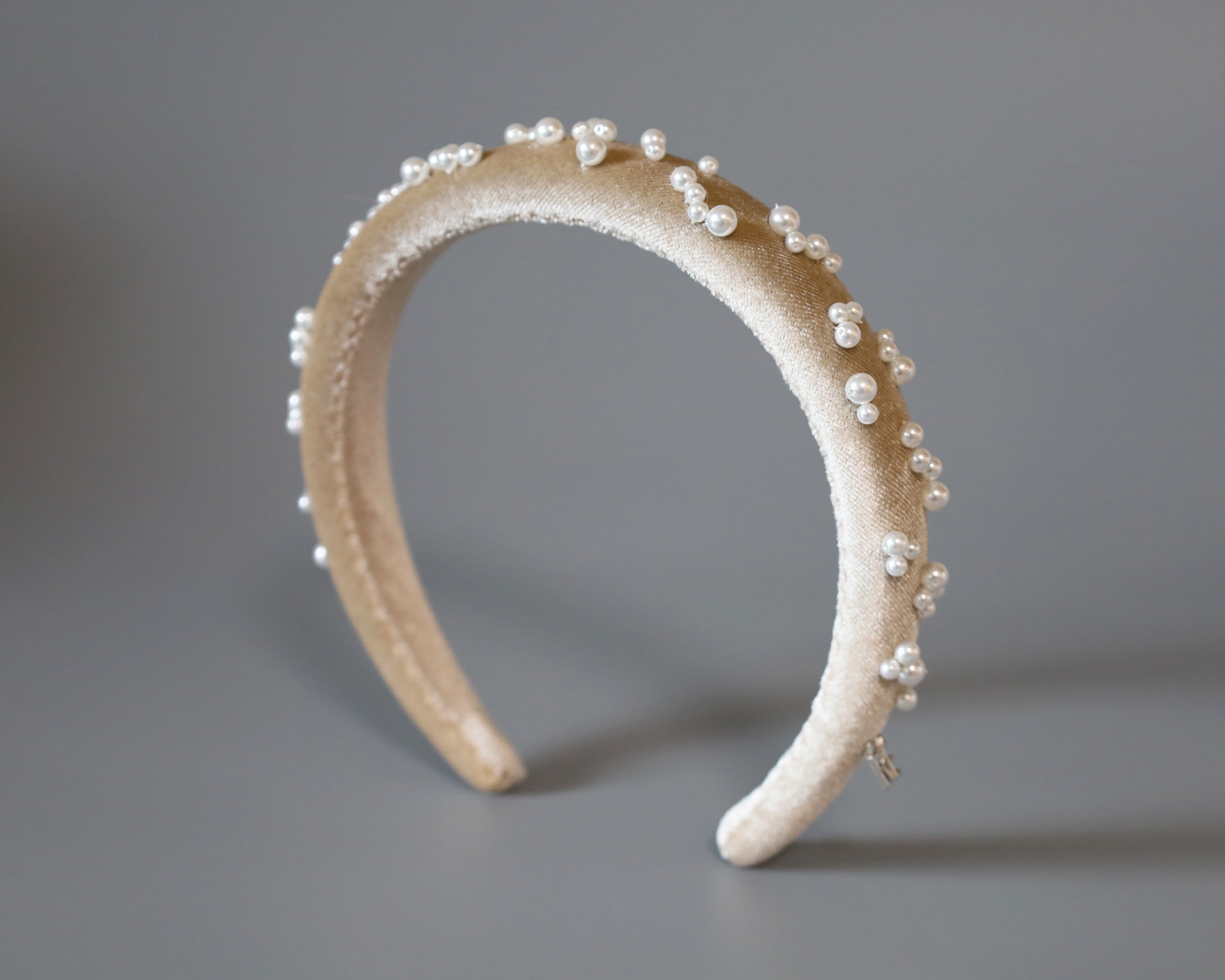 Slender Headband Velour Beige Pearl