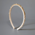 小粒のパールとクリアビジューの繊細な装飾を散りばめたエレガントなデザイン。