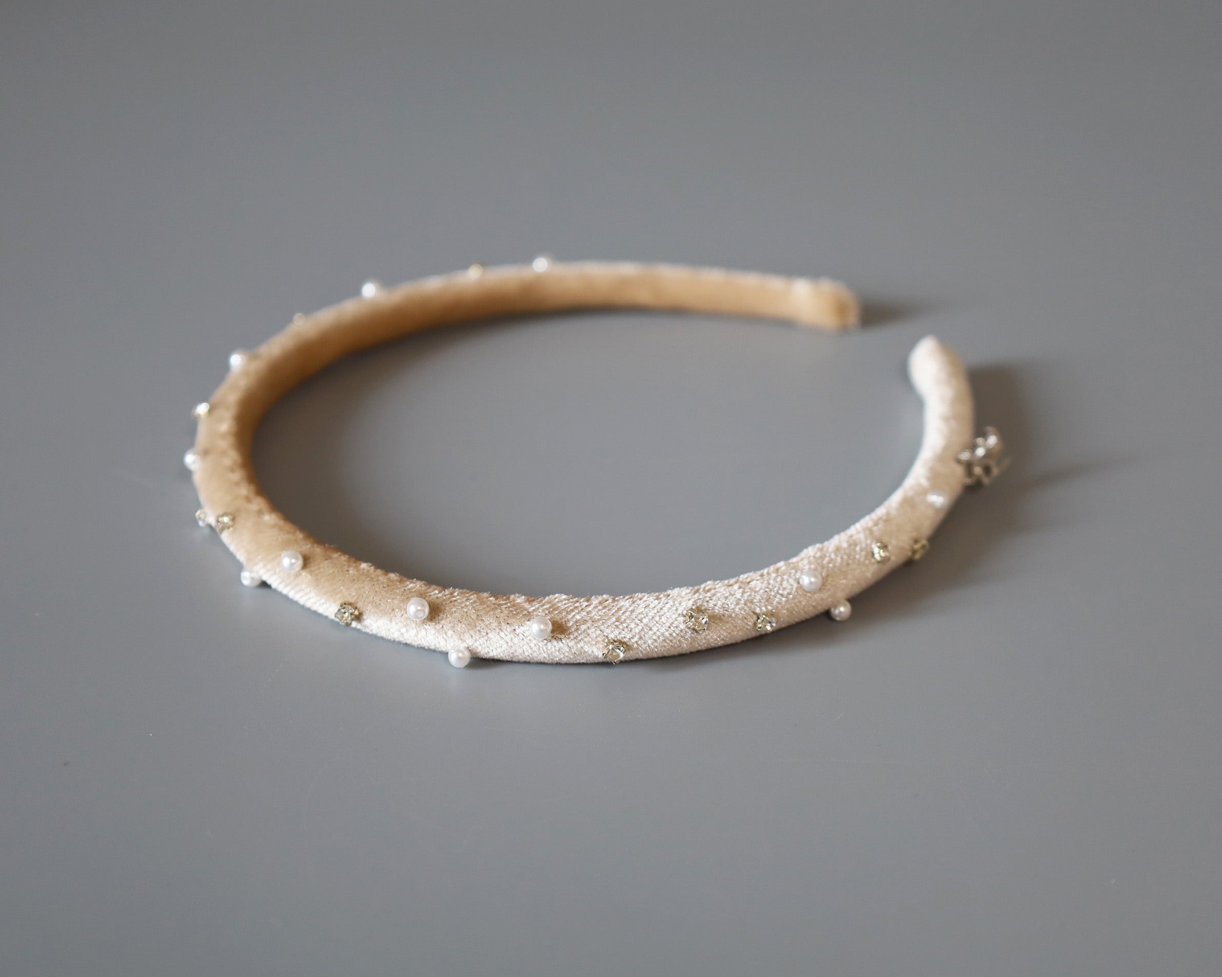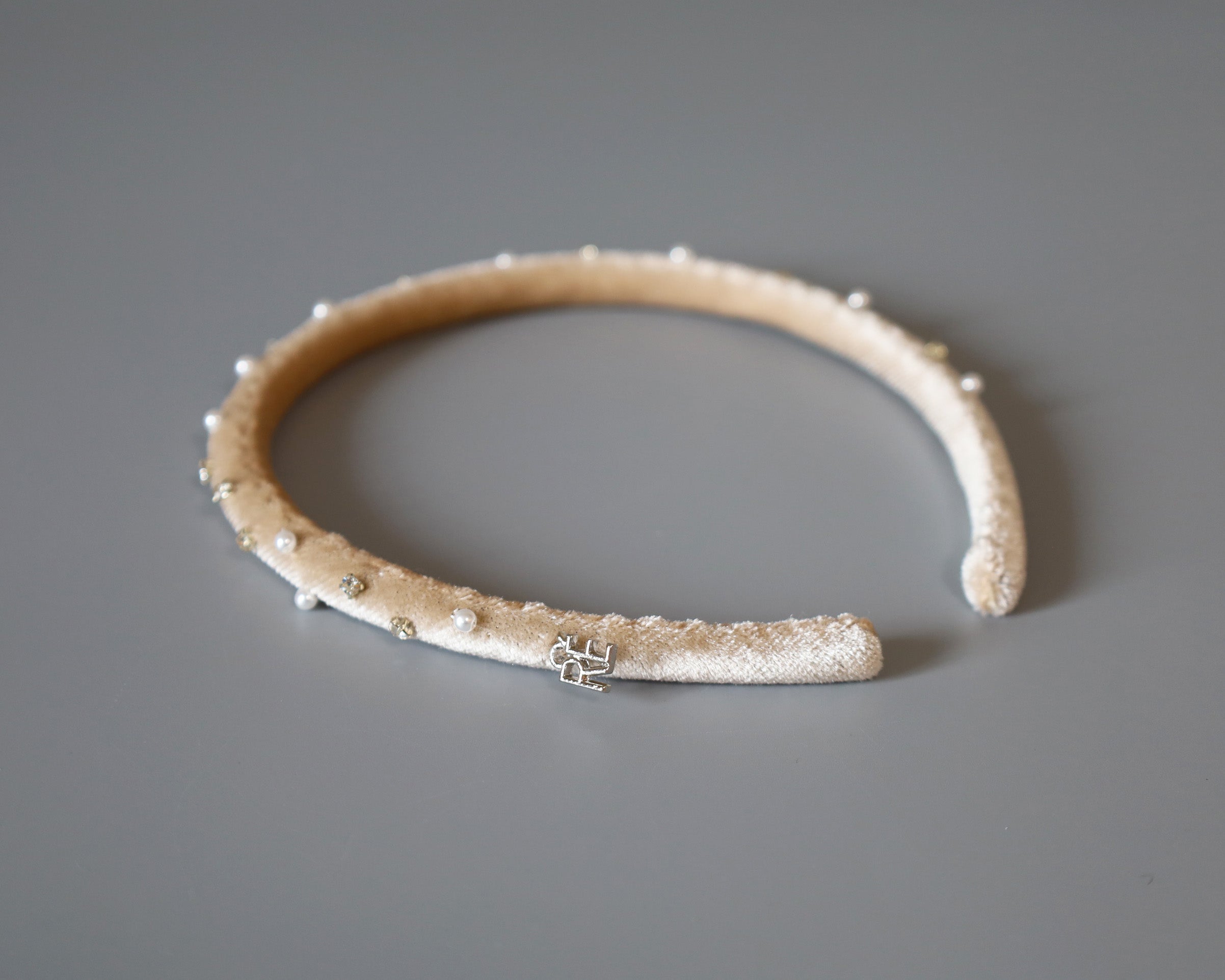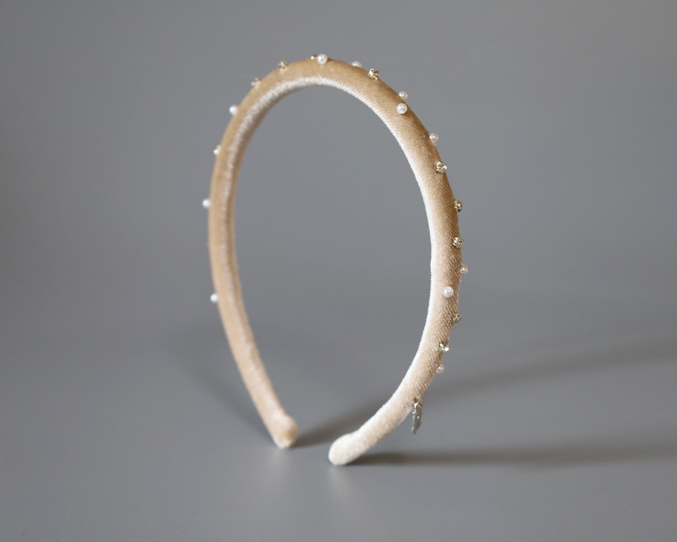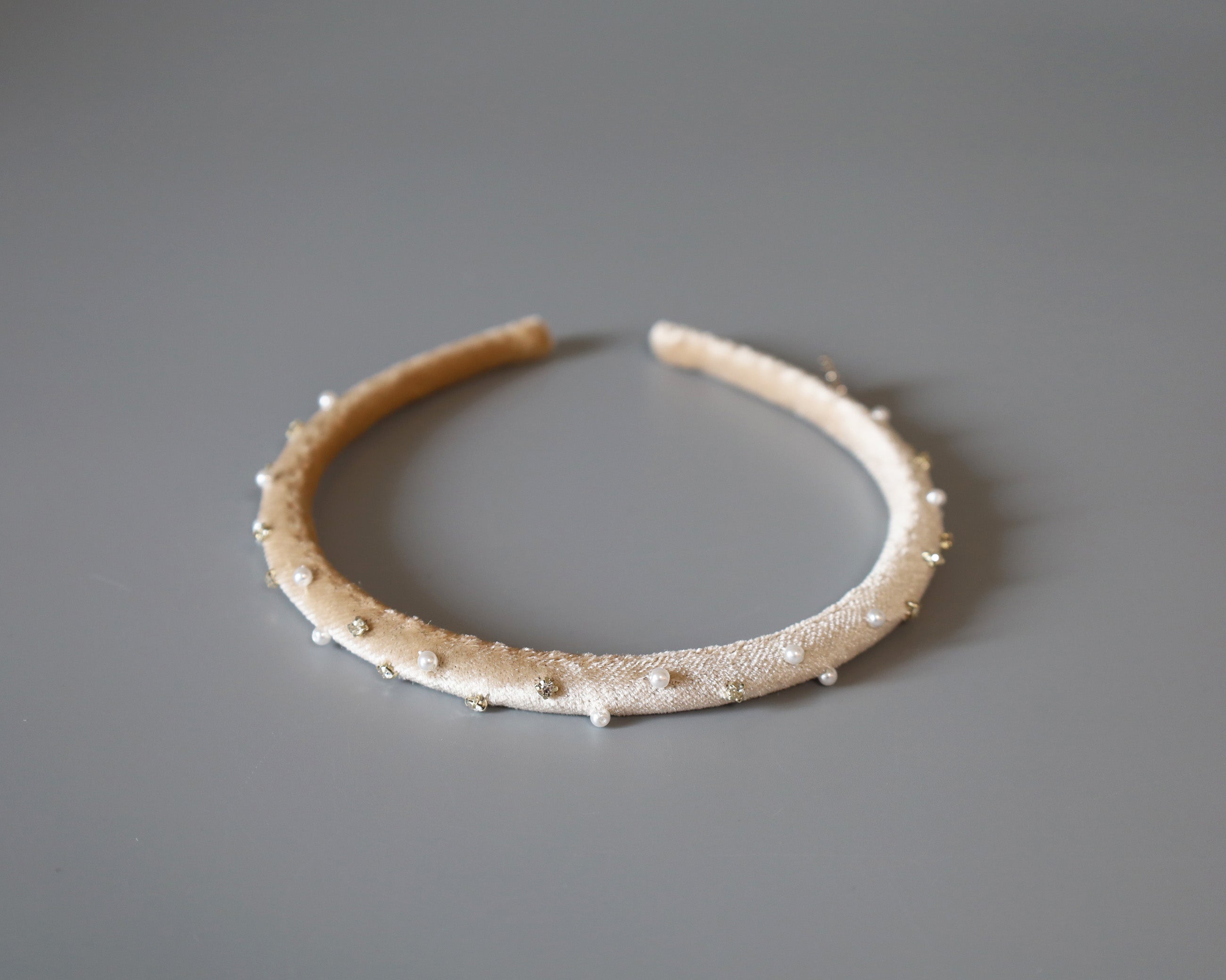 肌なじみのいいベージュカラーのベロアカチューシャ。