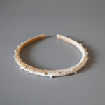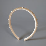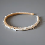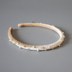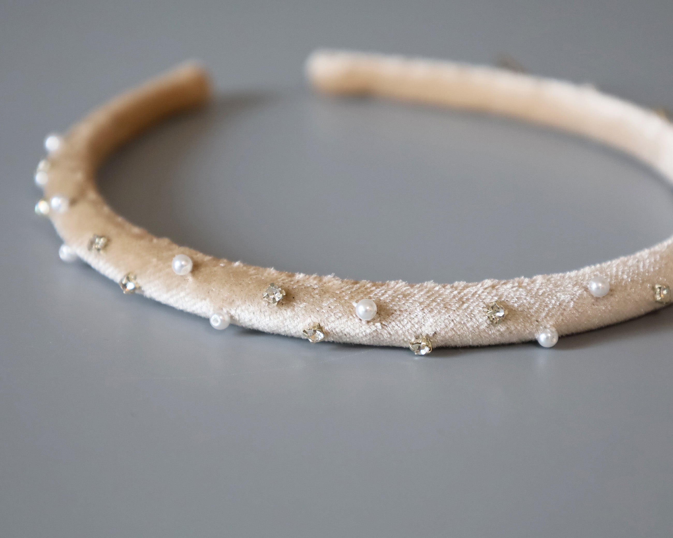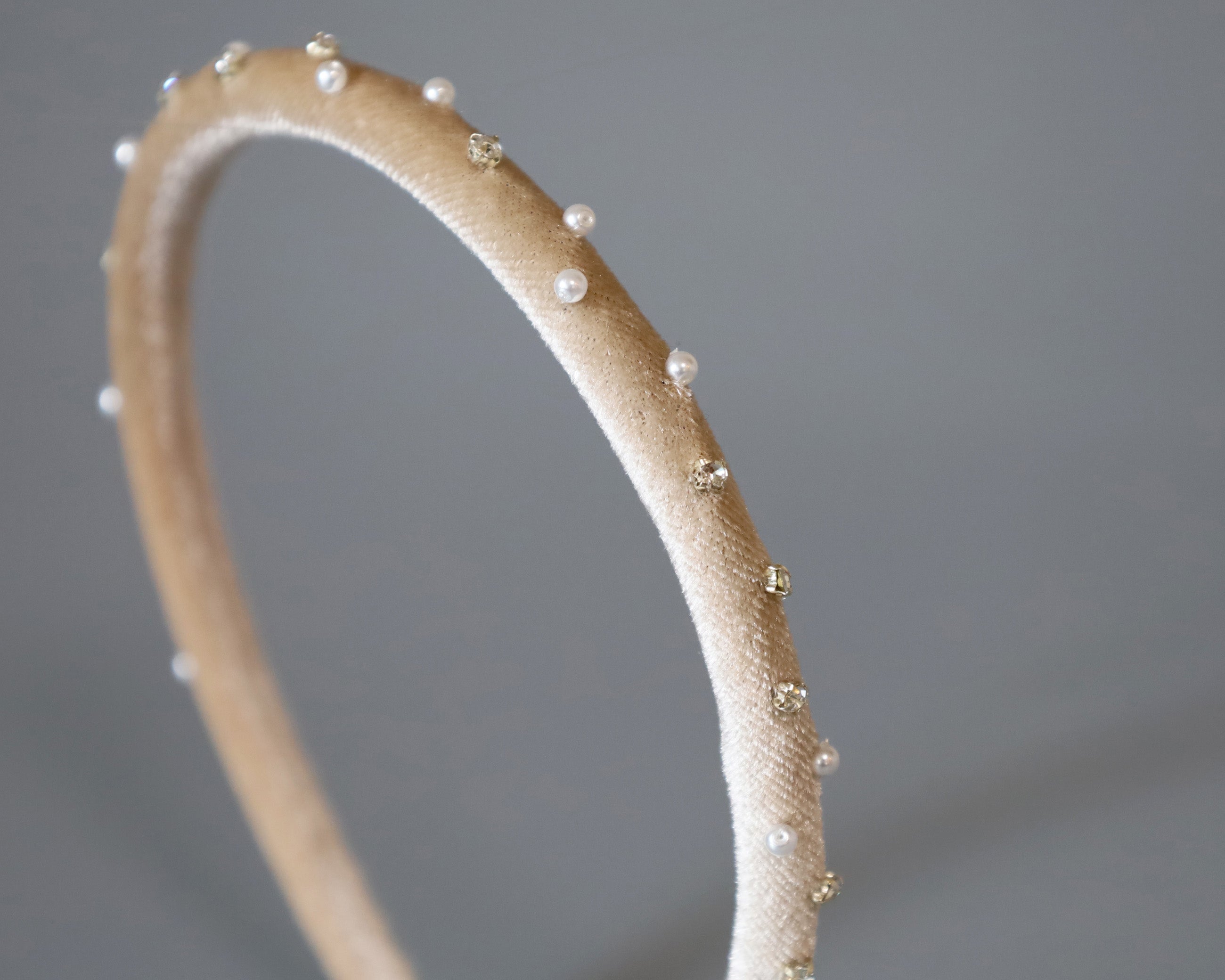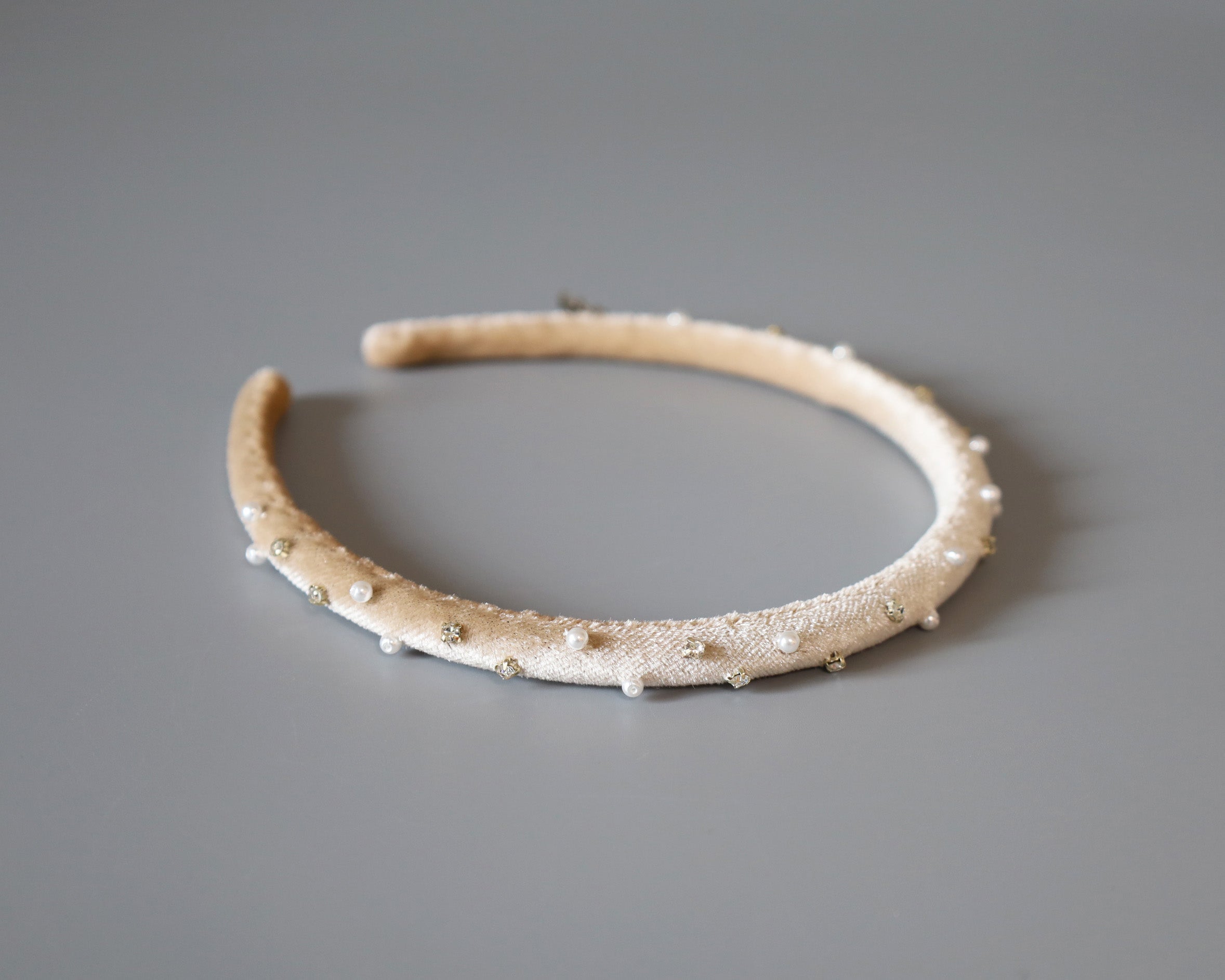 肌なじみのいいベージュカラーのベロアカチューシャ。