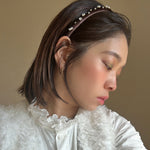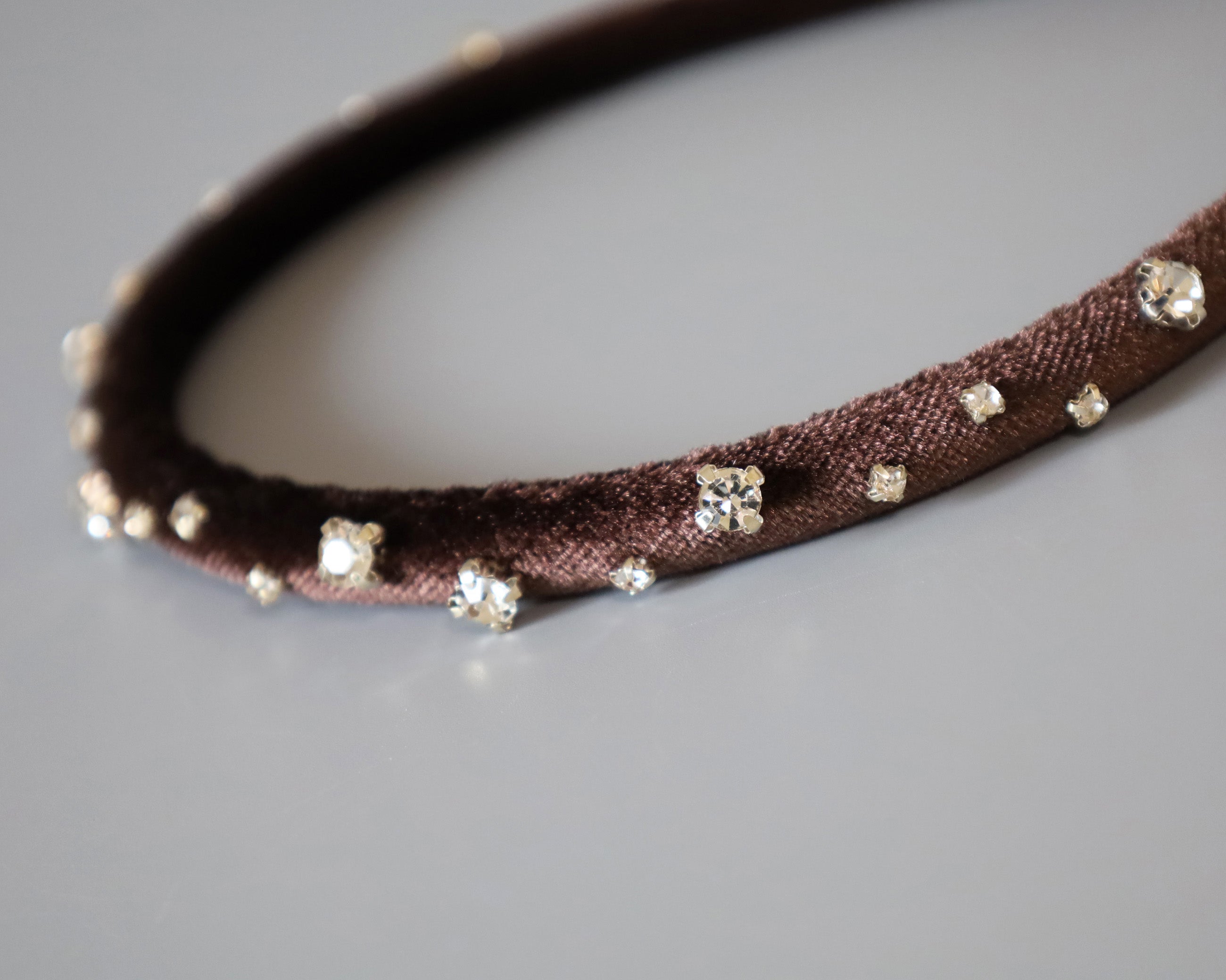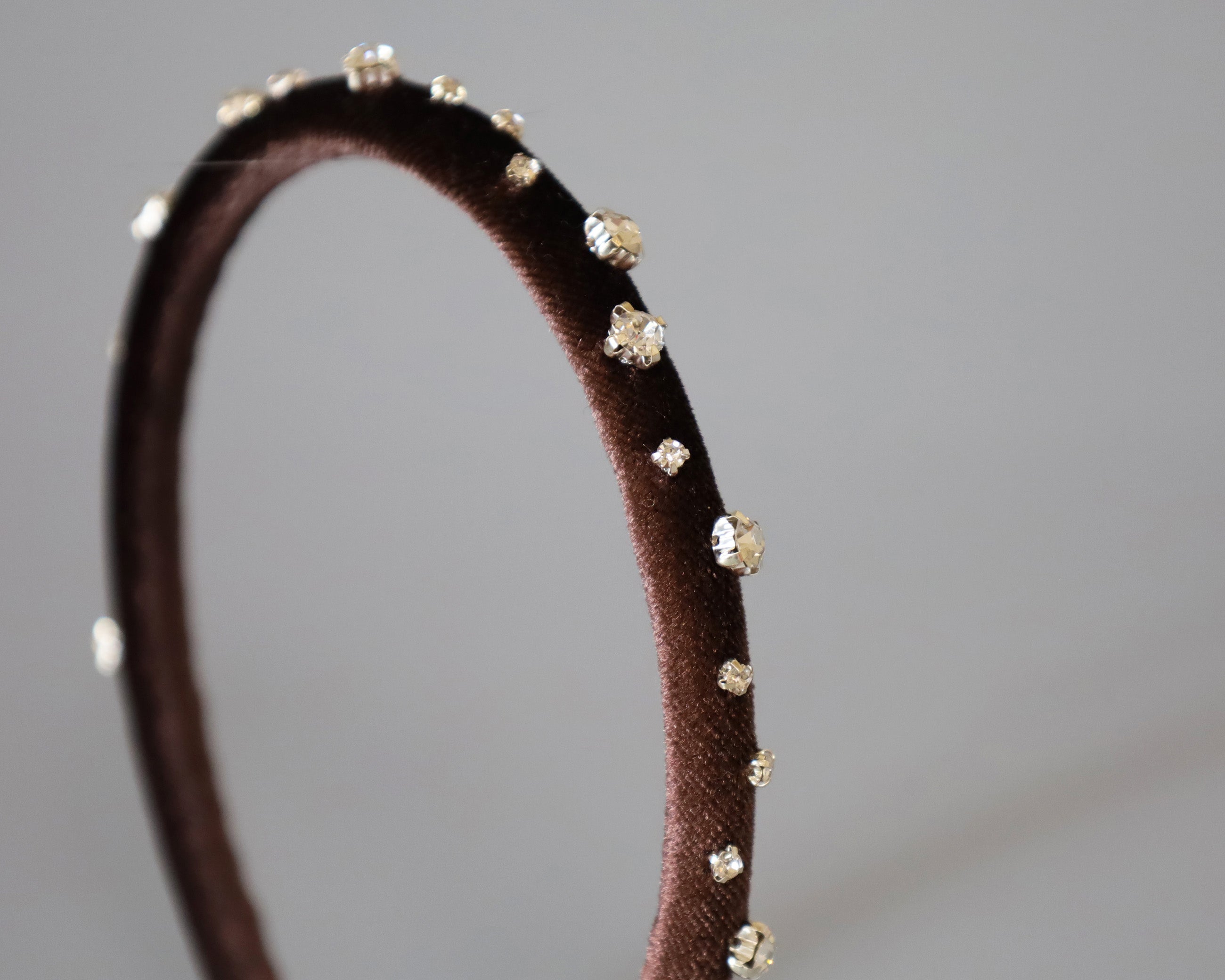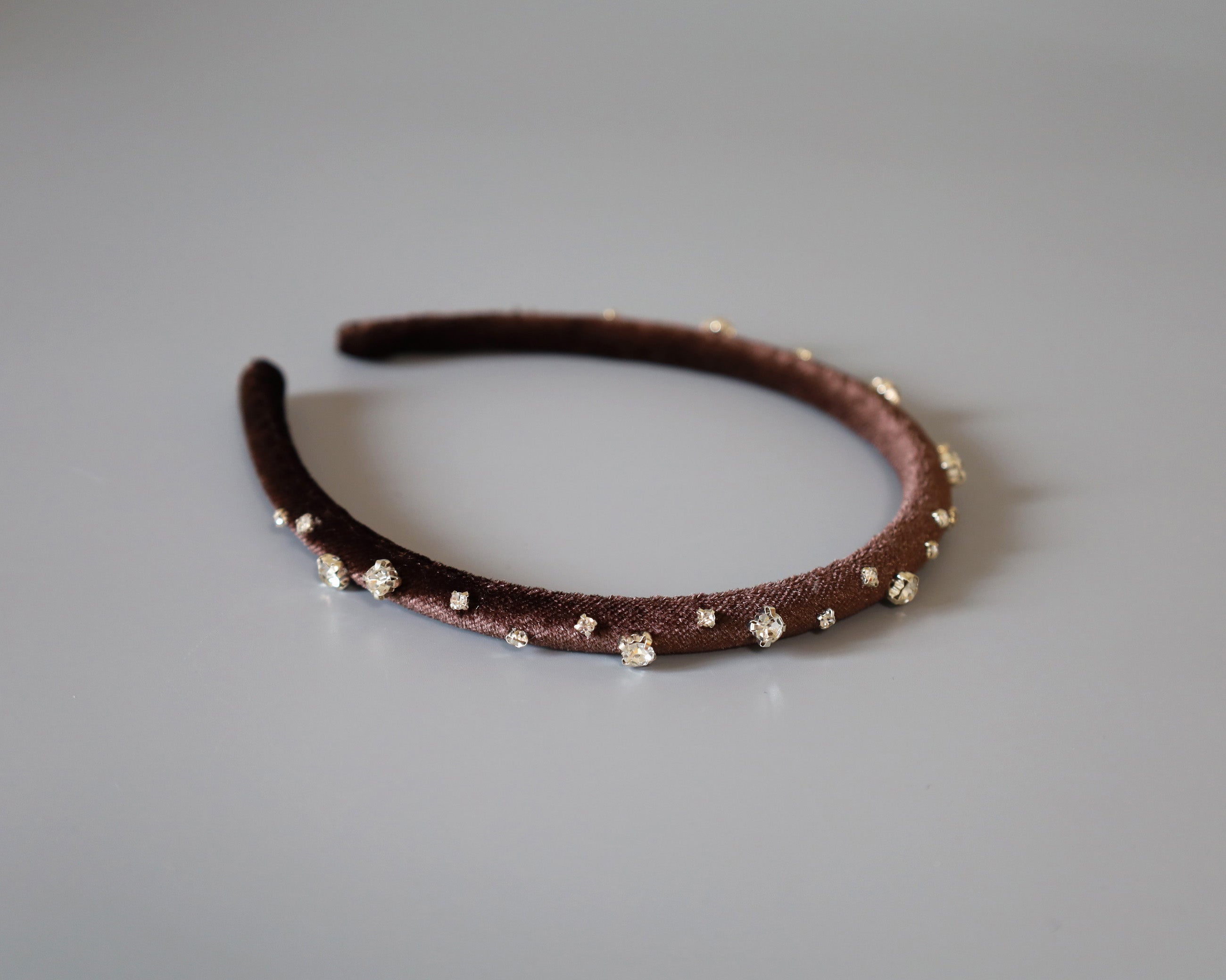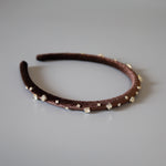 濃密なチョコレートブラウンが奥行きある表情を演出するベロアカチューシャ。