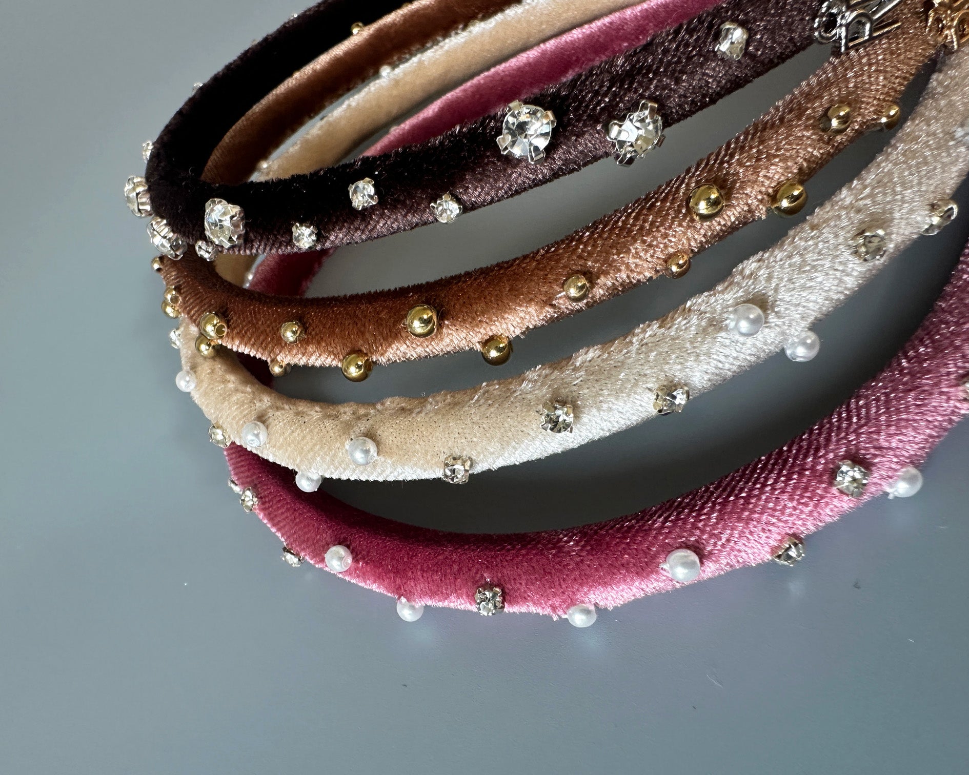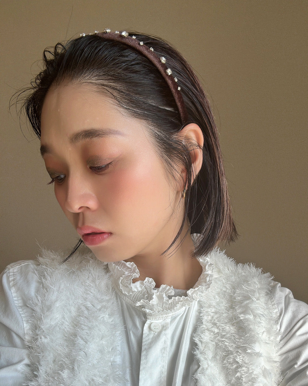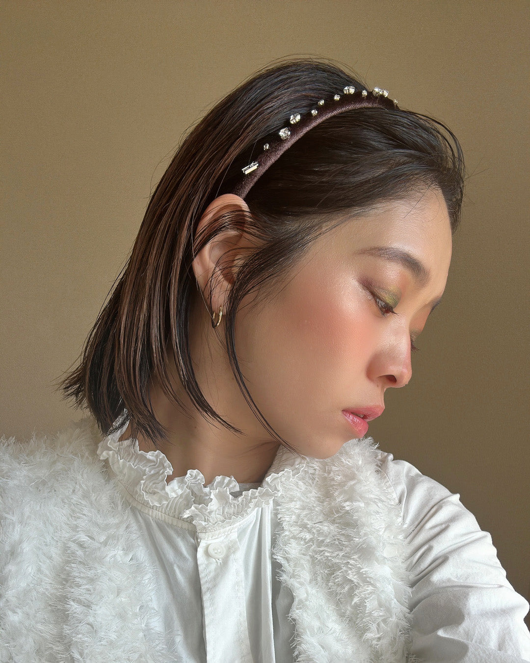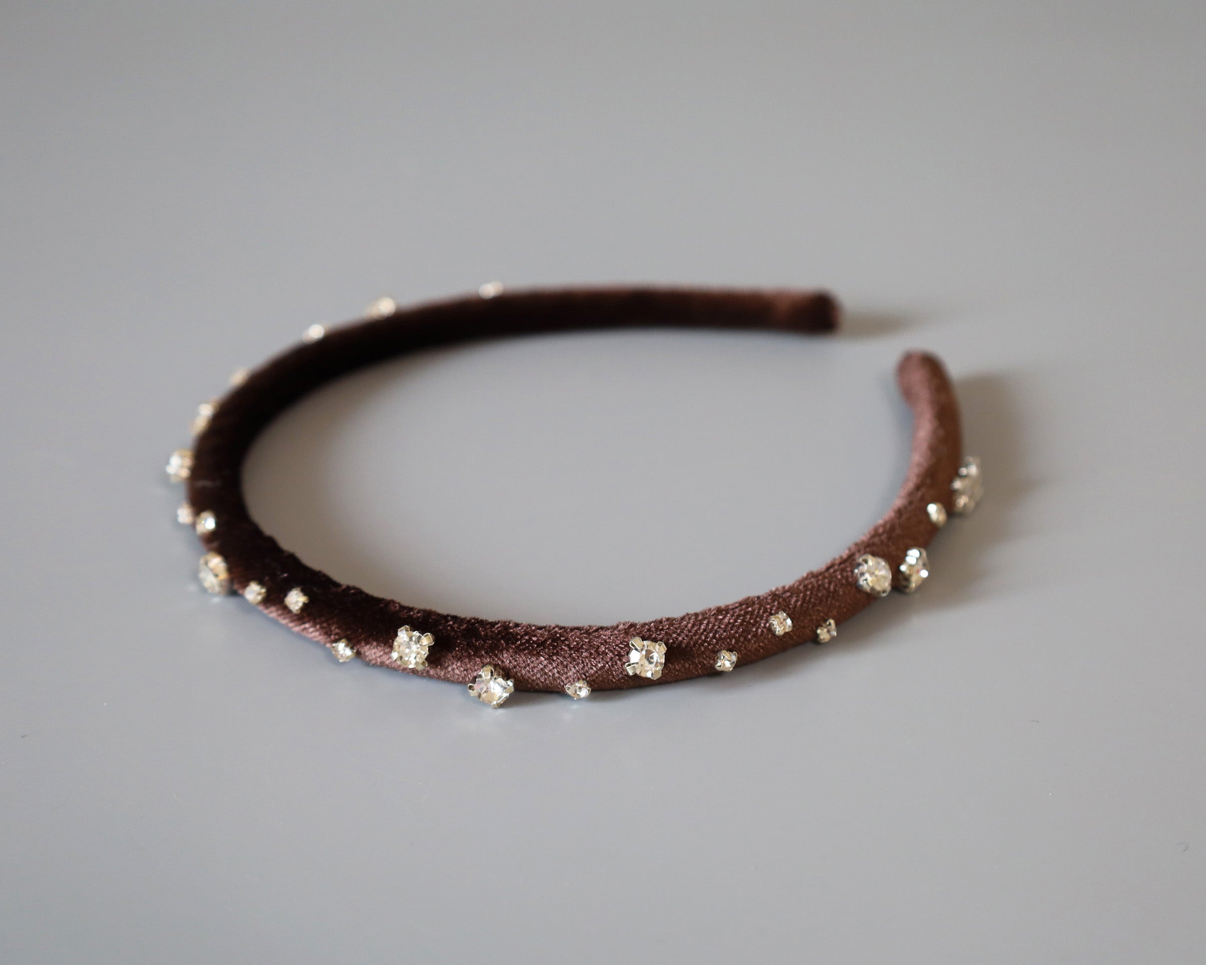 濃密なチョコレートブラウンが奥行きある表情を演出するベロアカチューシャ。