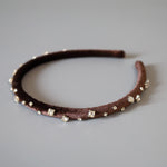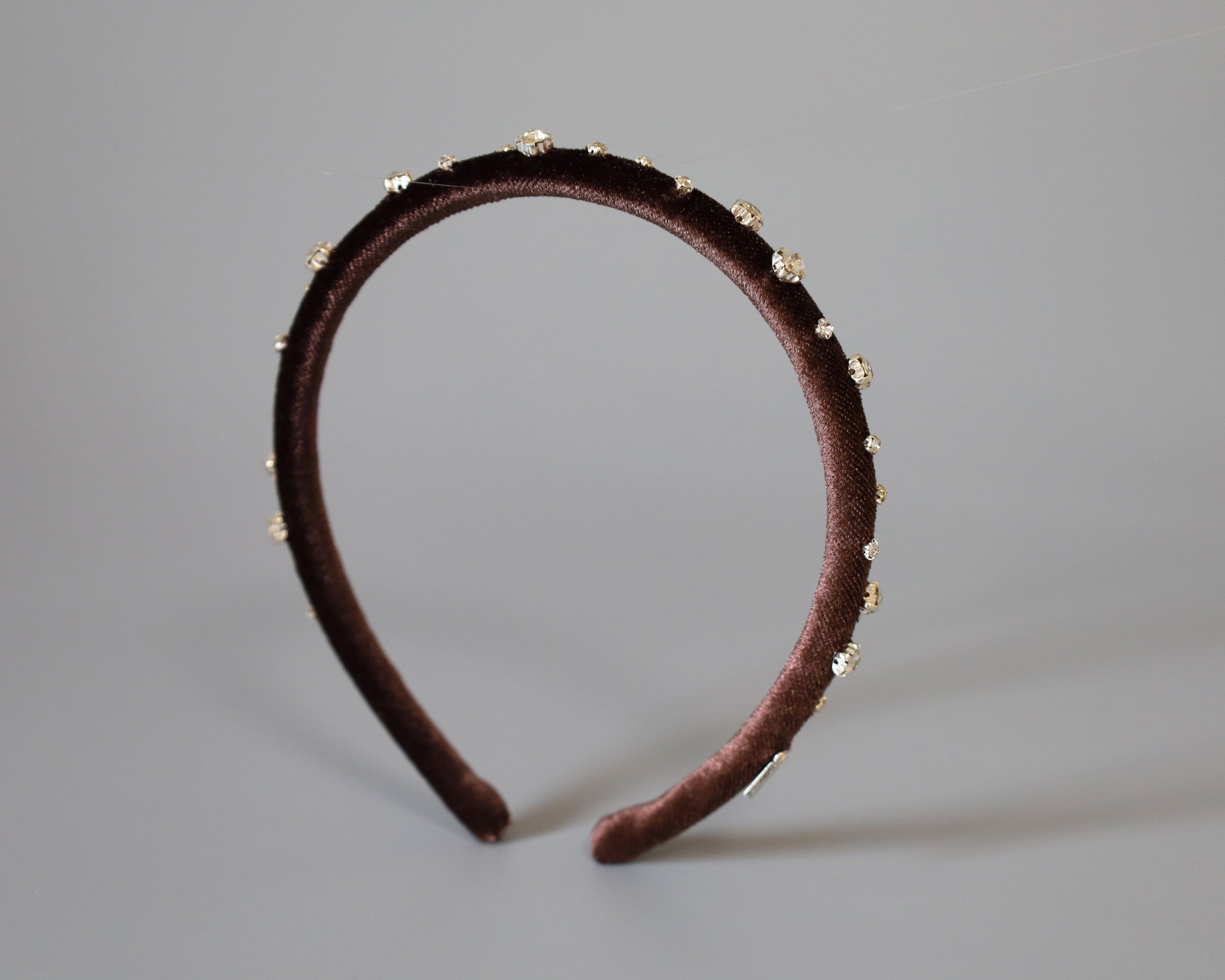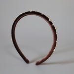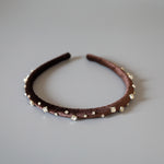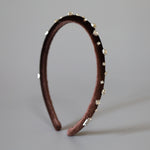 Tight Headband Velour Dark Brown Silver Studs