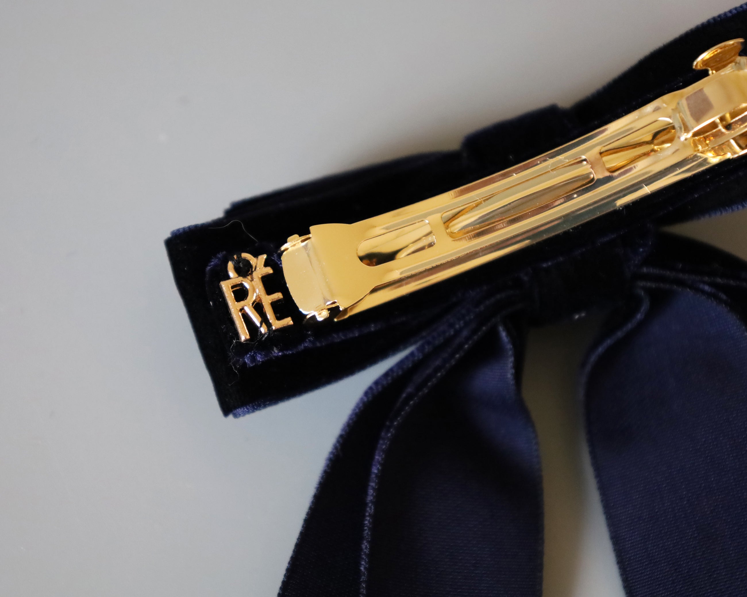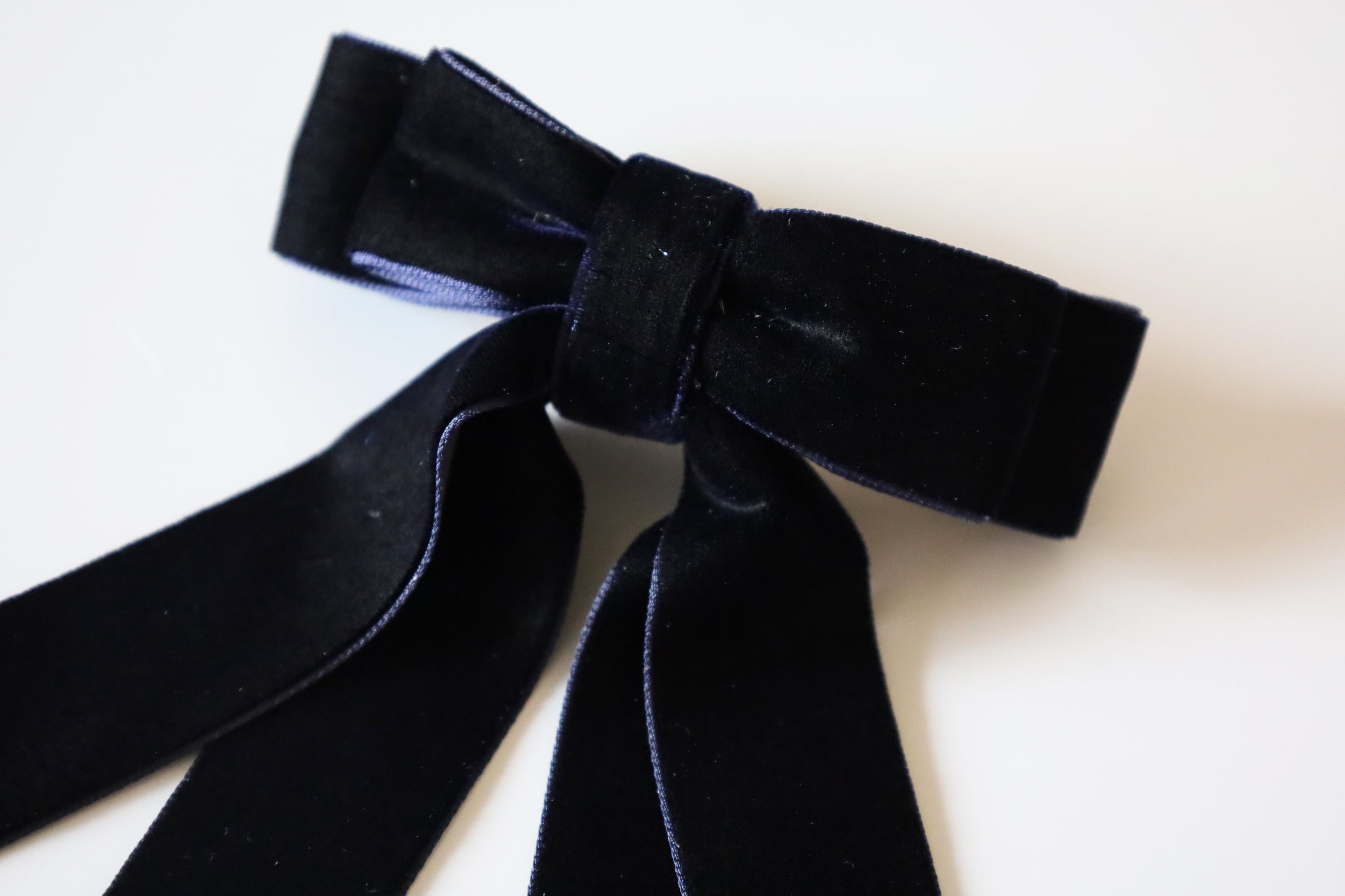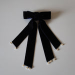 Velvet Big Ribbon Navy Barrette