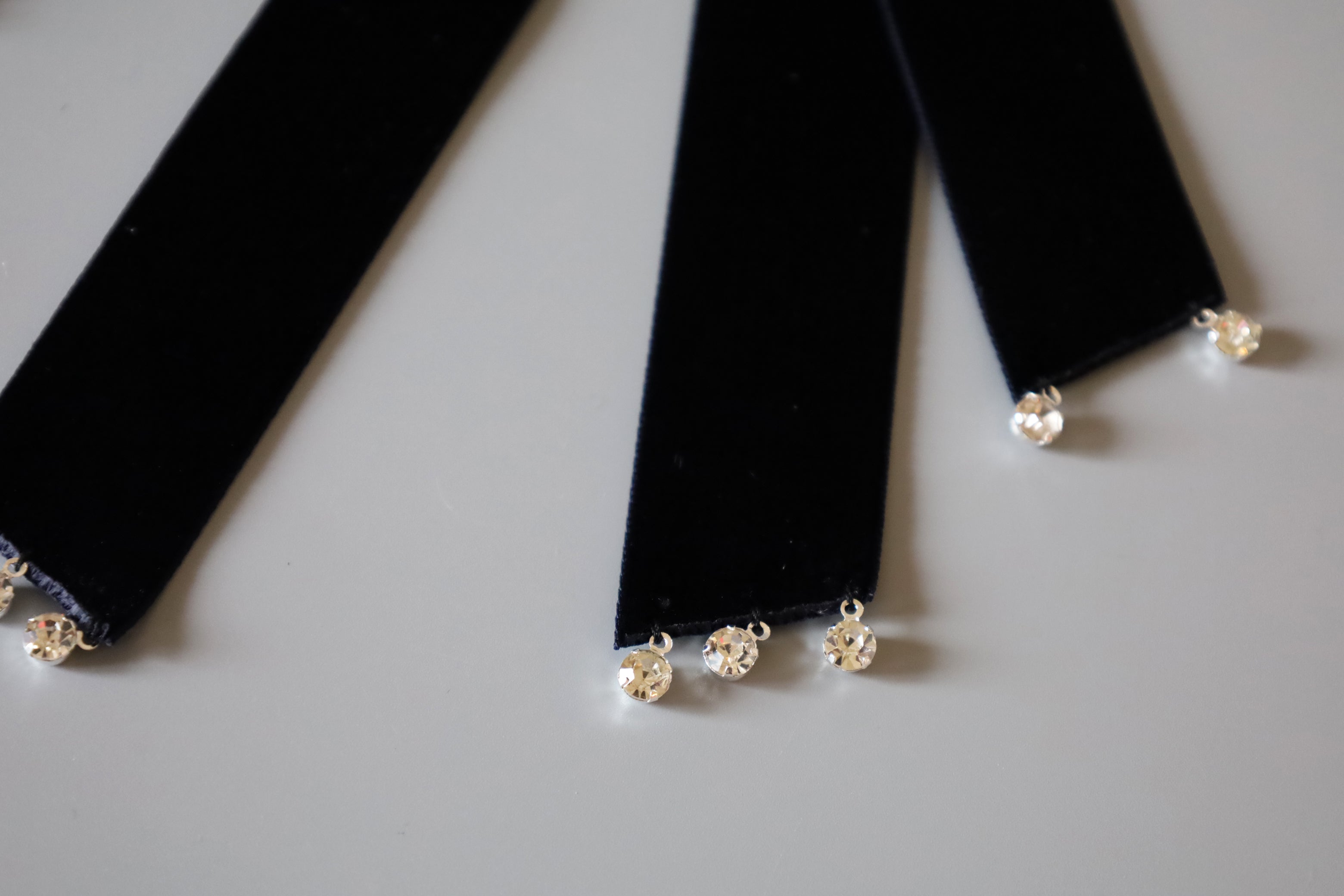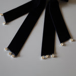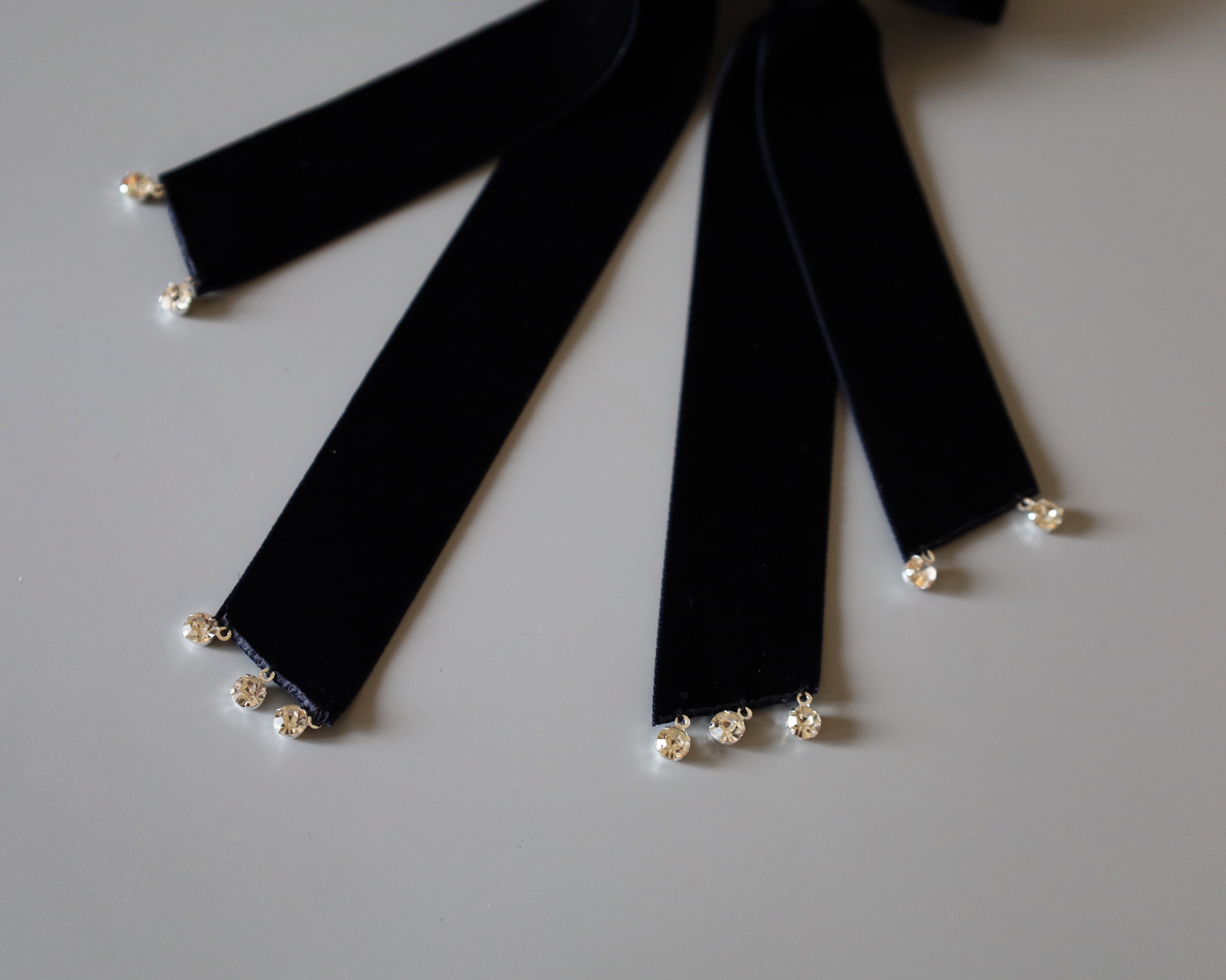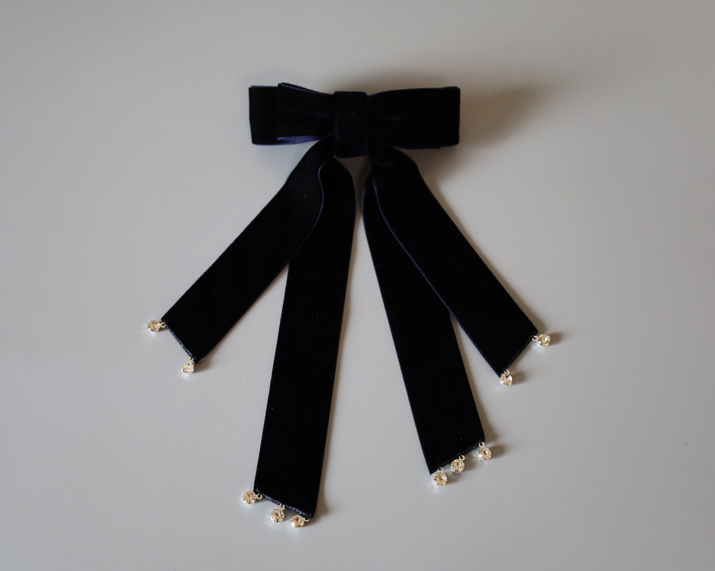 揺れるリボンの先には小粒ビジューをデコレーションしラグジュアリー感をプラス。