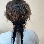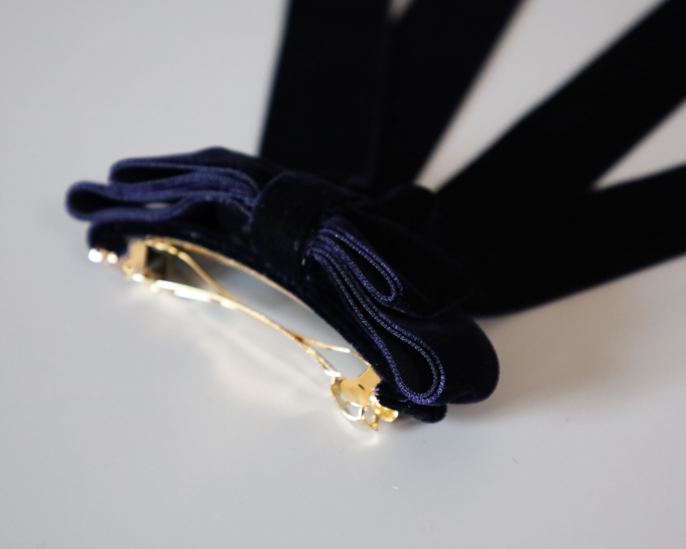 深みのあるネイビーがエレガントなリボンバレッタ。