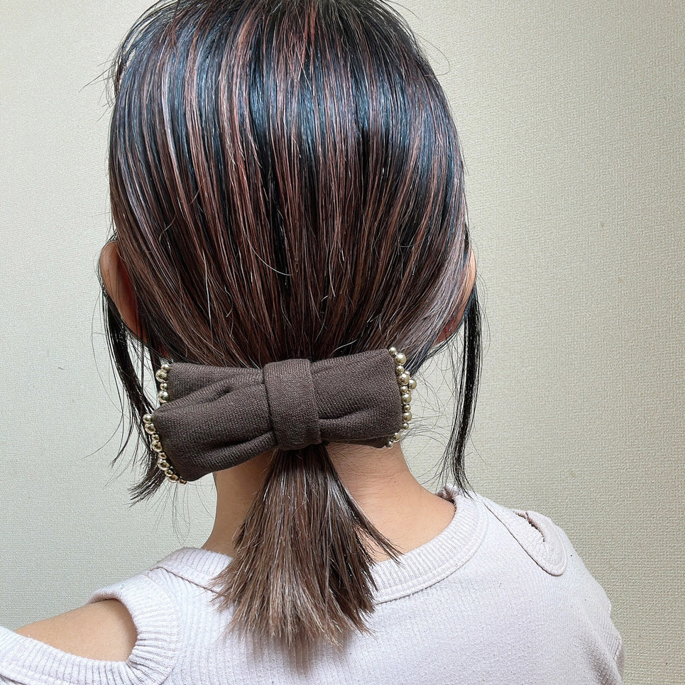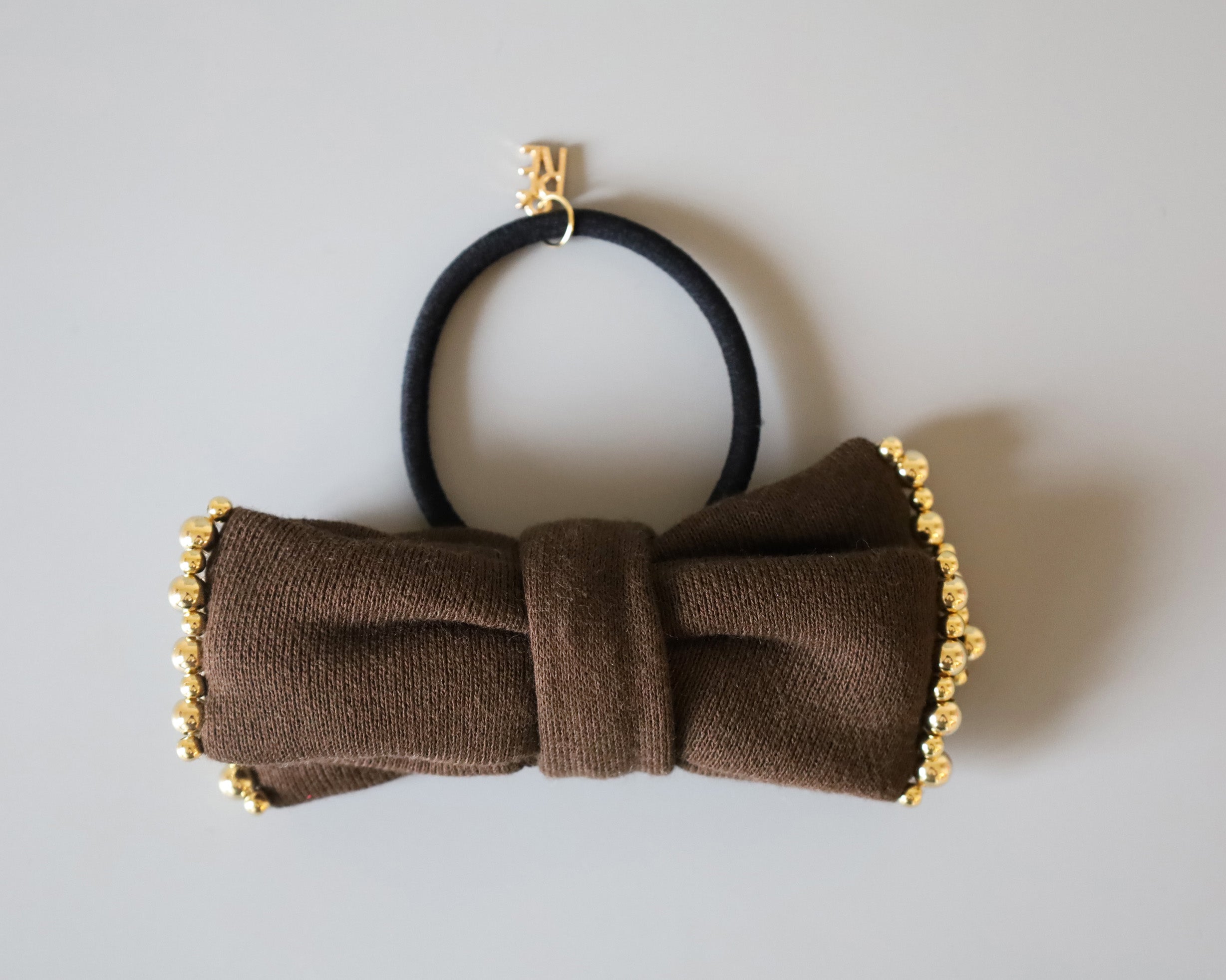Brown Tweed Ribbon Hair Pony