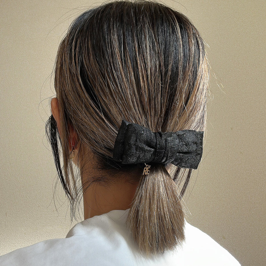 Black Ribbon Jacquard Hair Pony