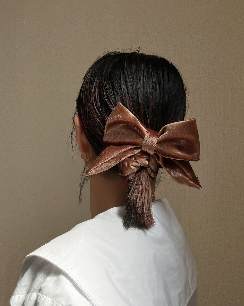Big Ribbon Brown Velour Scrunchie