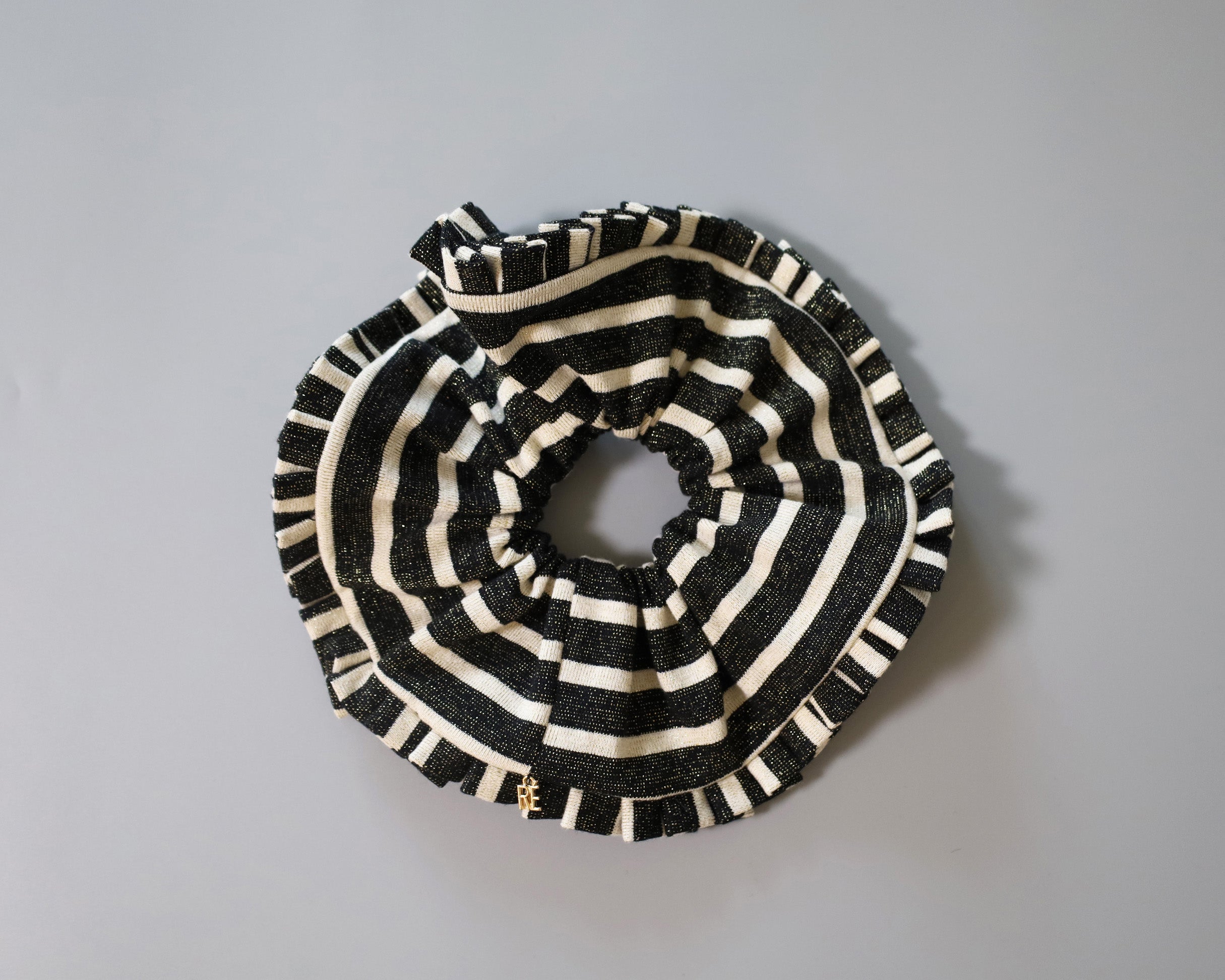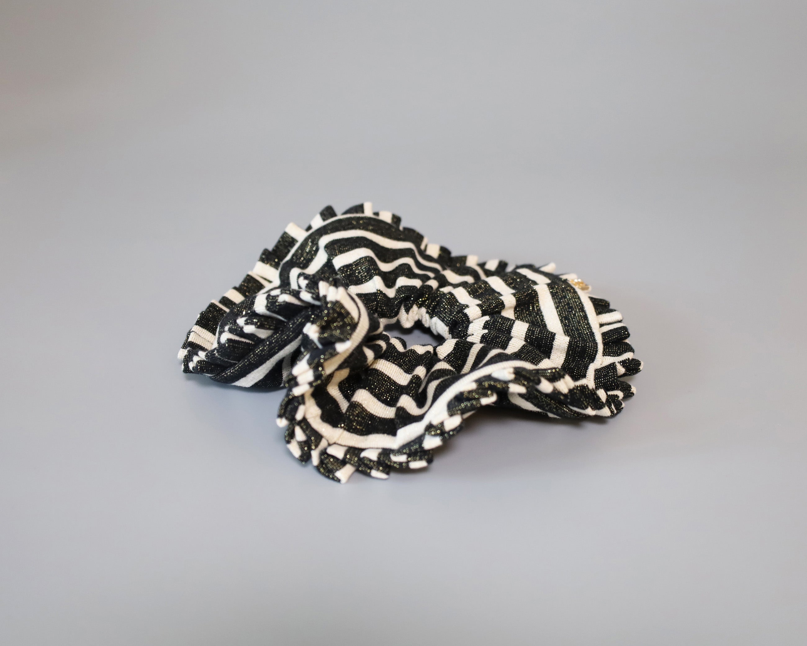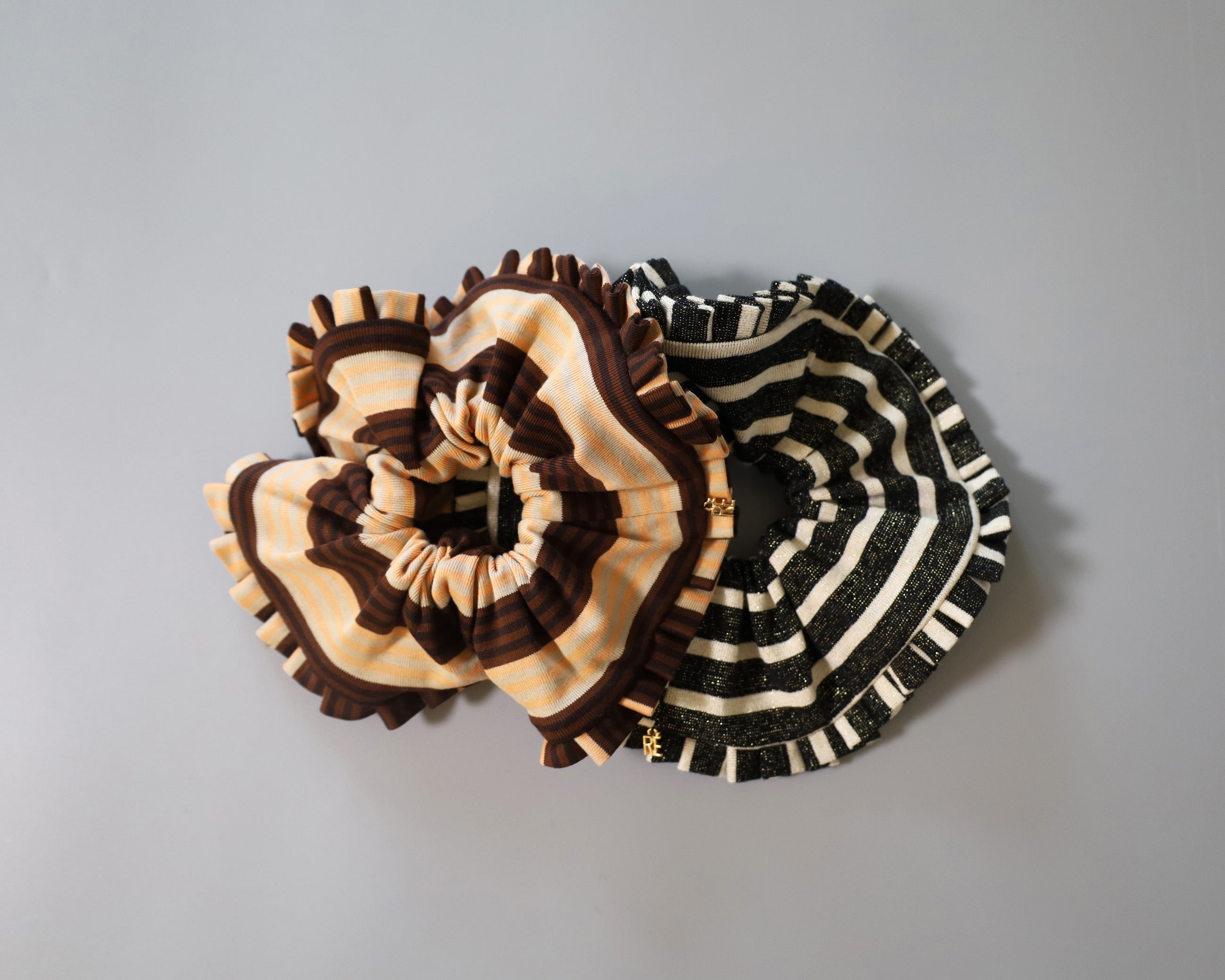 バックスタイルが華やぐボリューミーさで、ロングはもちろん短めヘアにもおすすめなシュシュ。