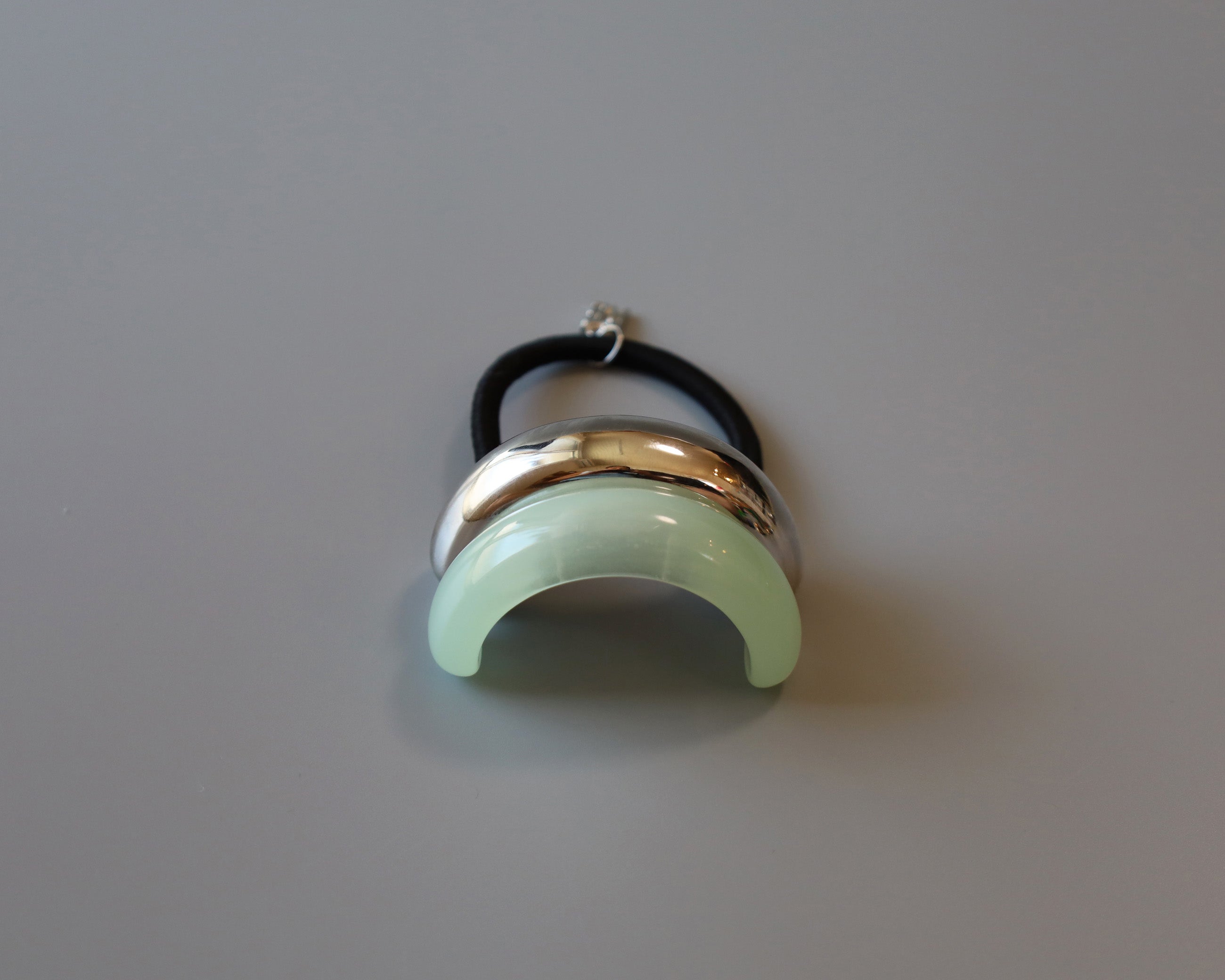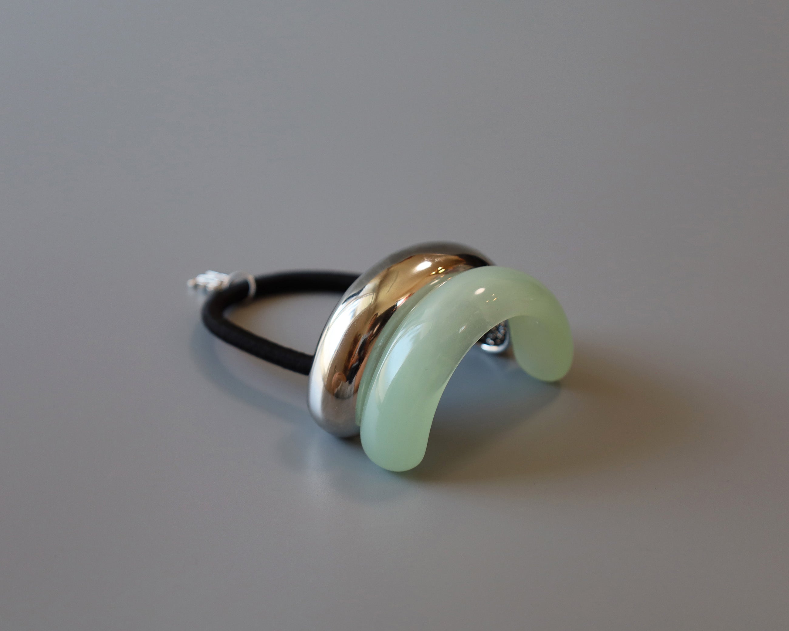 翡翠のような透明感あるミントカラーとメタルシルバーの組み合わせが洒落たデザインです。