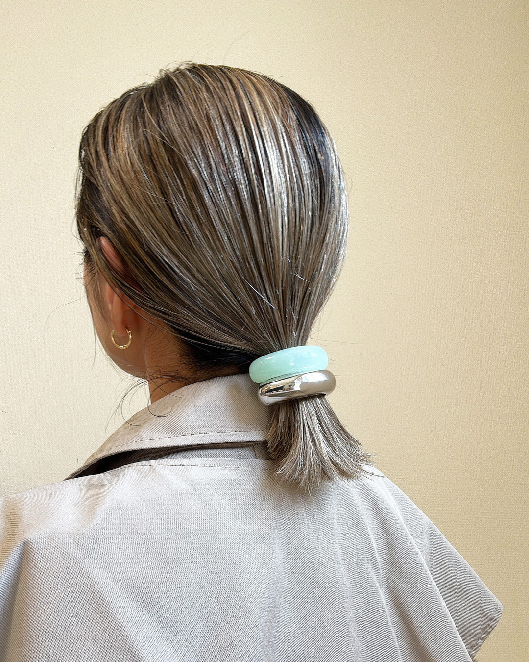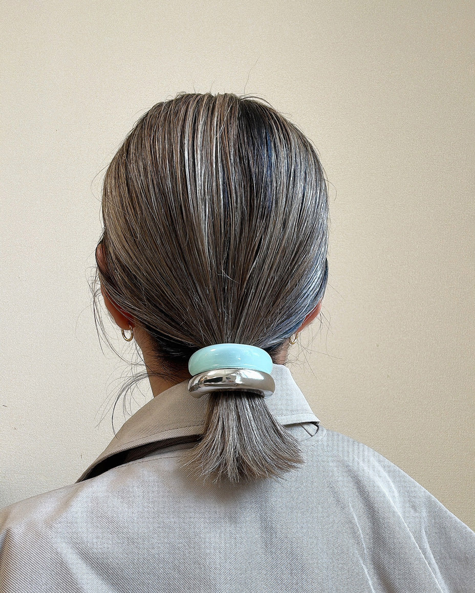 いつものヘアゴムを使う代わりに使うだけでこなれたポニーテールやシニヨンスタイルに。