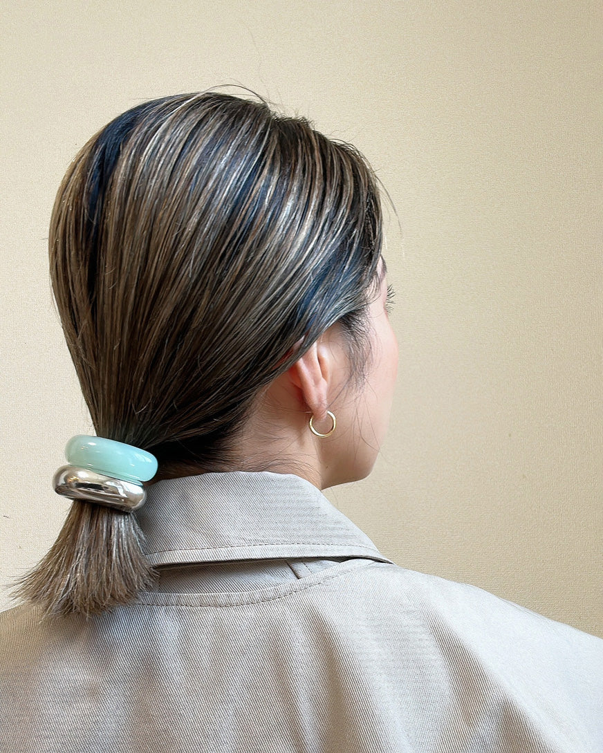 シンプルなひとつ結びをこなれたポニーテールに格上げしてくれるヘアゴム。