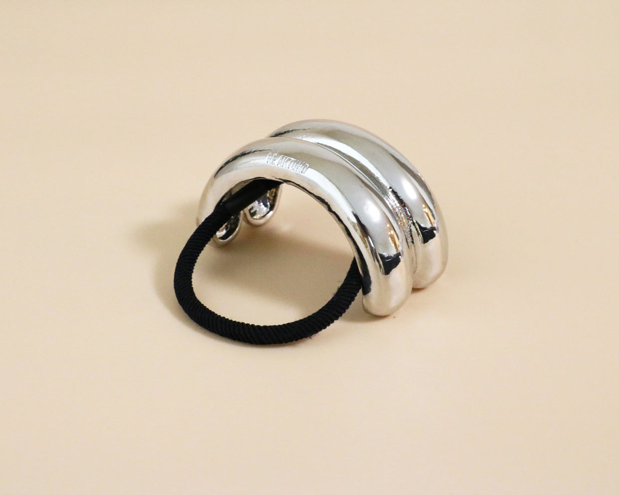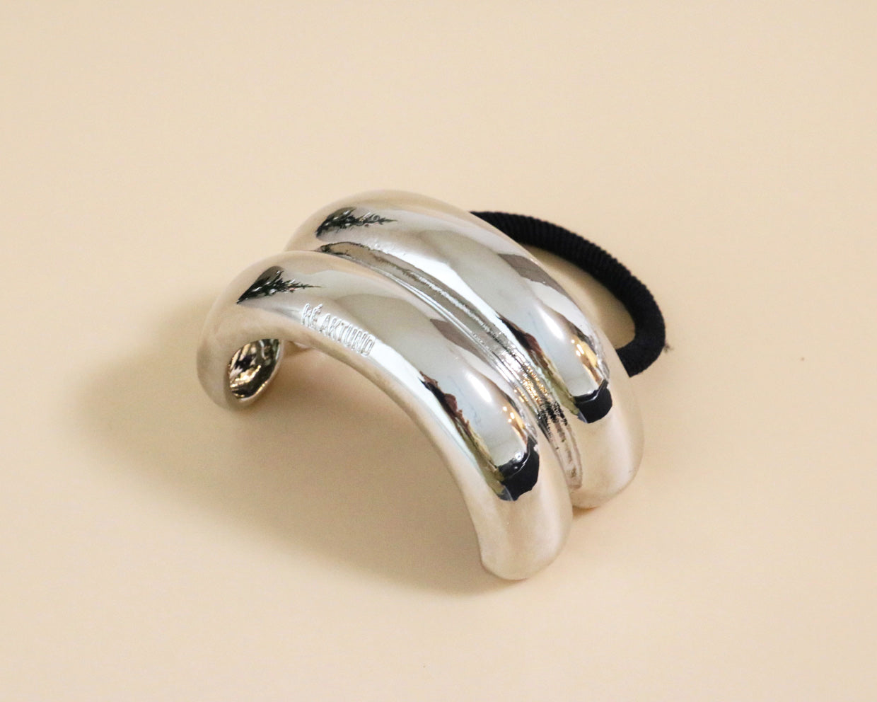 シンプルなポニーテールを格上げするメタルパーツのヘアゴム。