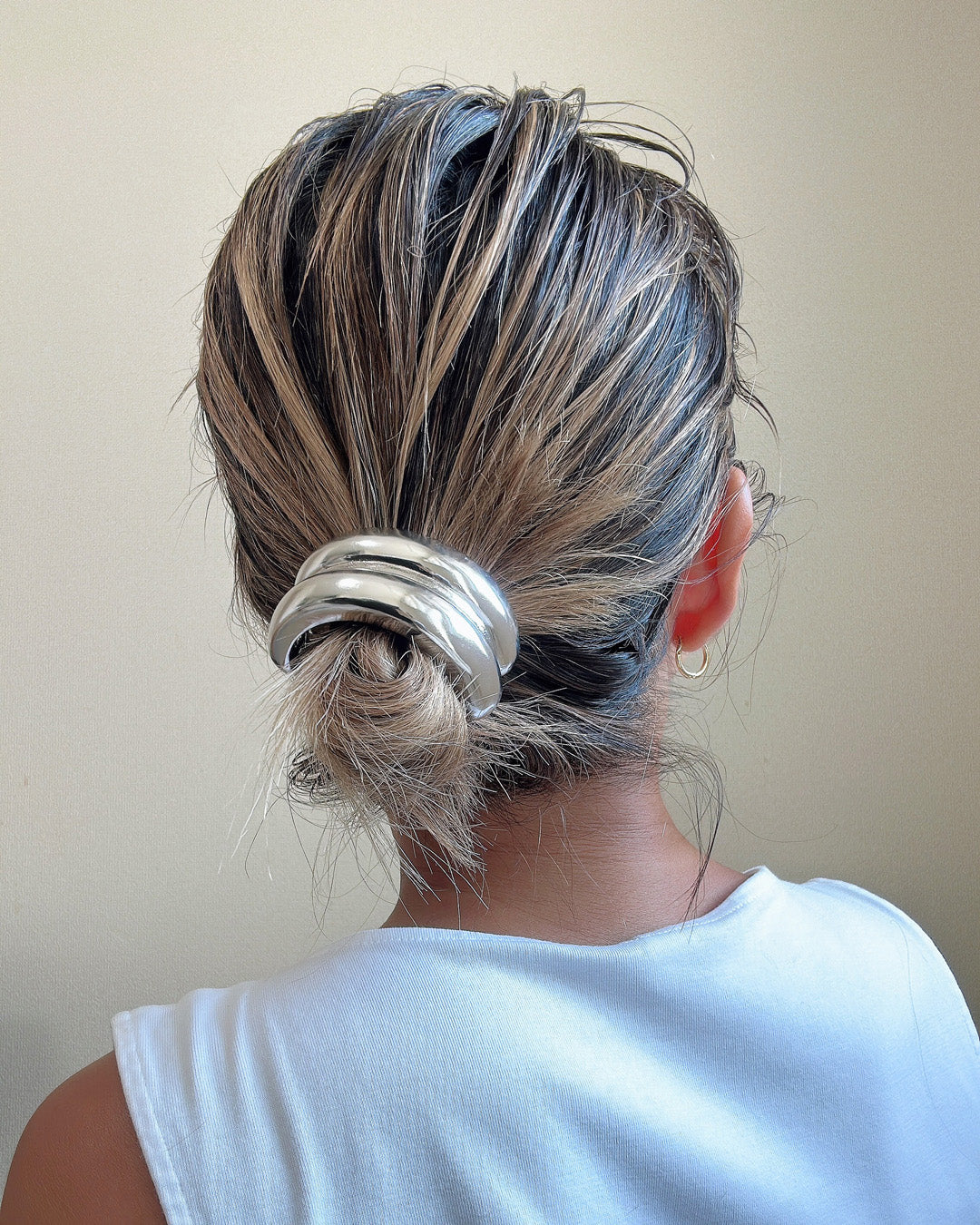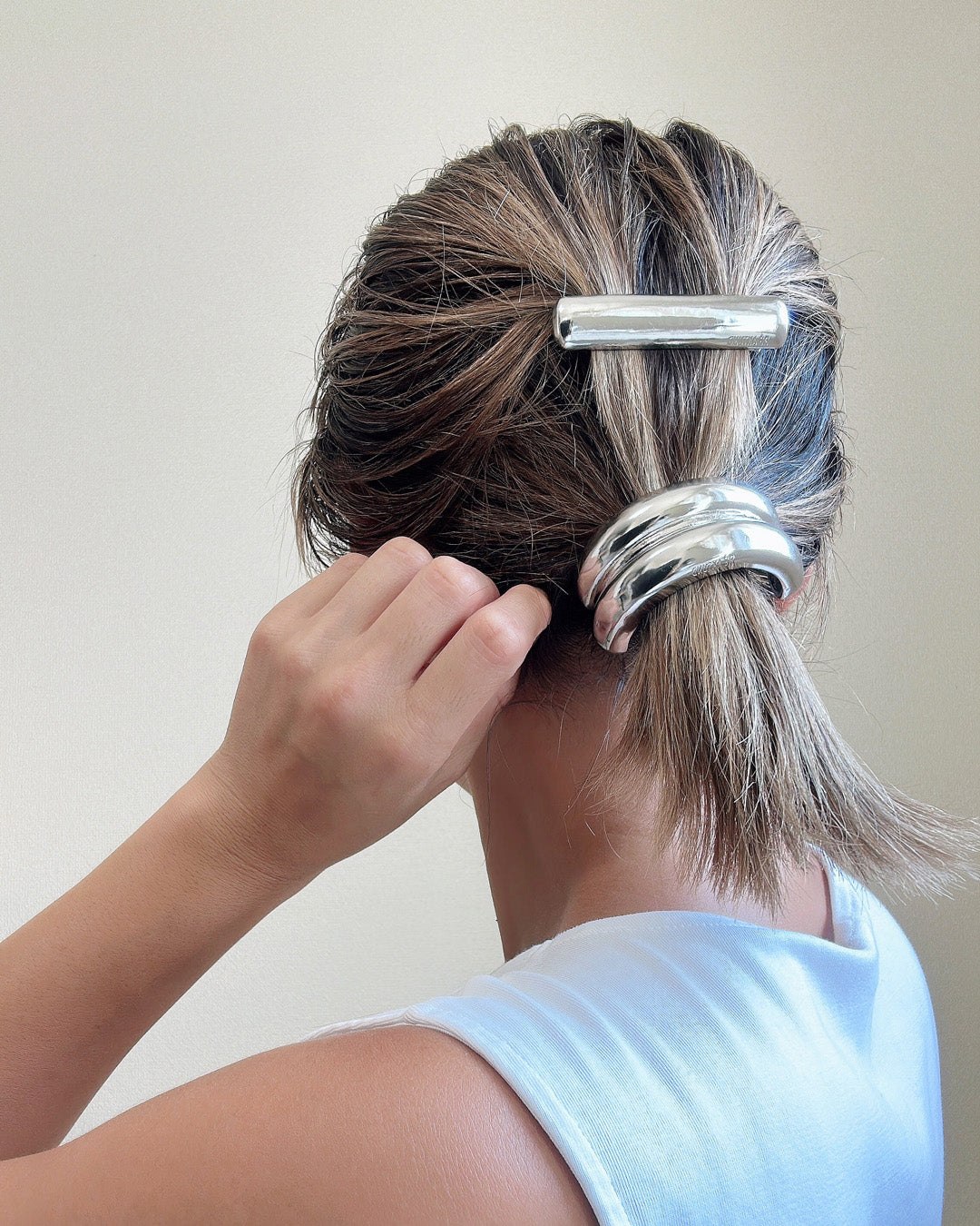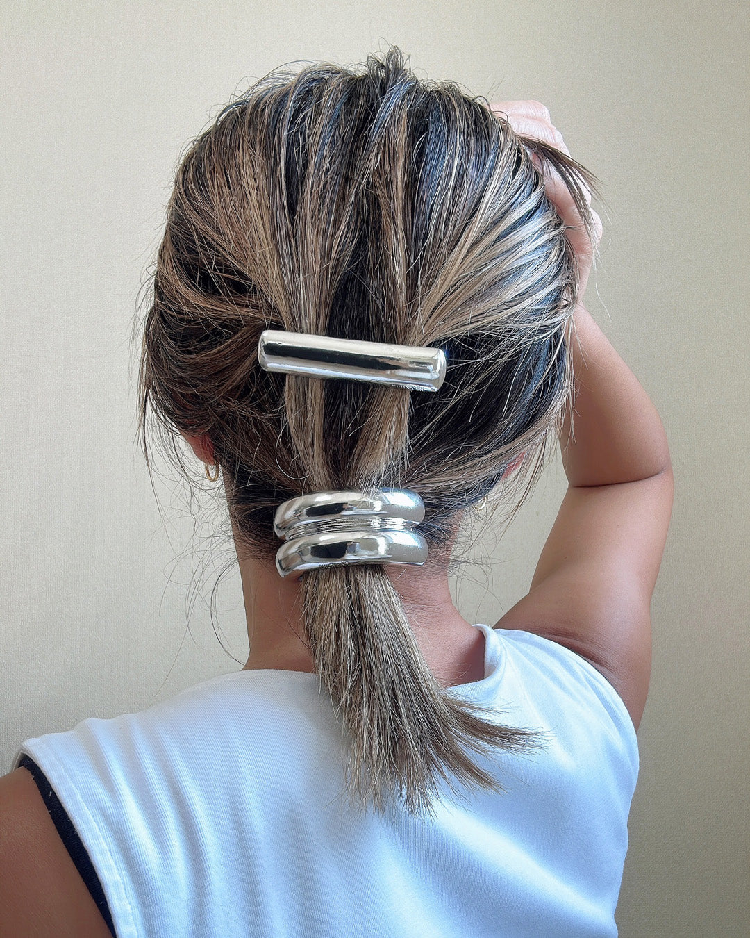 同じメタル素材のバレッタとの組み合わせもおすすめです。