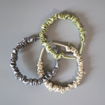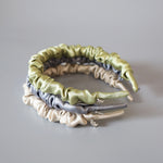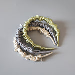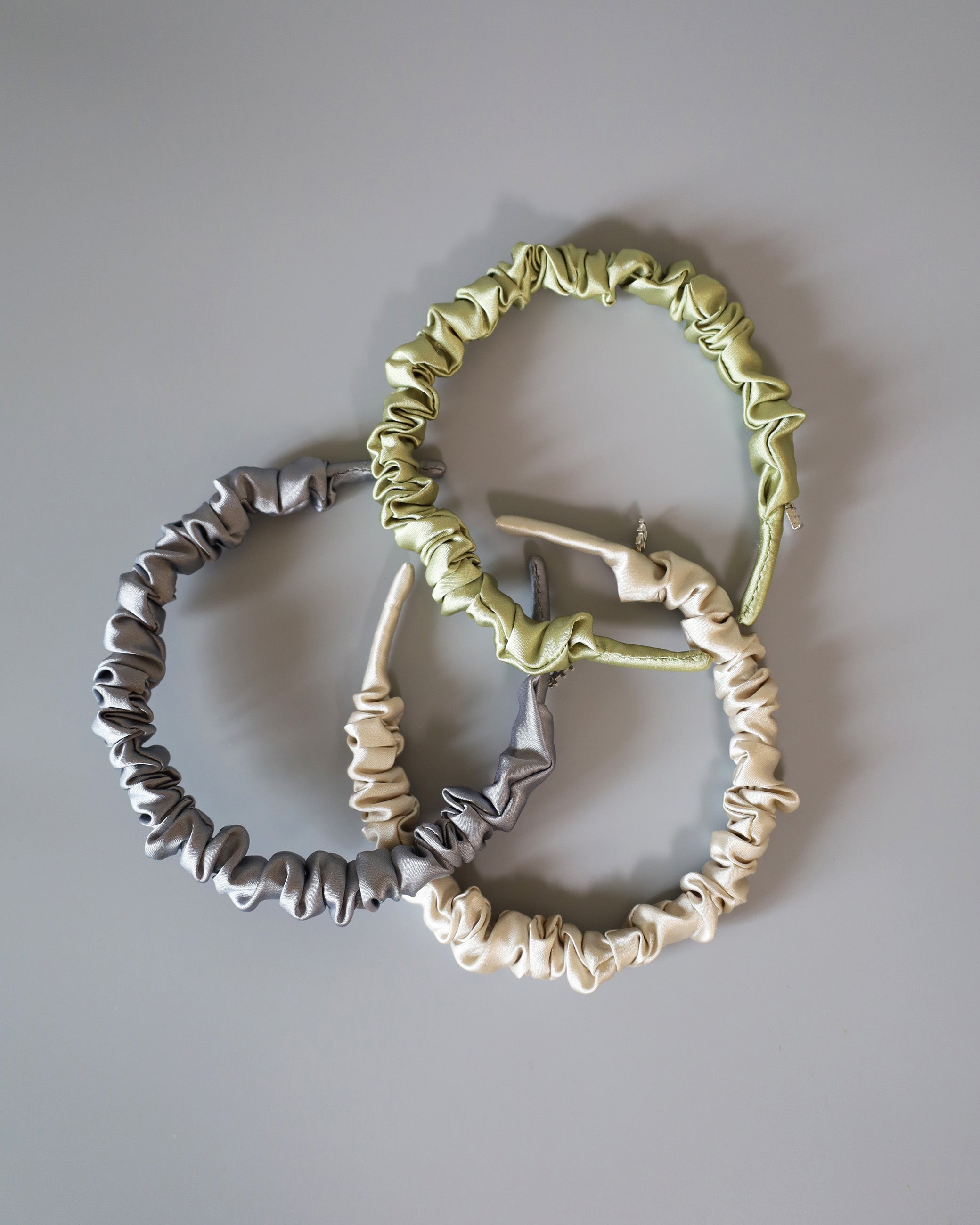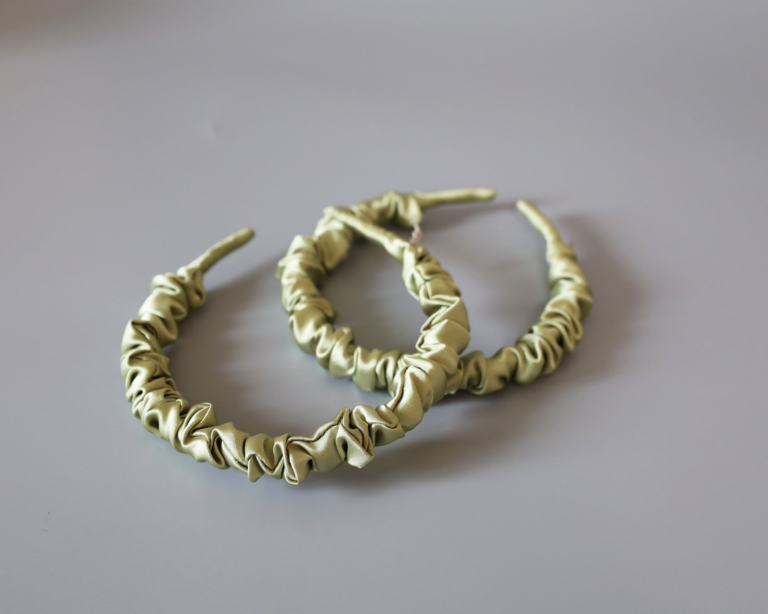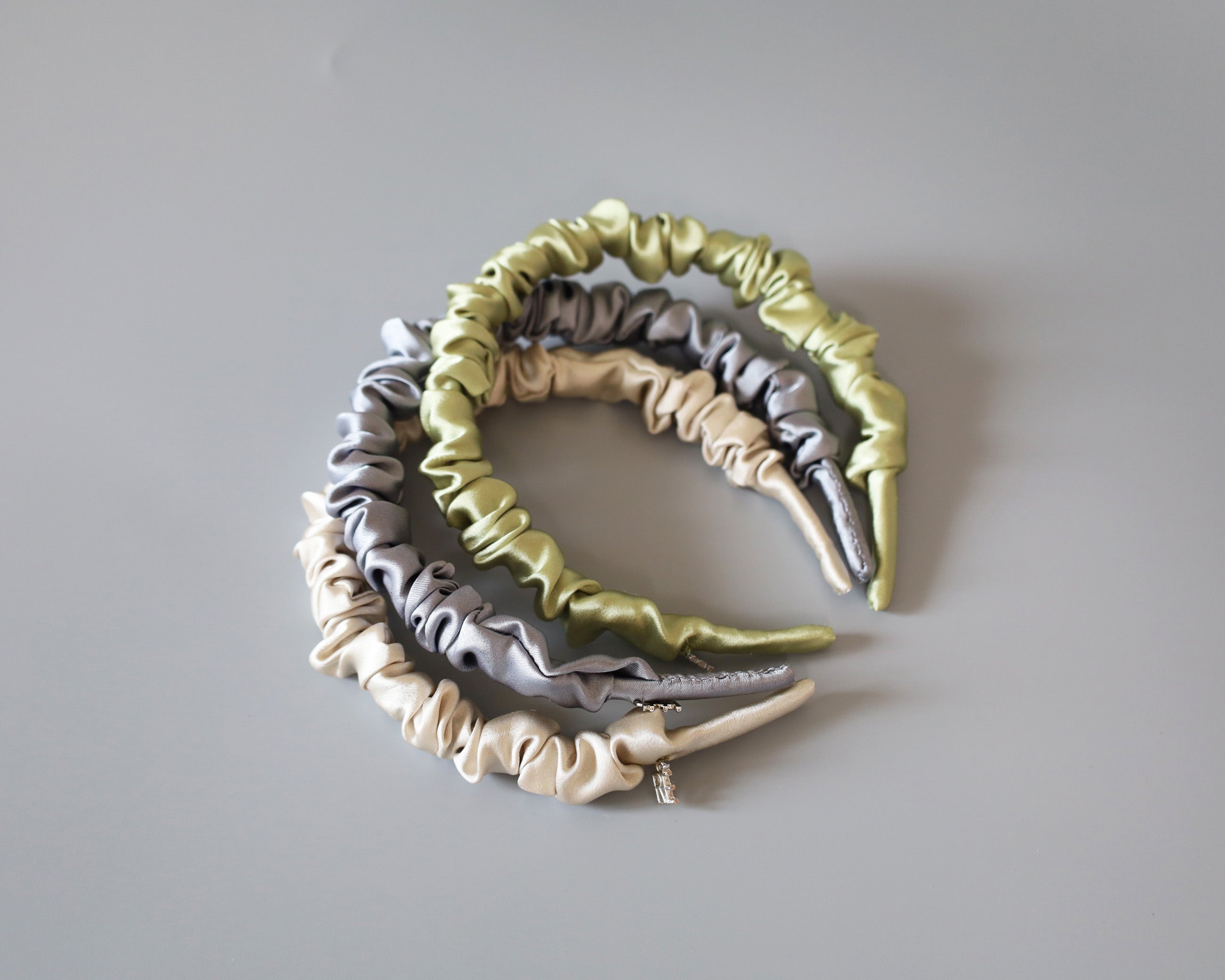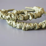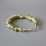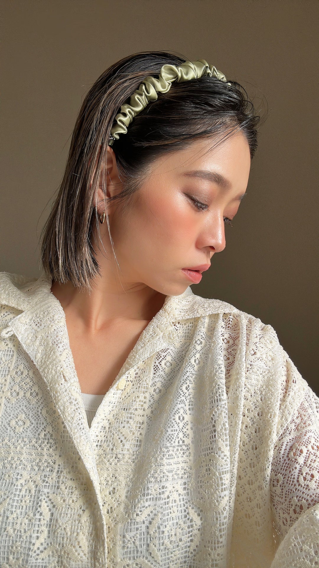 オリーブゴールドの軽やかな色に目を奪われるエアリーなギャザーカチューシャ。