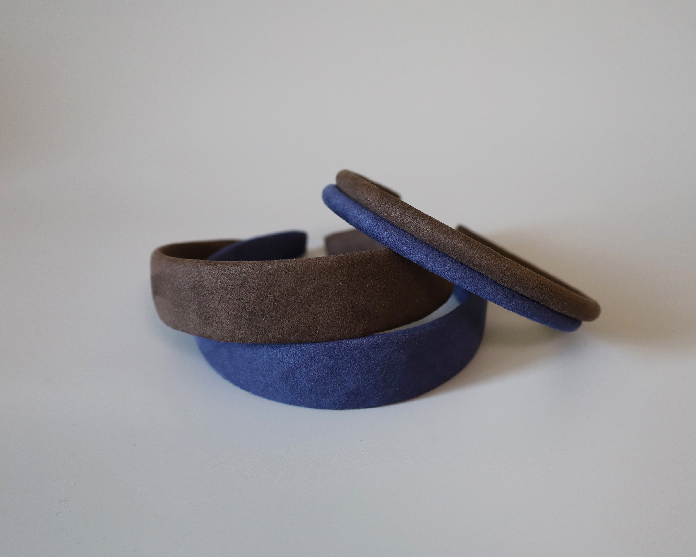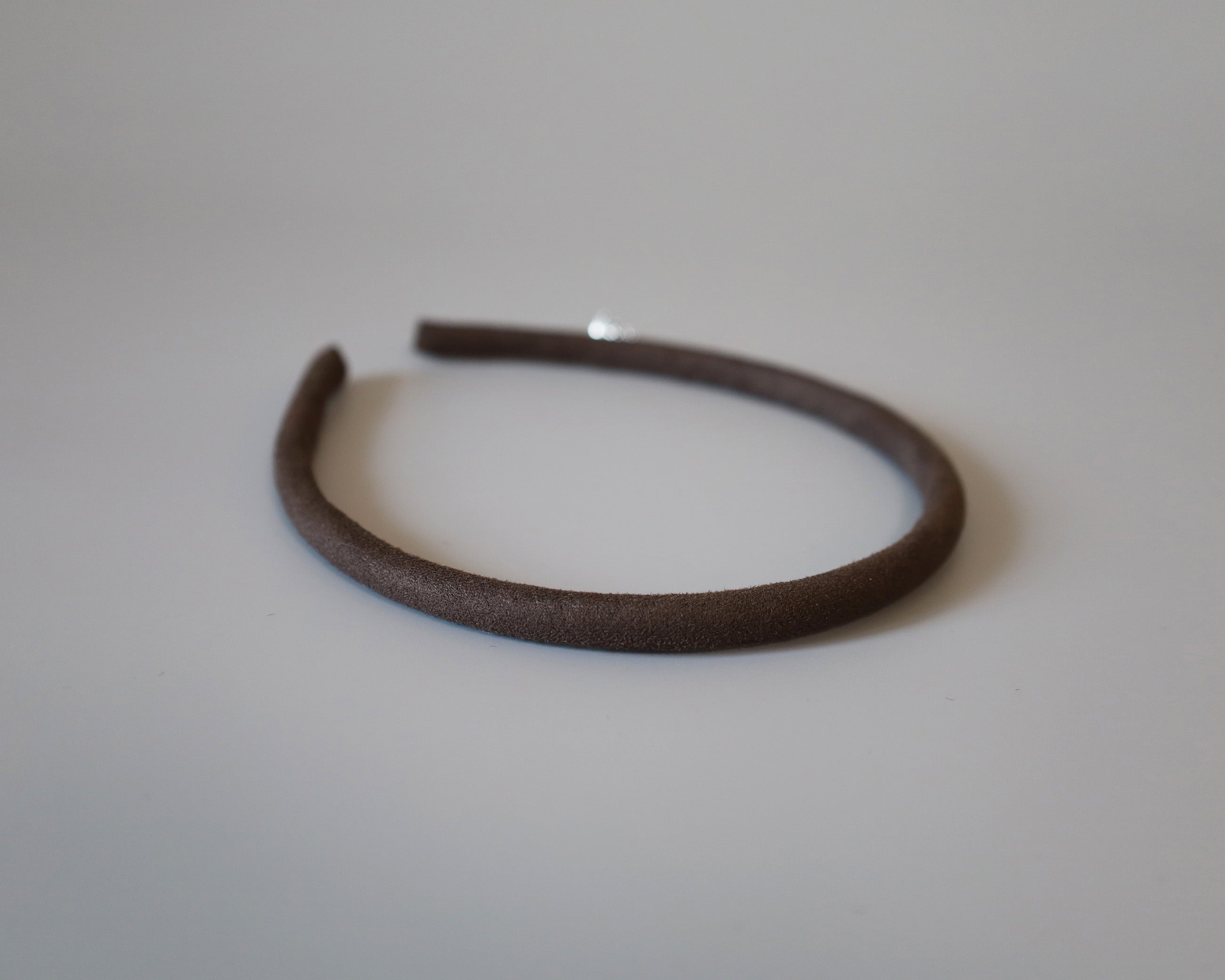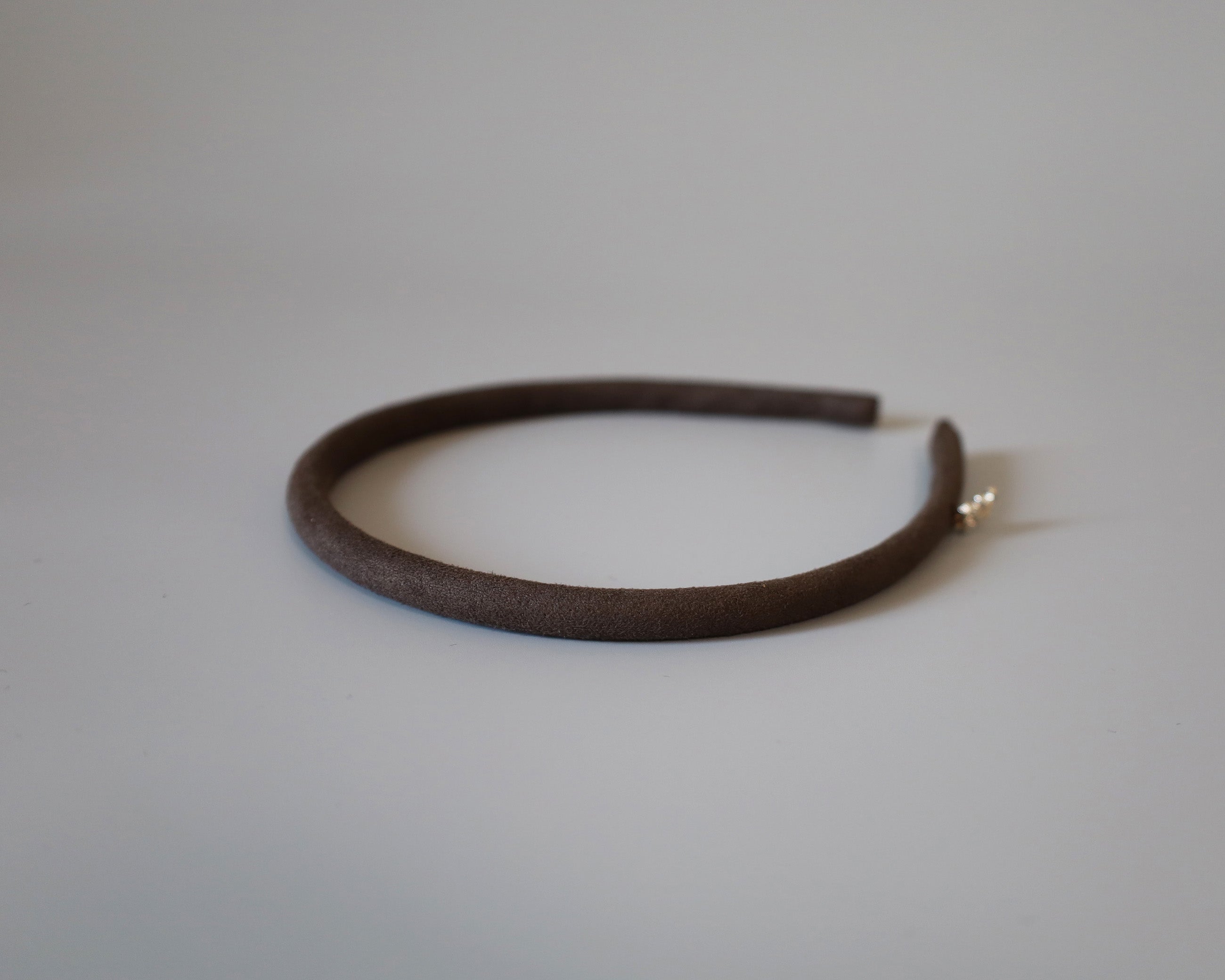 深みのあるグレージュカラーが上品なスエード調カチューシャ。