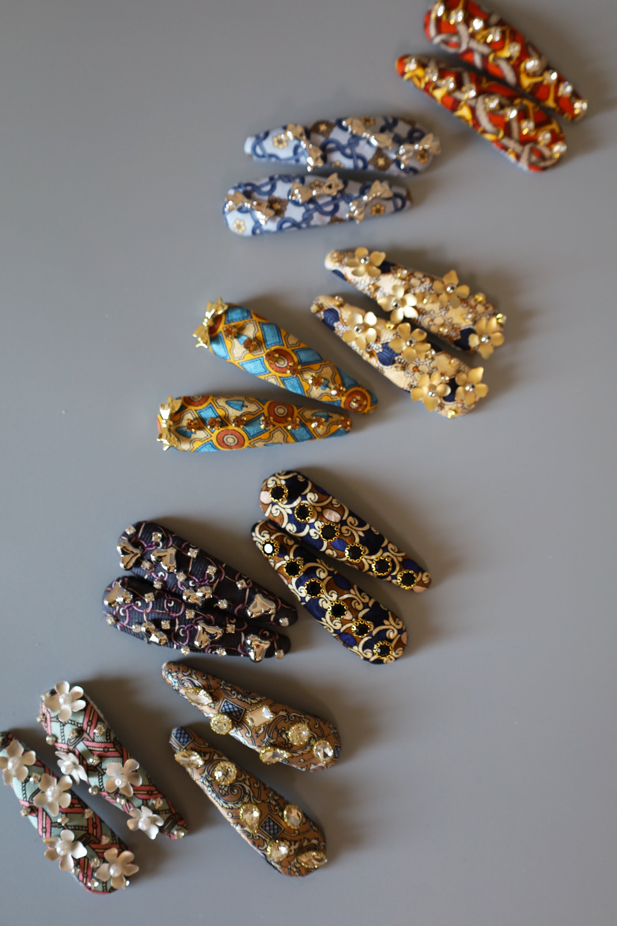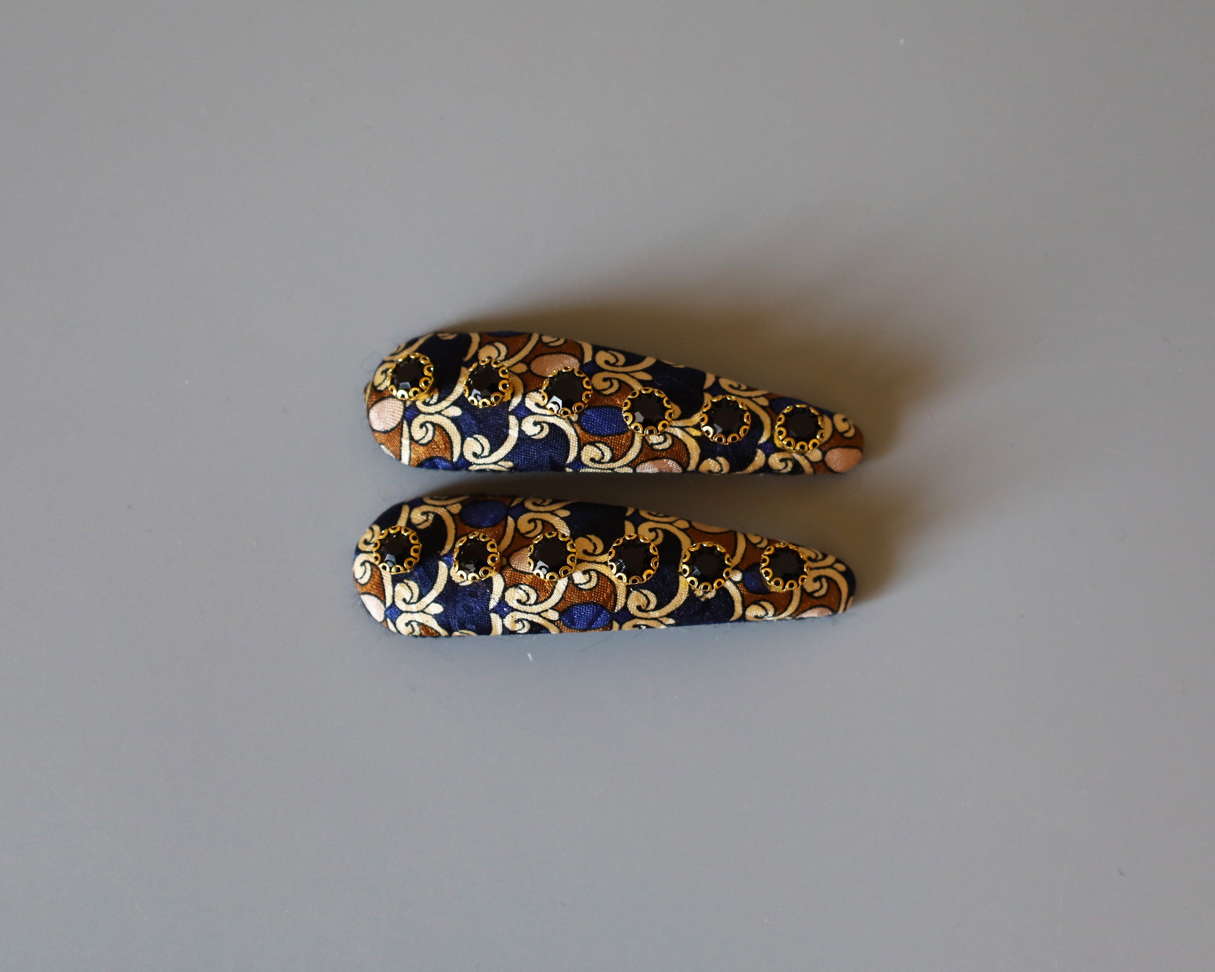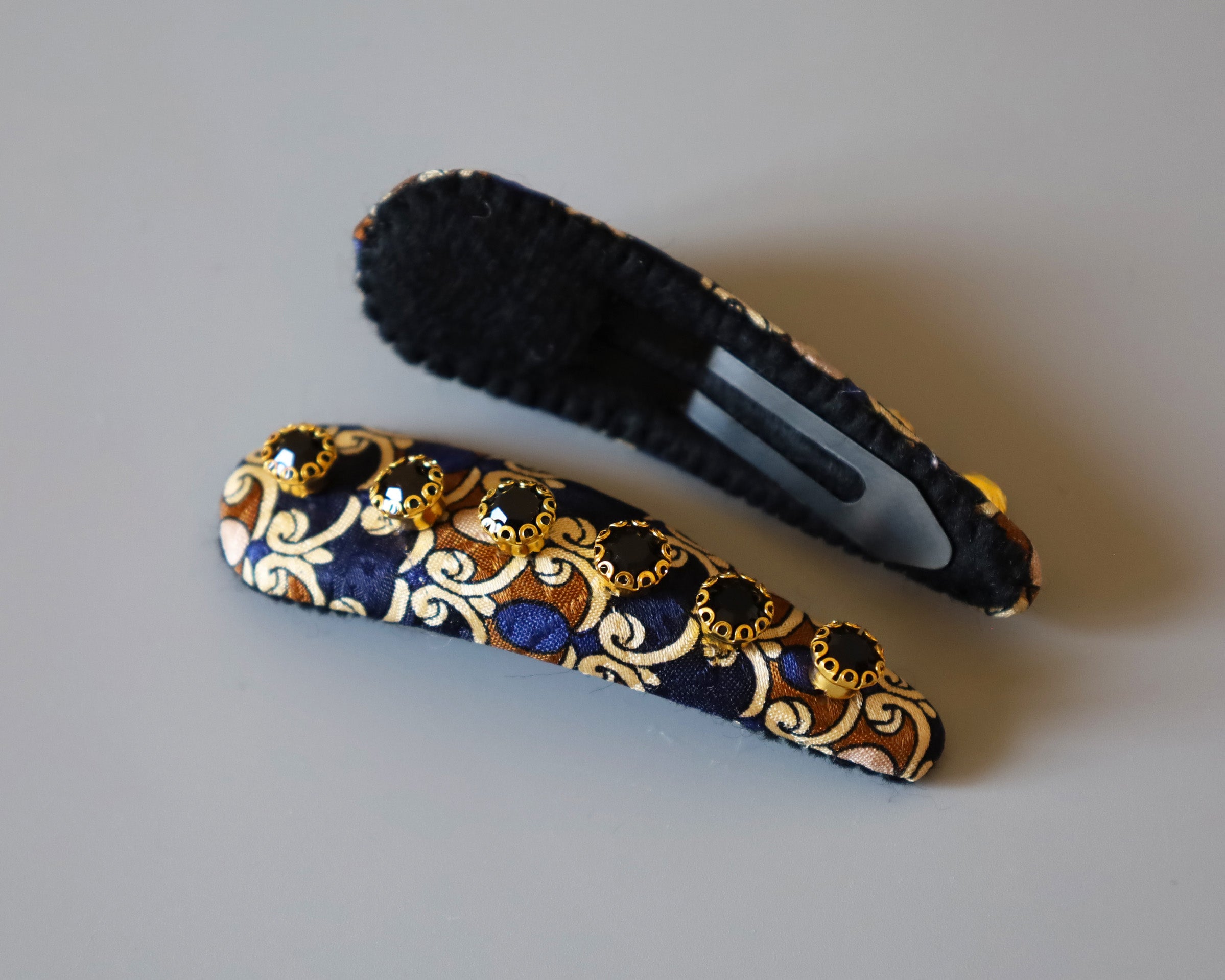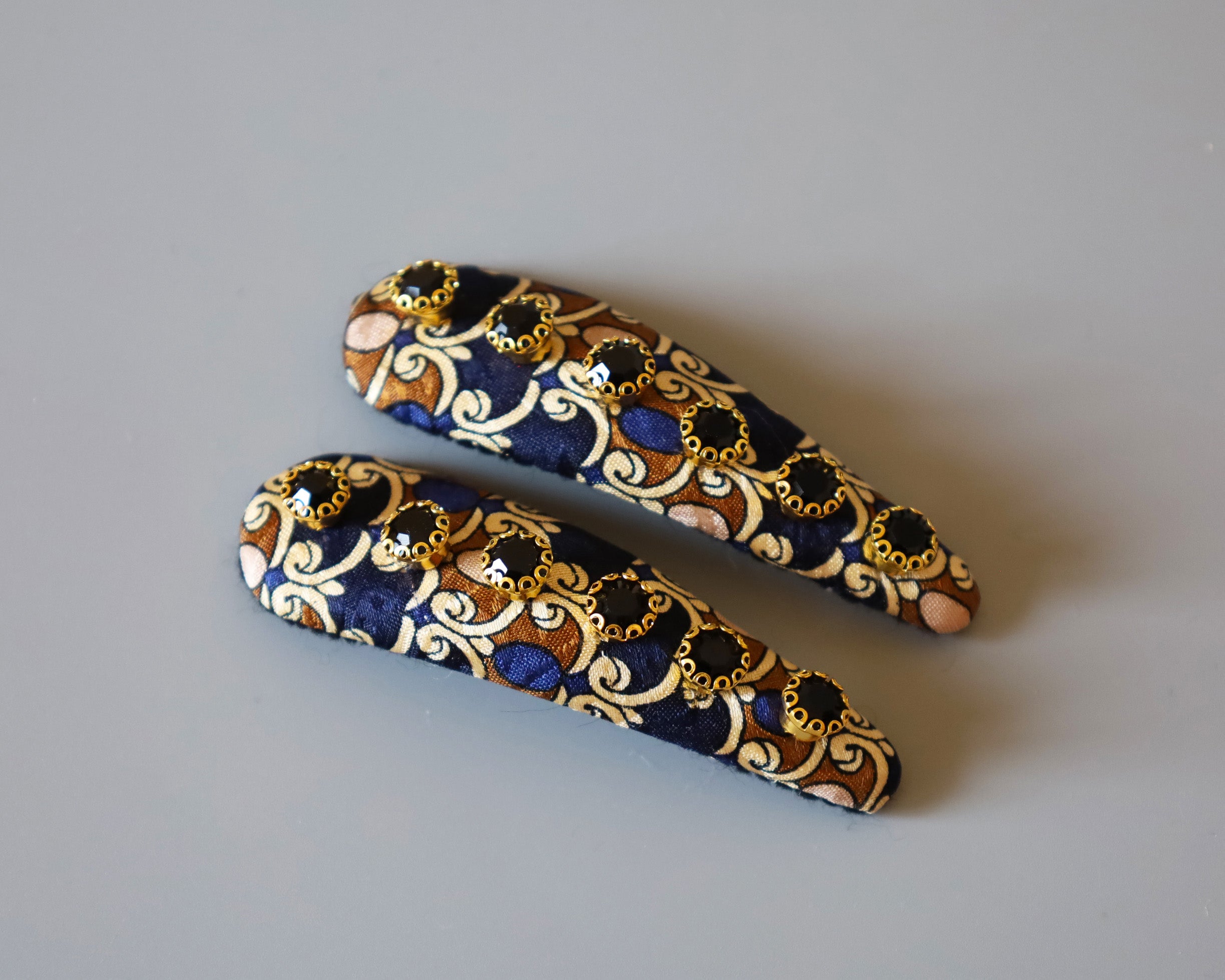 ボディの中央部分をライン状に配置したブラックビジューが、その佇まいを重厚感あるものに仕上げてくれます。