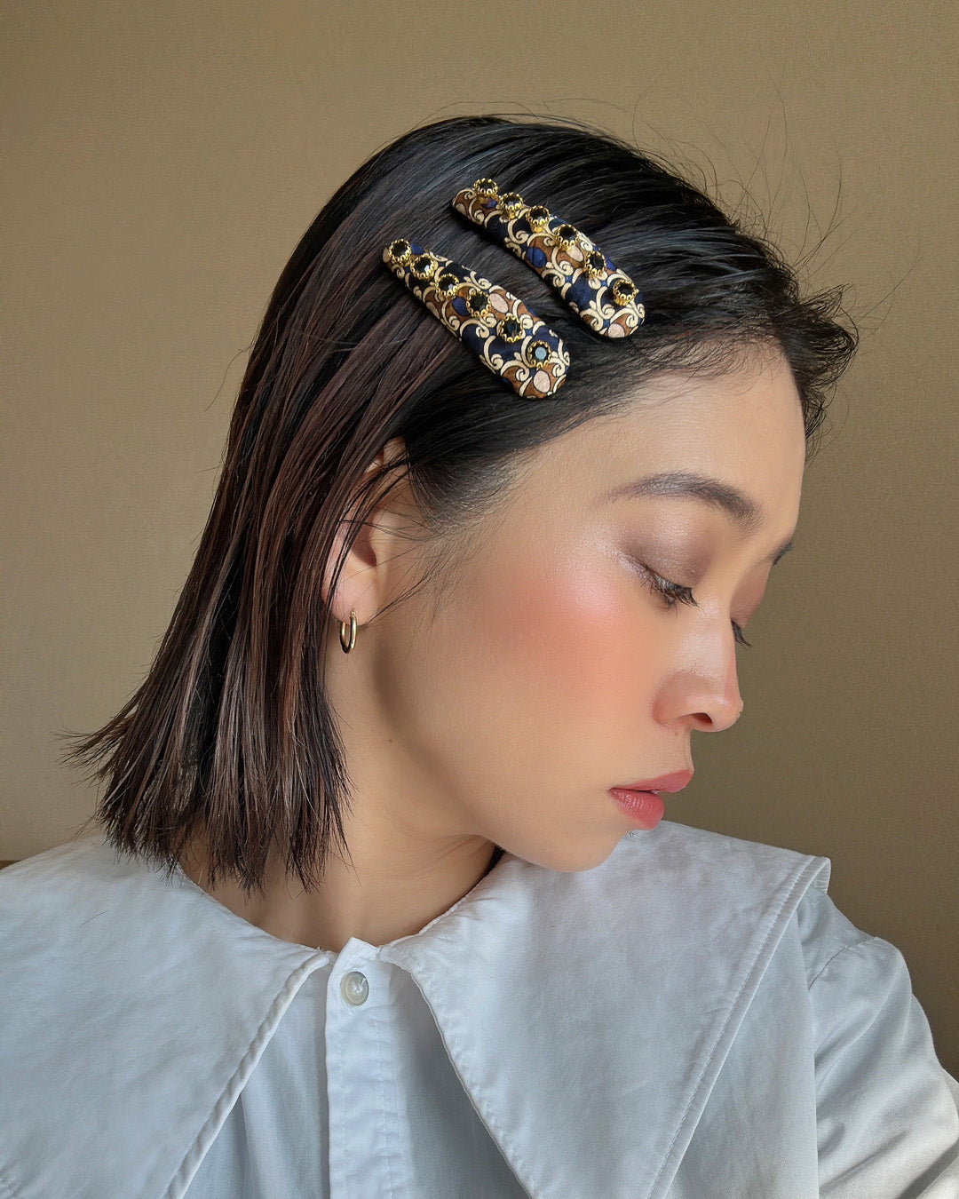 左右の耳周りにつけて顔まわりをすっきりさせれば、テクいらずできれい見え。