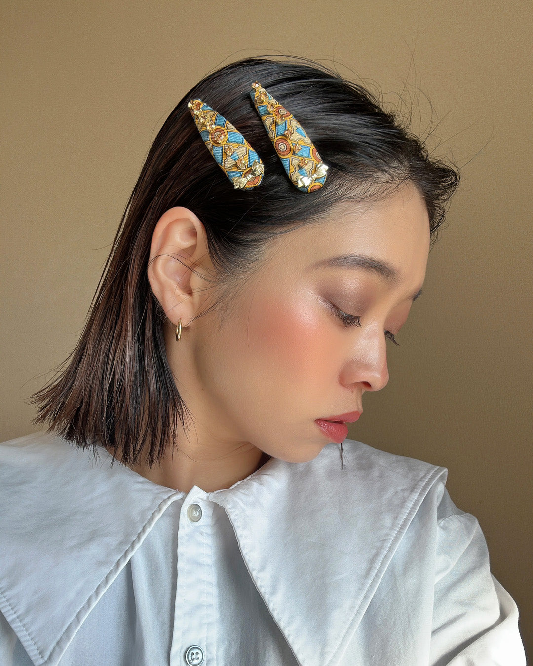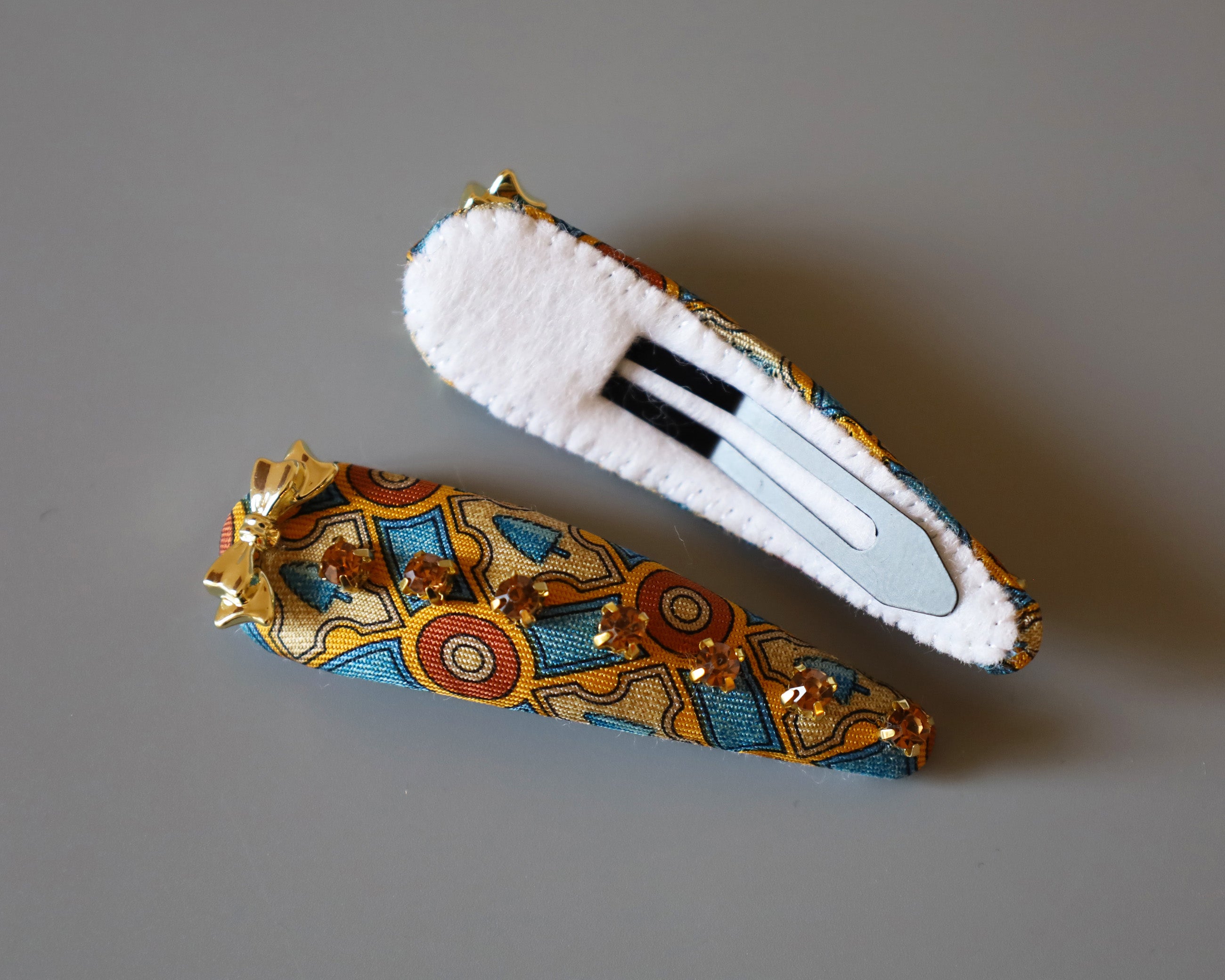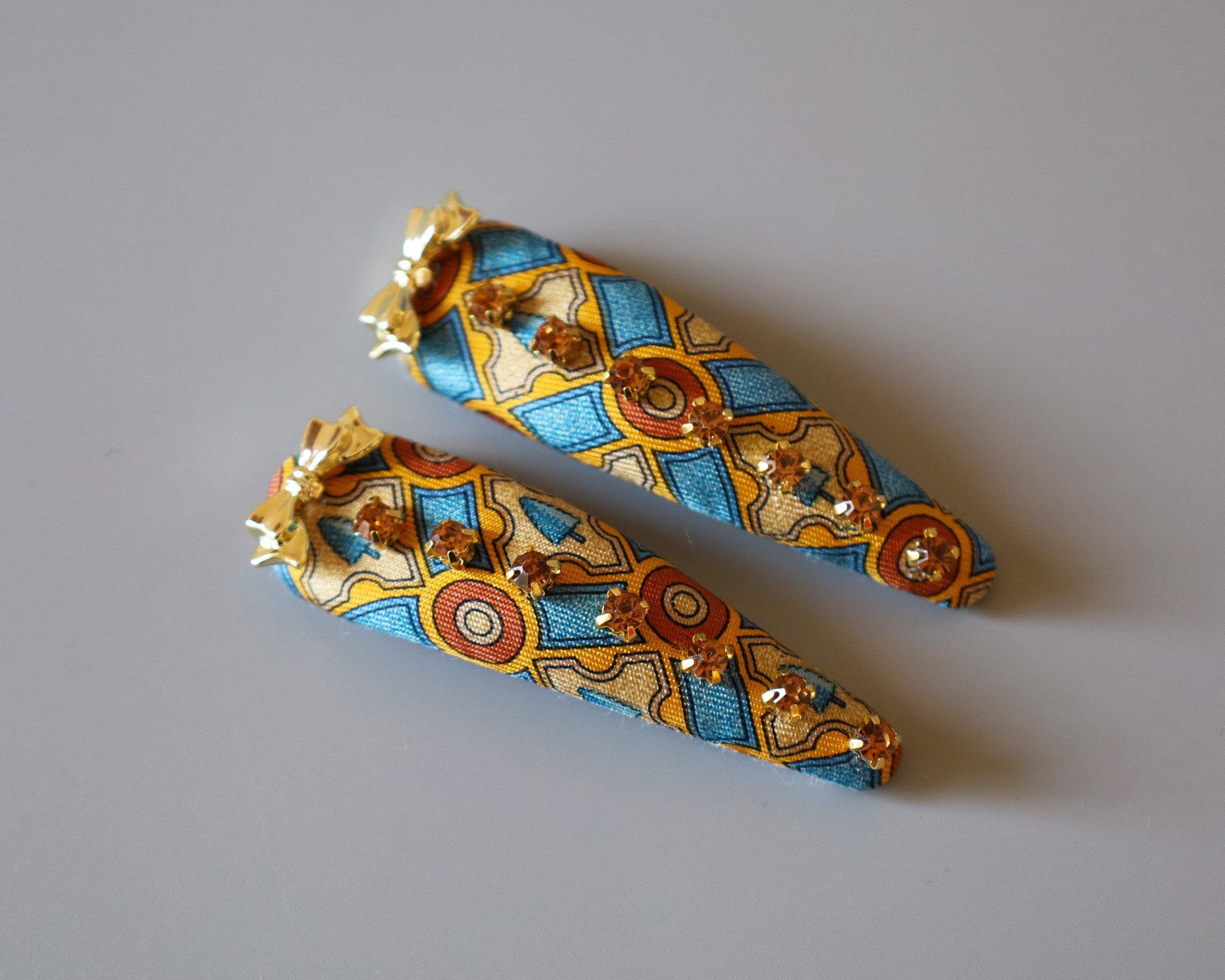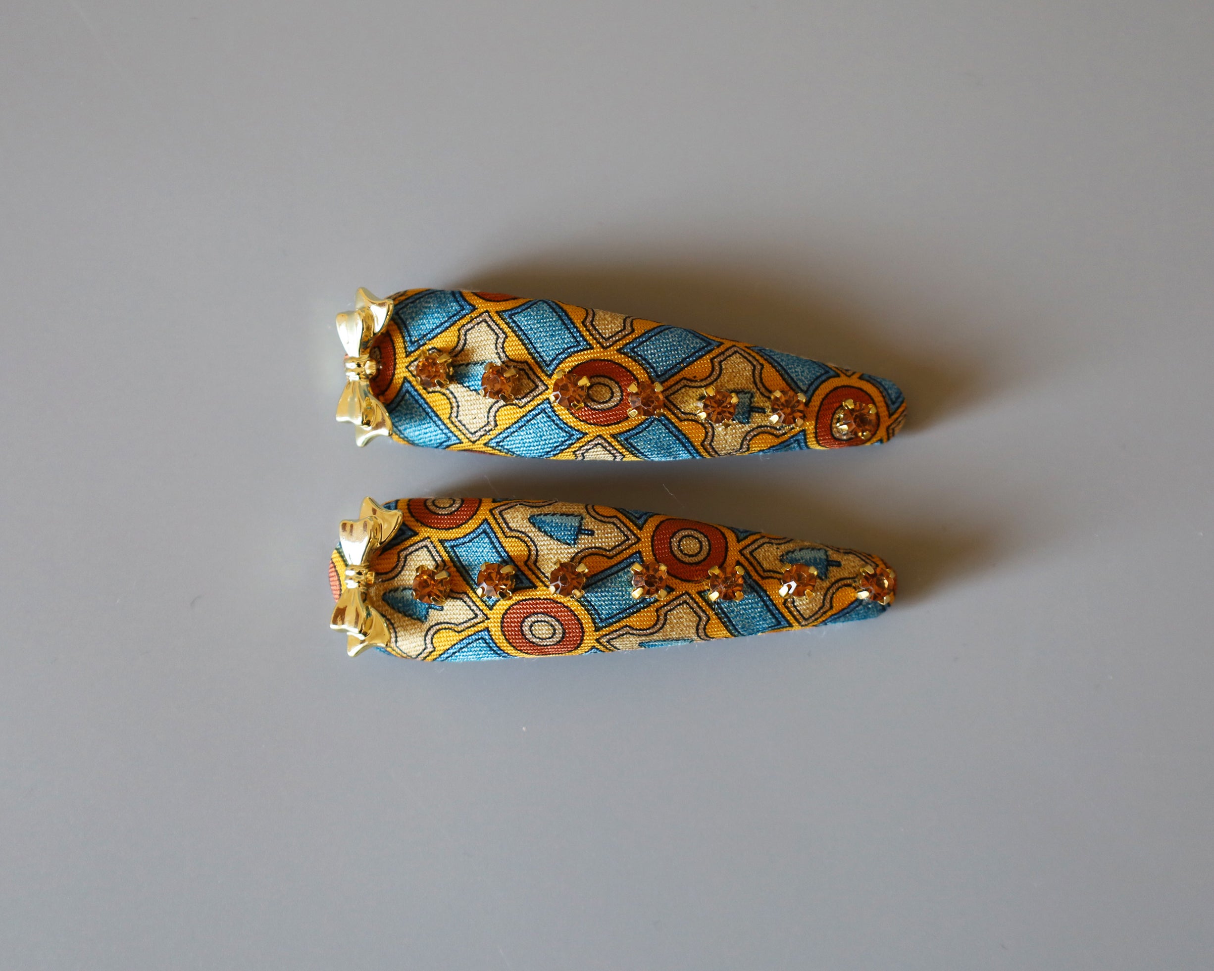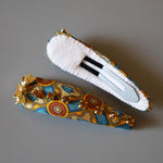 ブルー×イエローの鮮やかな存在感が映えるヘアピン。