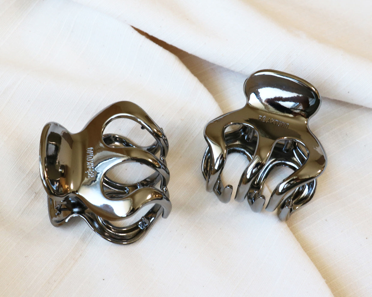 メタリックな質感のヘアクリップ。