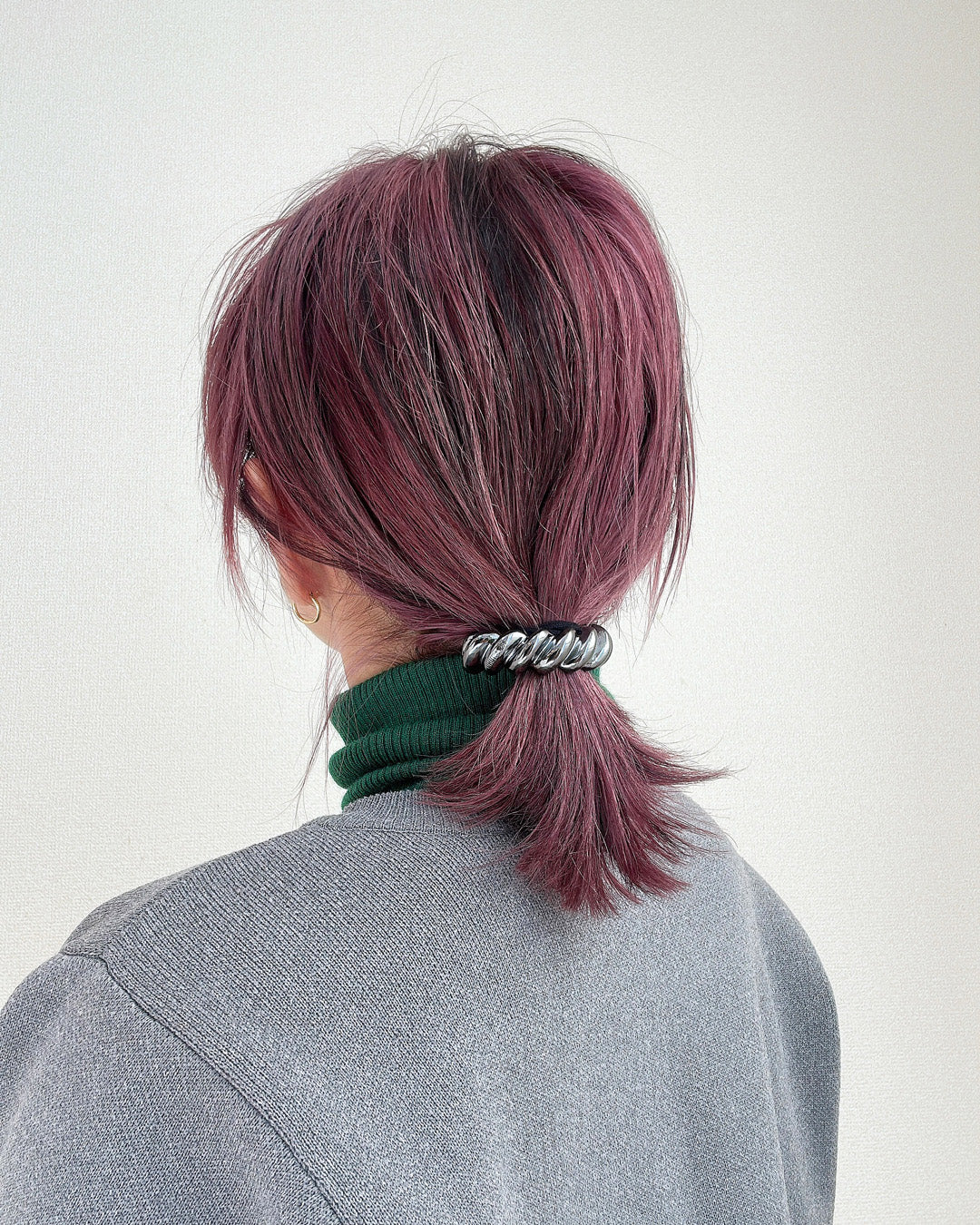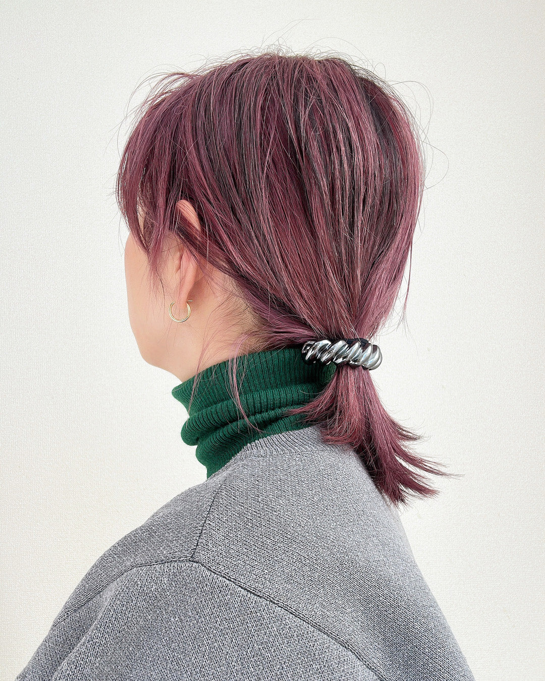メタルの質感を活かすなら、高めよりも低めポニーの方が上品さがあっておすすめ。