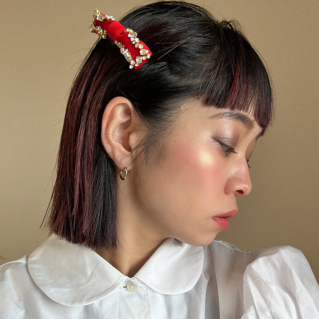 ショートヘアの方はサイドに重ね付けがおすすめ。