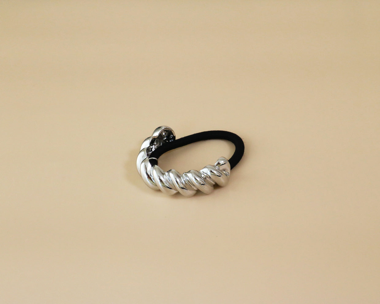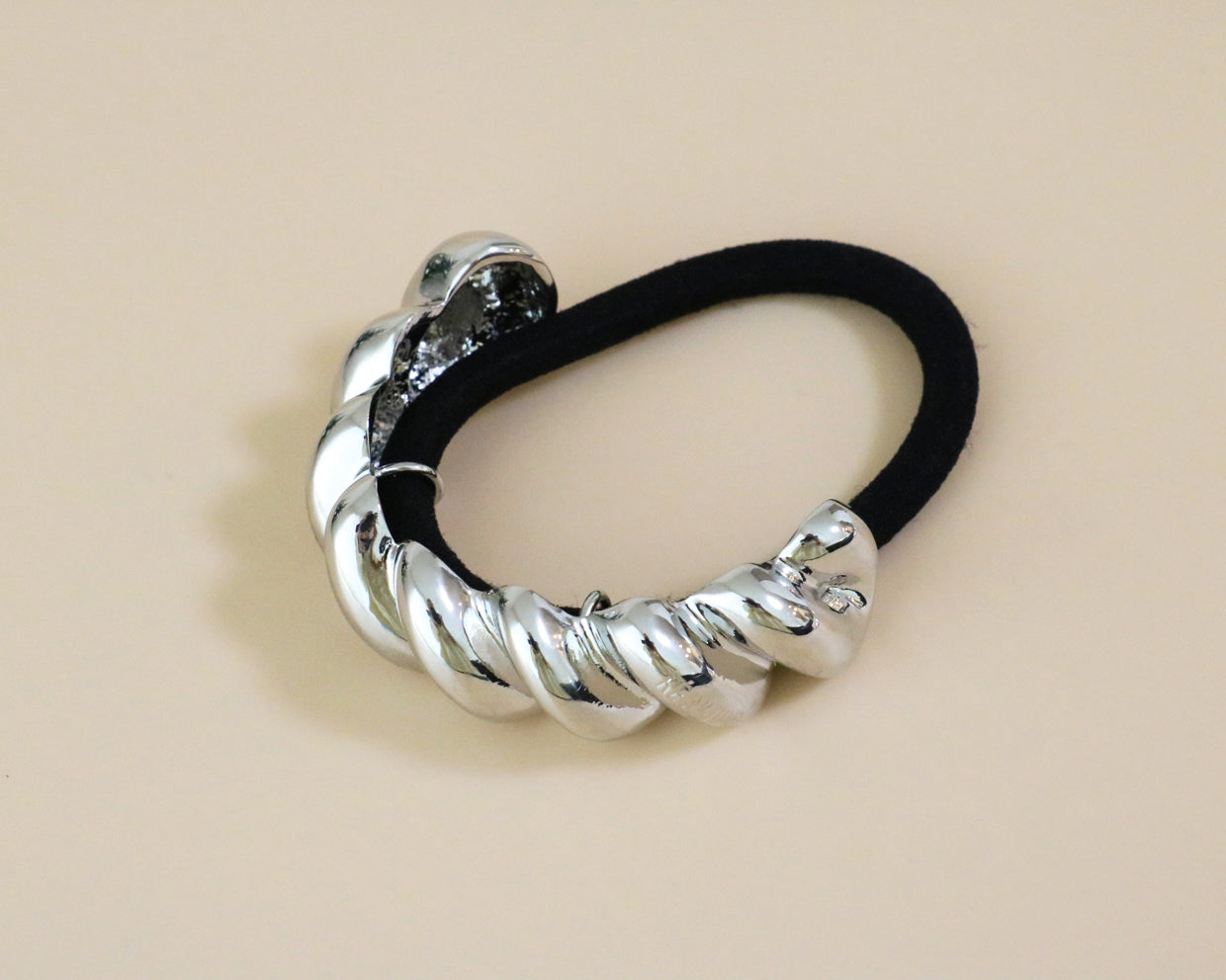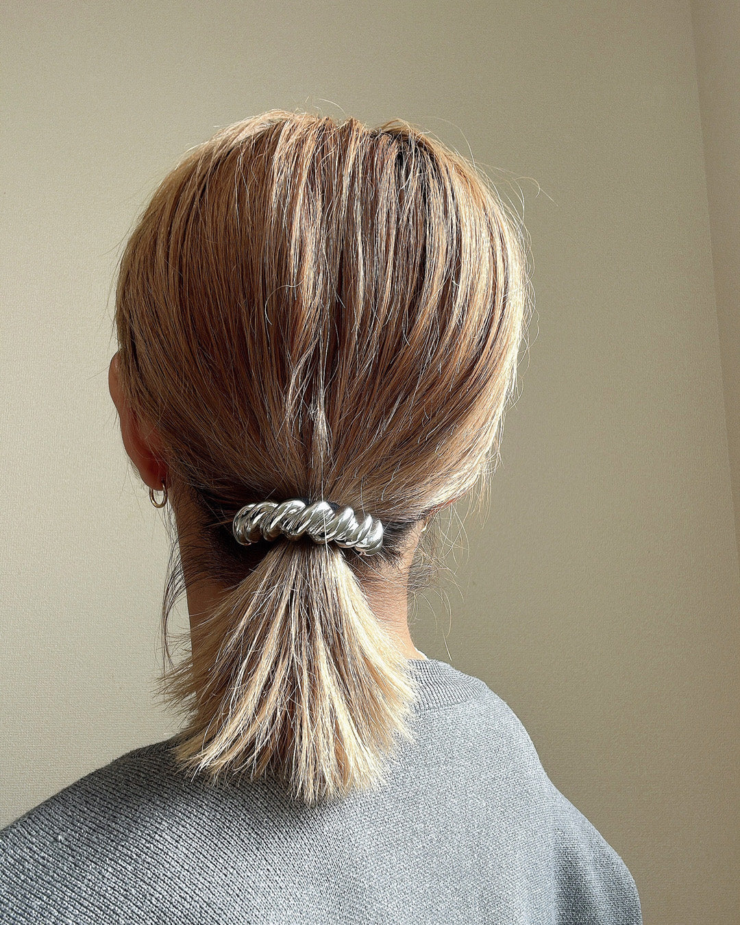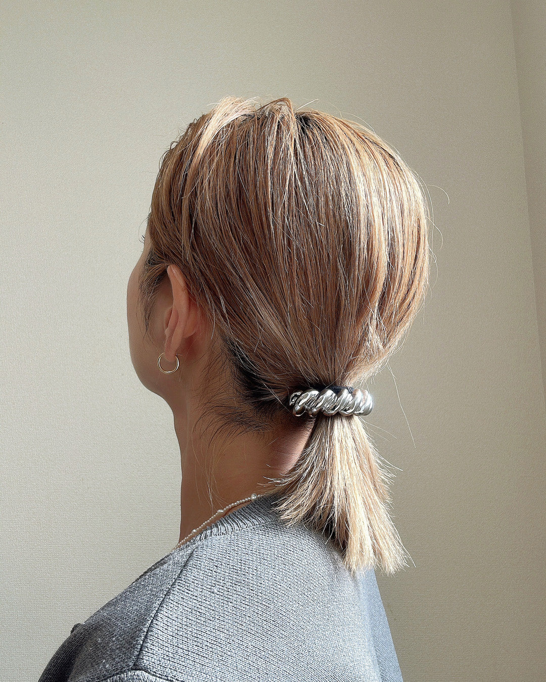 適度なカーブ感と長さのメタルパーツがゴム部分をカバーし、シンプルなポニーテールもおしゃれな仕上がりに。