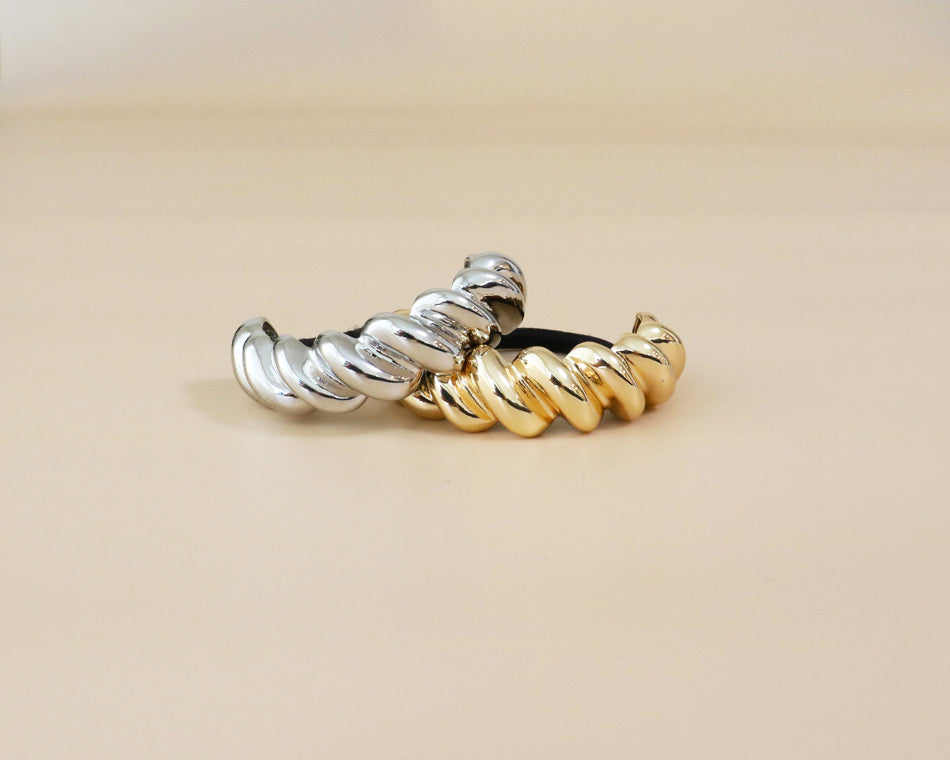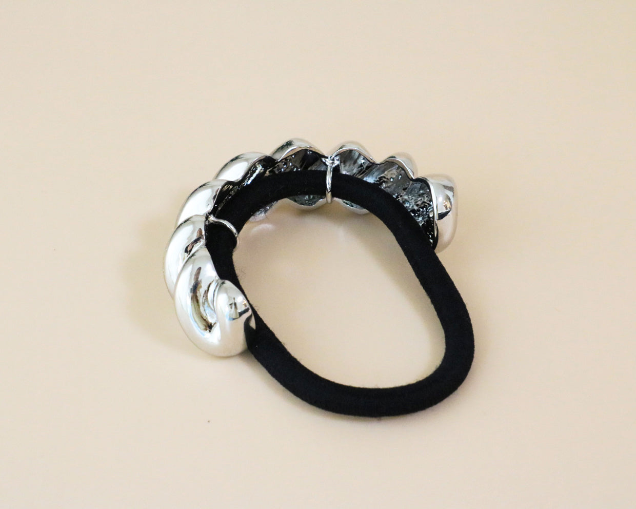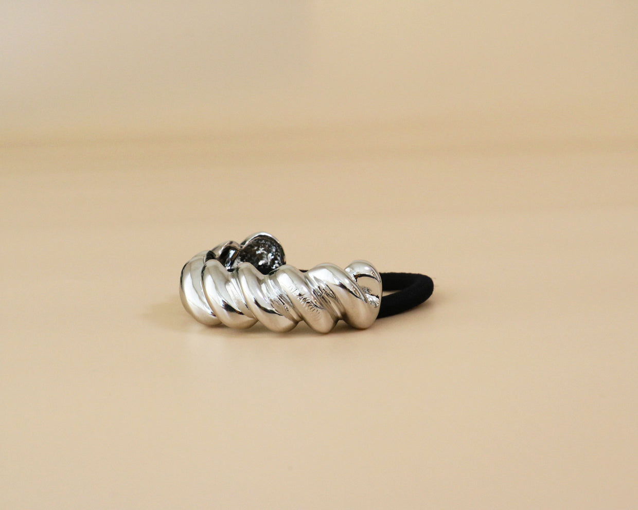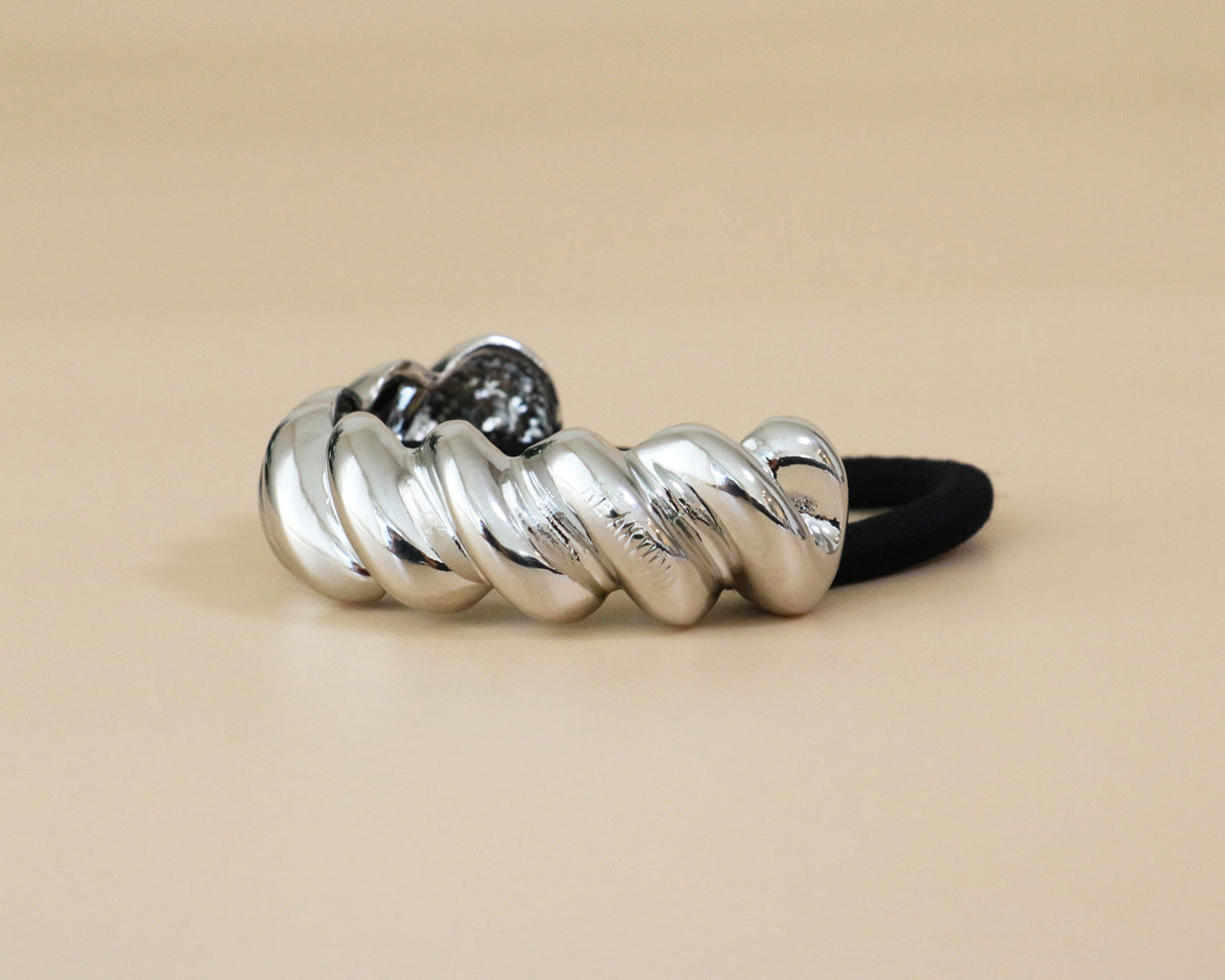 適度なカーブ感と長さのメタルパーツがゴム部分をカバーし、シンプルなポニーテールもおしゃれな仕上がりに。
